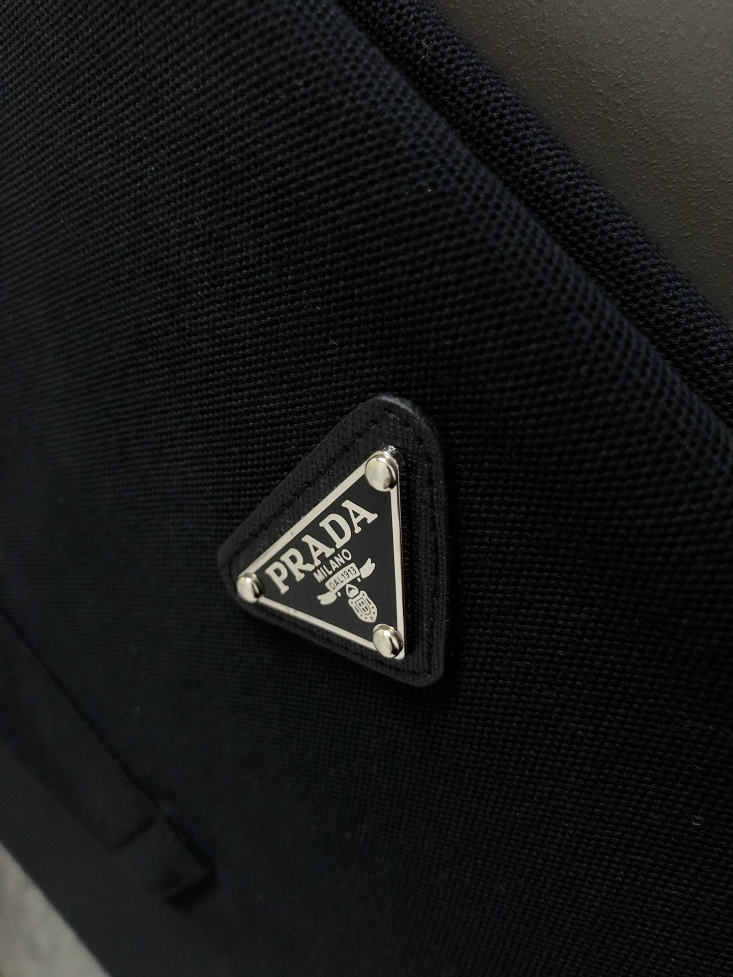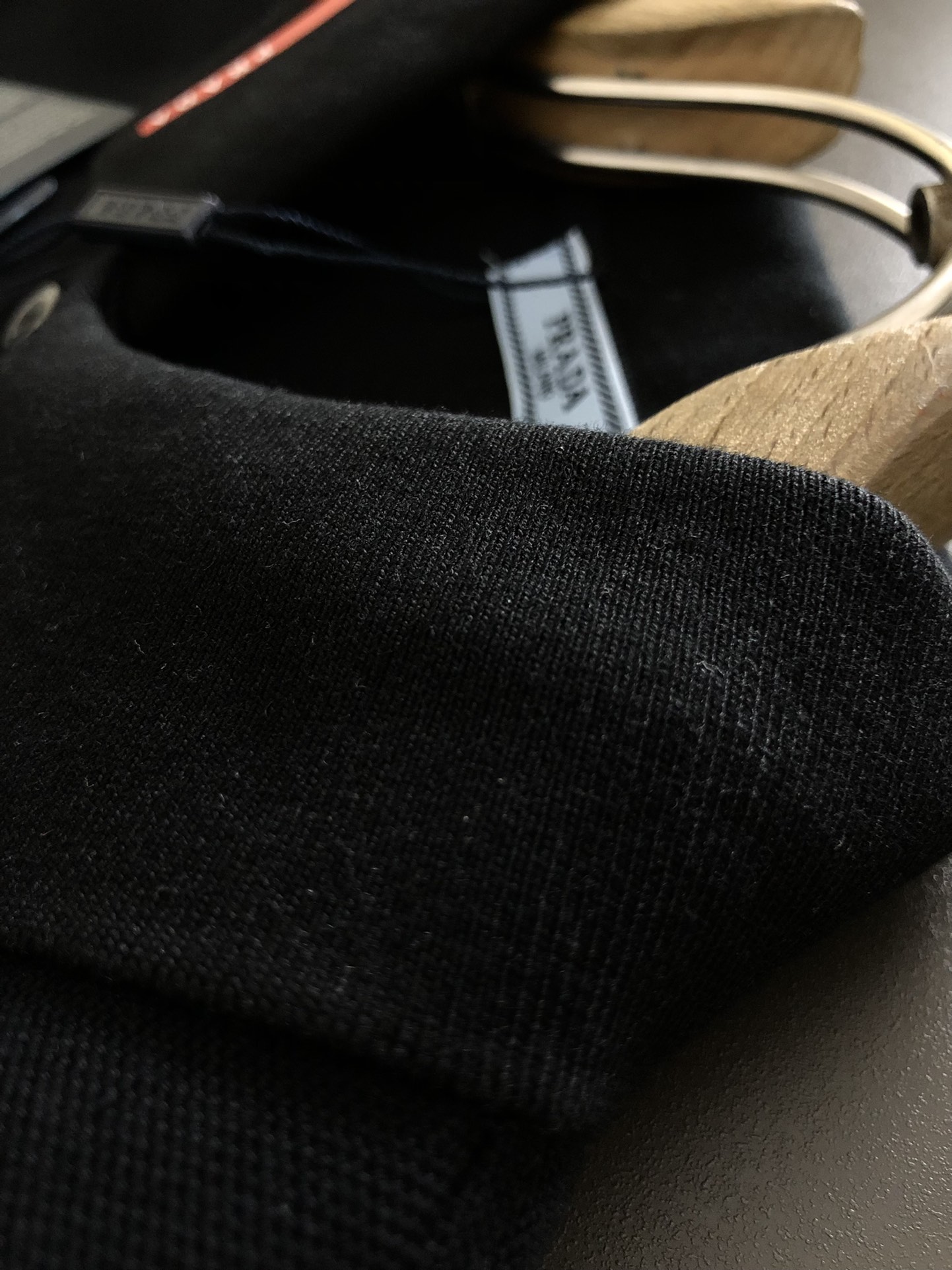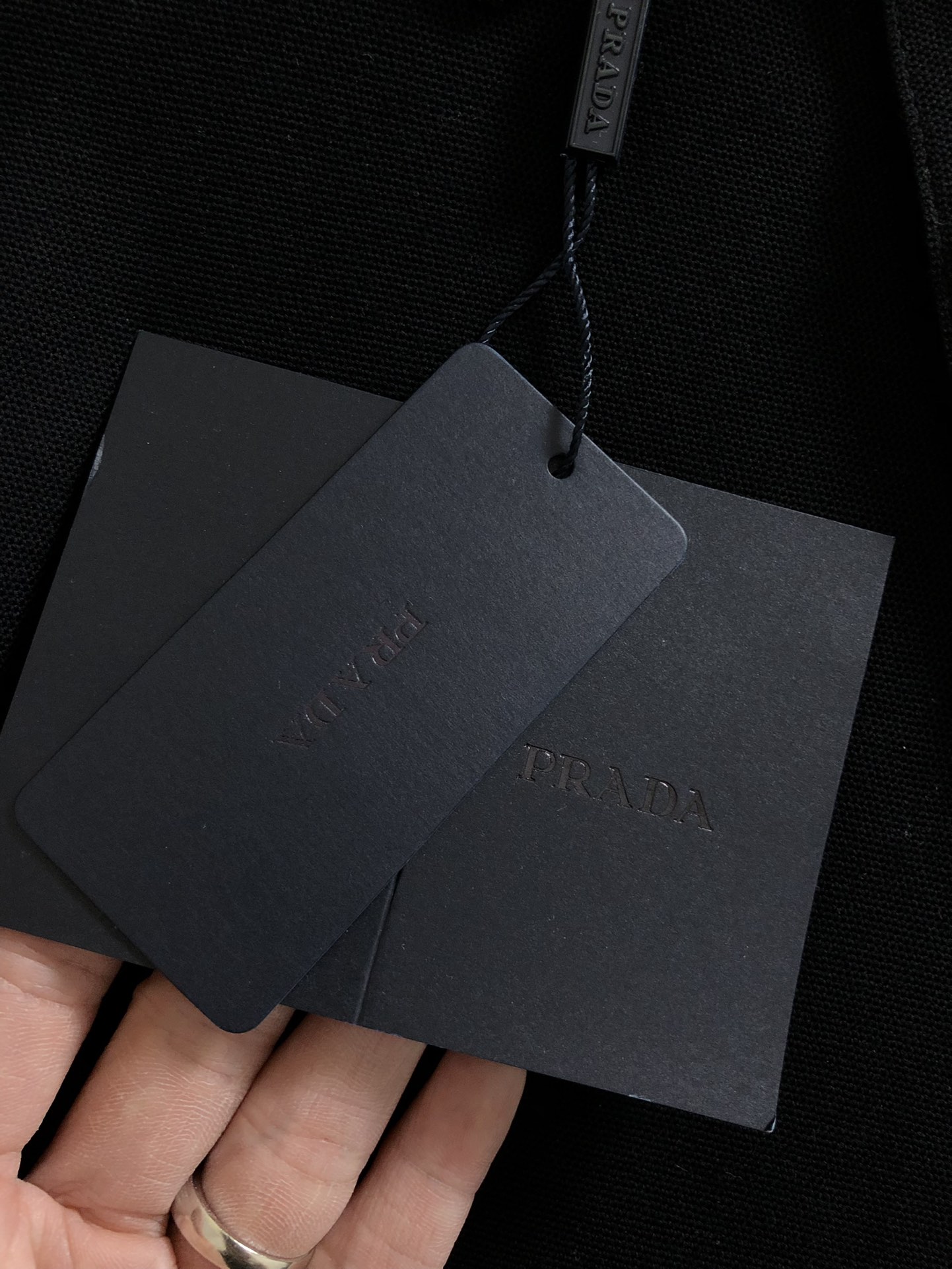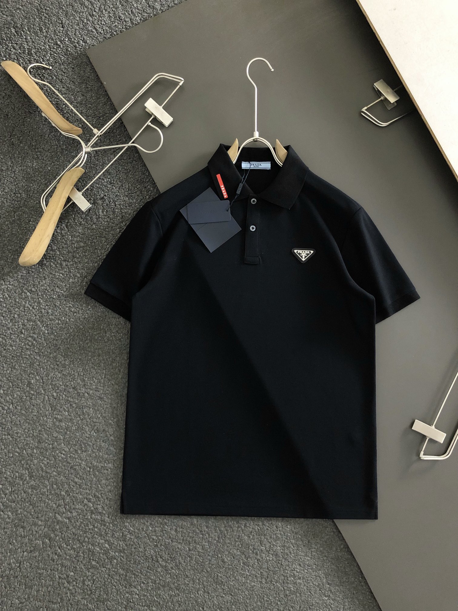 - PRAD7*合身版型 黑色立體金屬三角標領口紅條字母polo翻領短袖