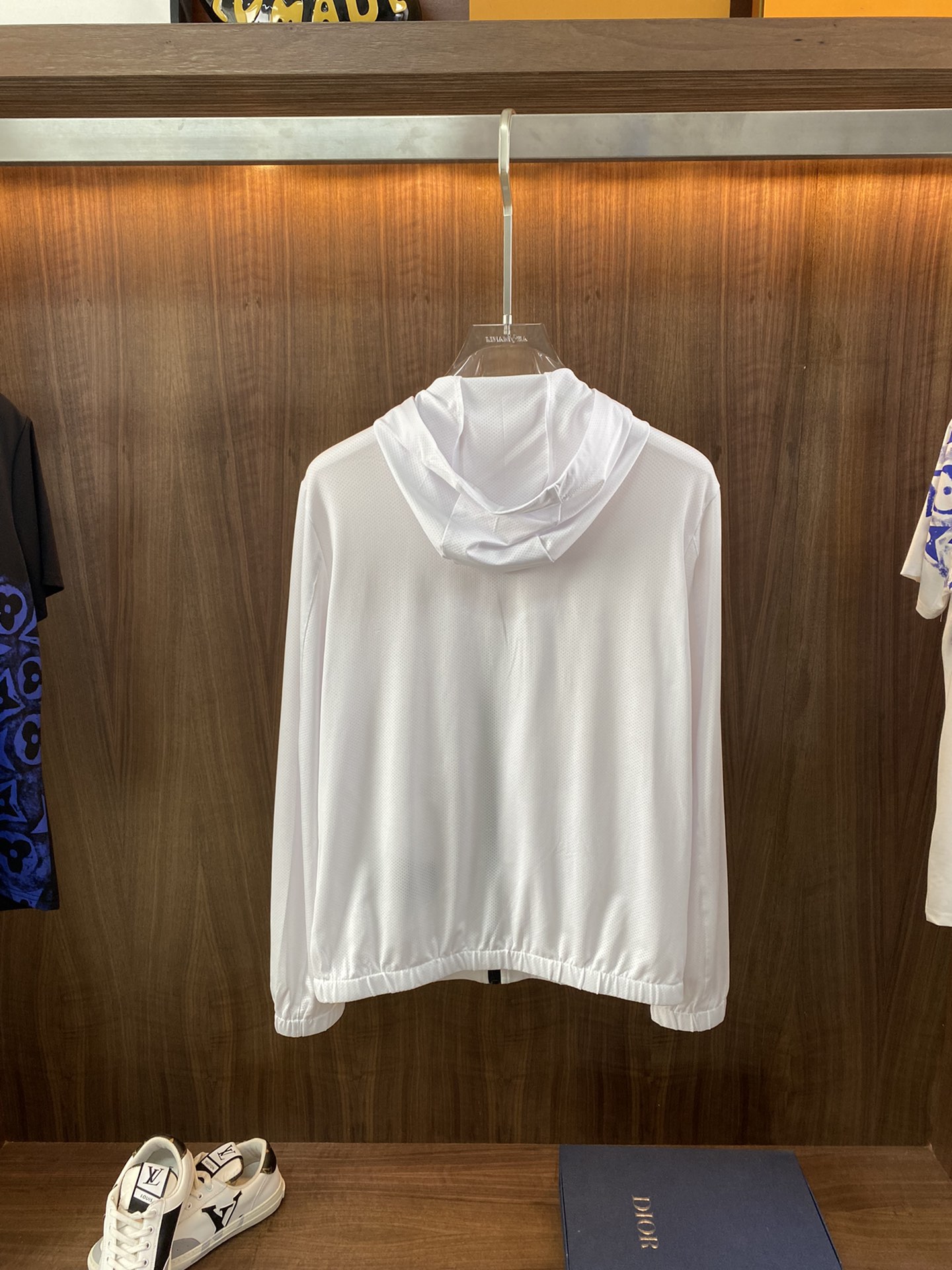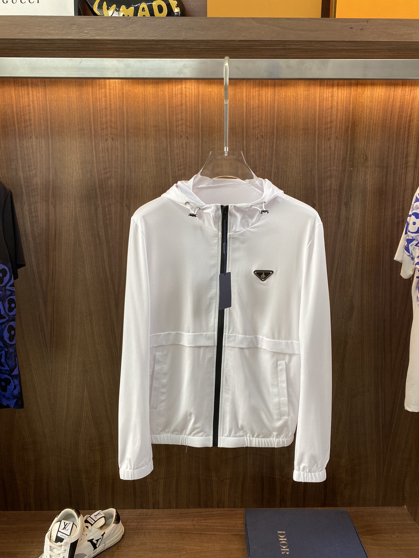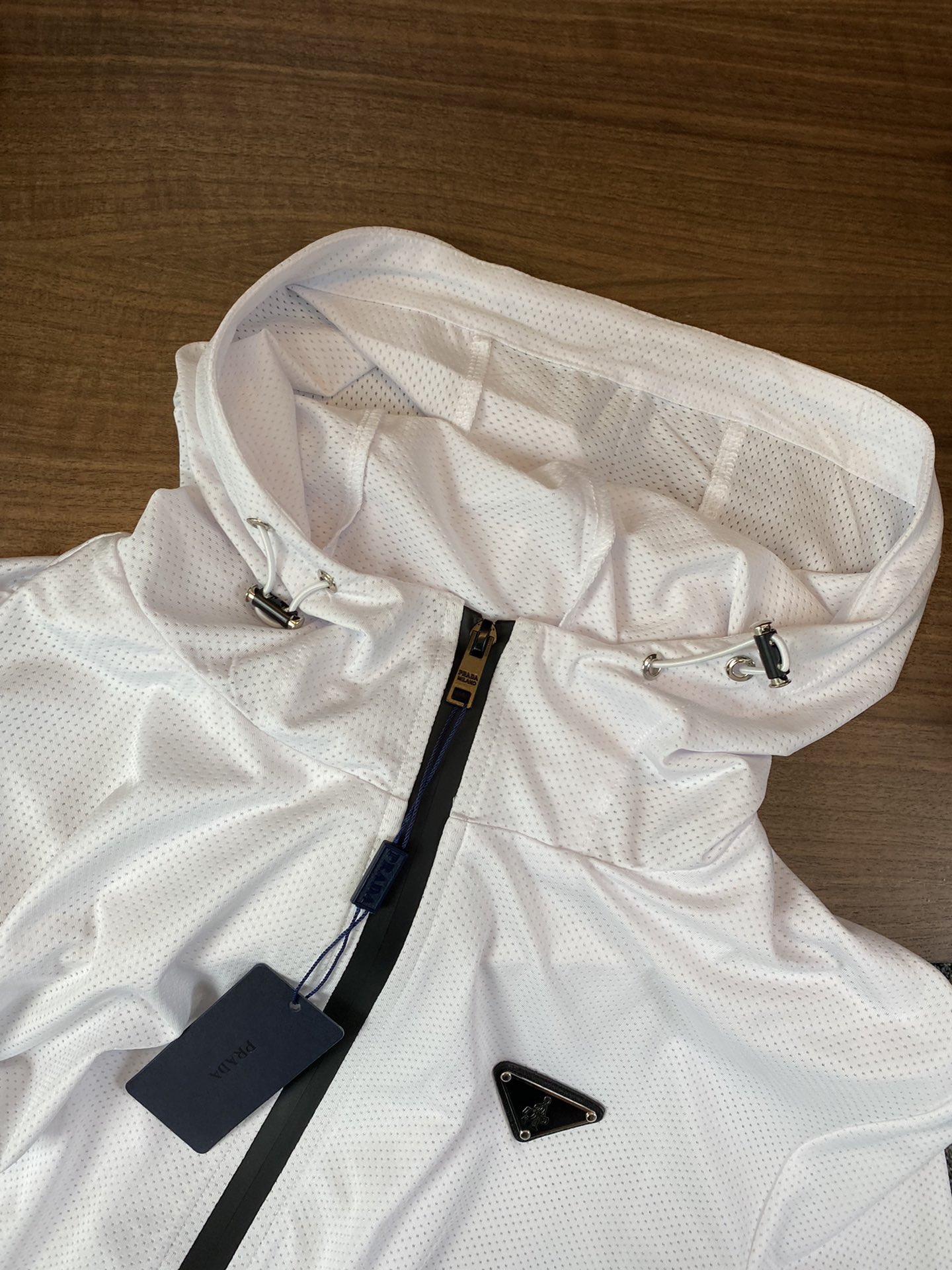 Prada普拉達 2023夏季新品防曬風衣系列,採用科技防曬面料,透氣性-舒適性-功能性全部都做到了極致,專業做梭織運功工廠代工,各種細節做的精益求精,衣服裏面每個接縫全部包邊,費時費力,每個細節處理的非常到位。碼數:M-3XL,下單請報身高體重