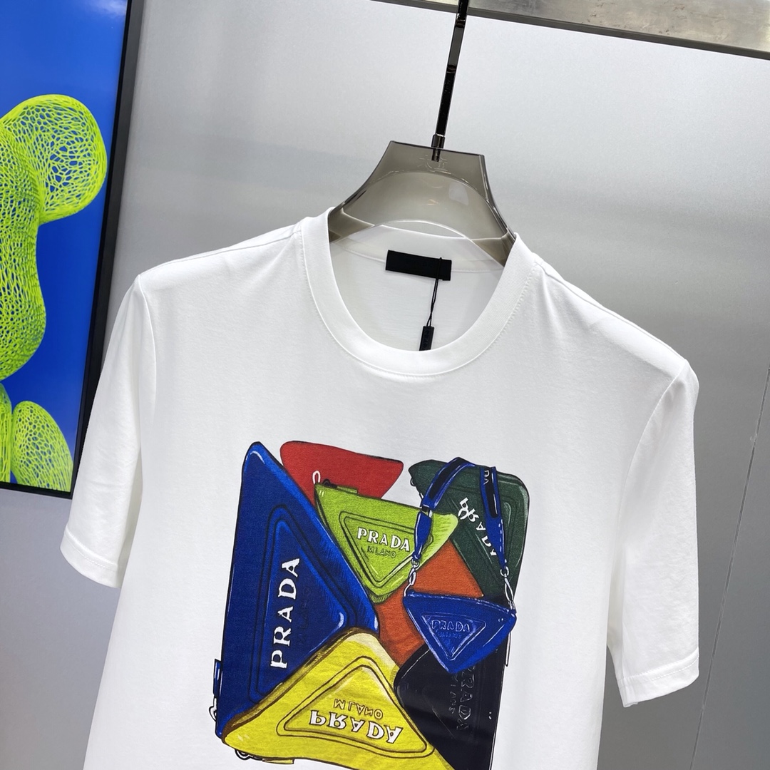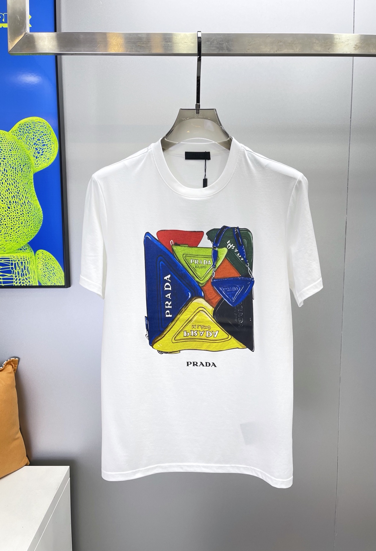 PRAD*普拉-達23S夏季男士新款圓領短袖,多色系。。。經典中的佼佼者,標誌性的prada三角標識字印花色彩搭配.客供190g雙絲光棉面料.上身舒適筆挺 經典又百搭的款,春夏必備!!修身版型!碼數:M-3XL(S和4Xl可定做)175/145斤建議XL。