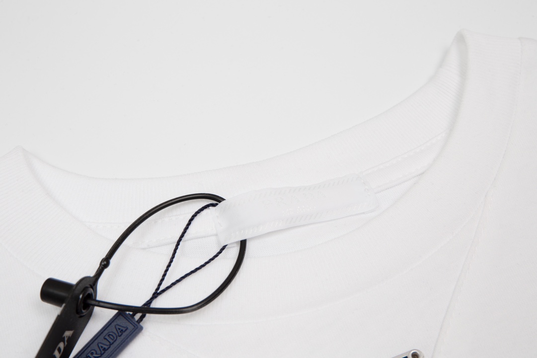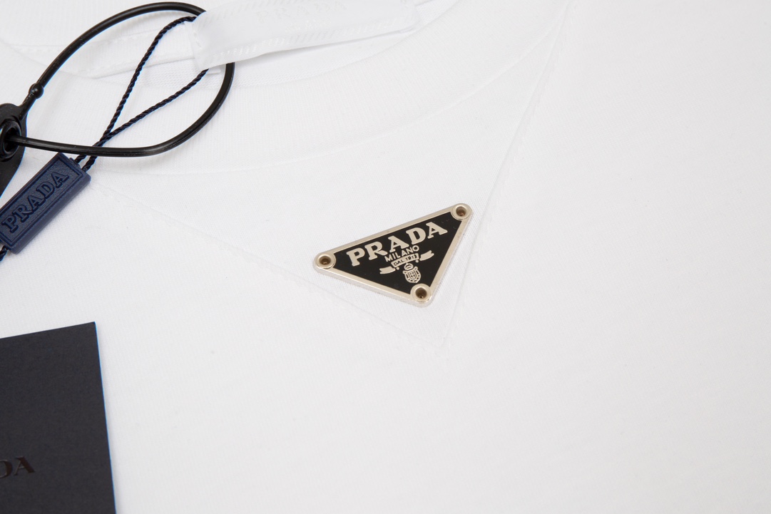 Prad 23新款 胸前三角標T恤 百搭經典~神T金屬三角標胸前小口袋設計,簡約又高級的設計!面料薄而軟高密度的針織布~親膚感巨好~男女同款!