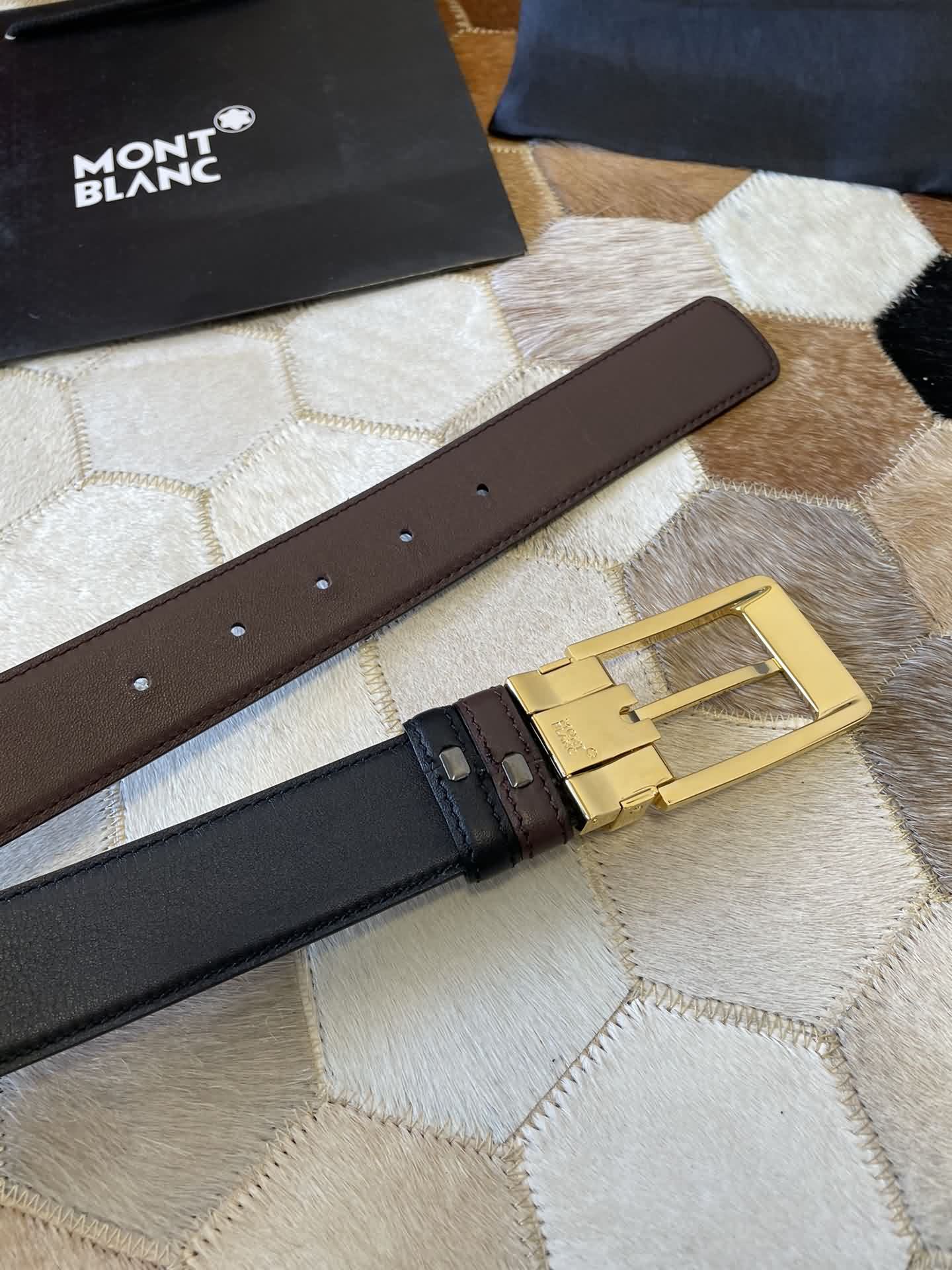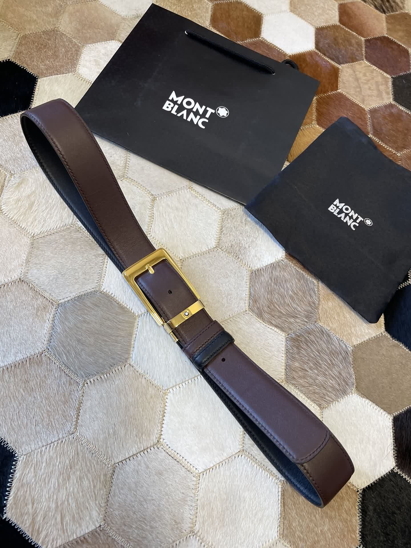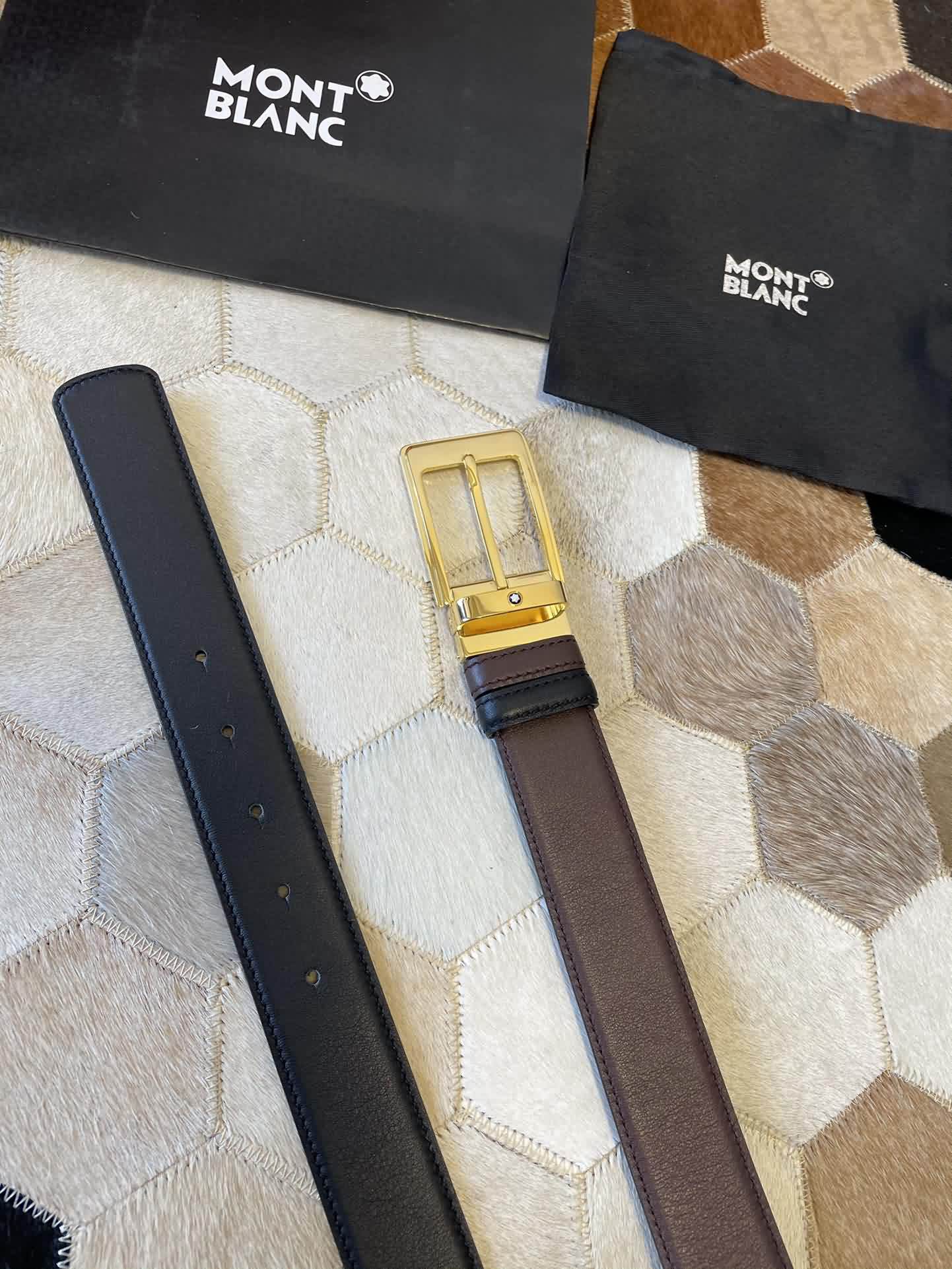 MONTBLANC 萬寶龍 進口雙面頭層牛皮腰帶