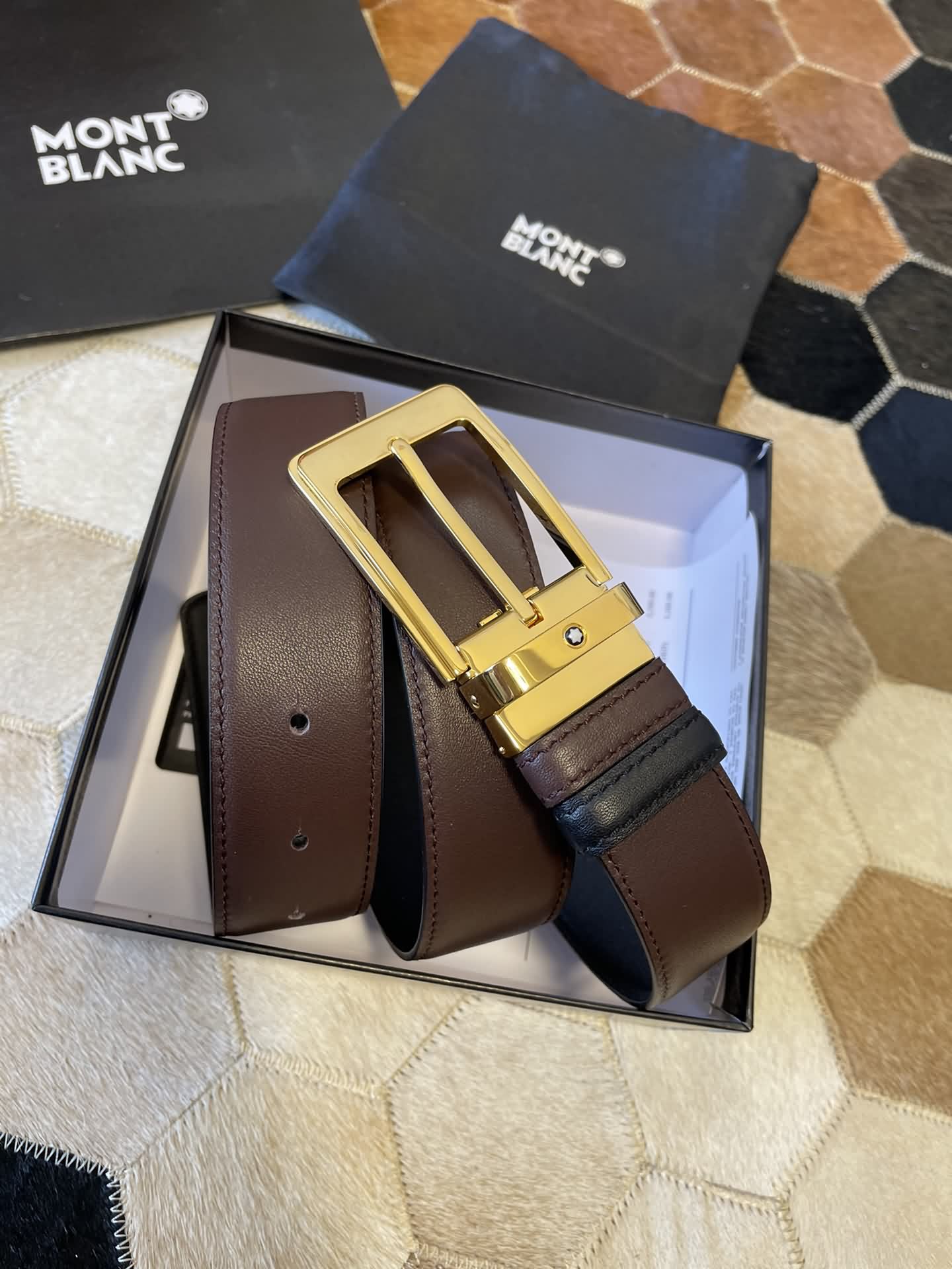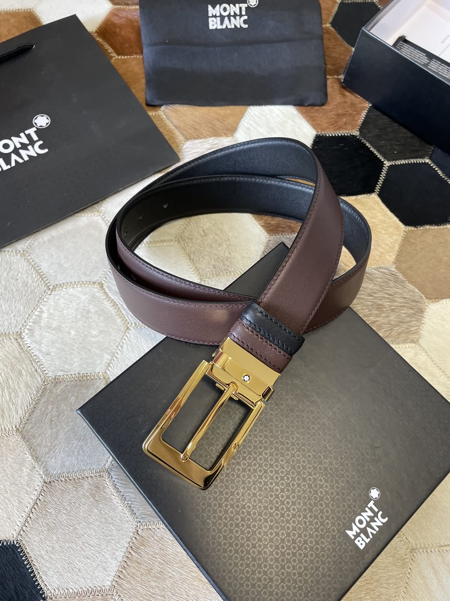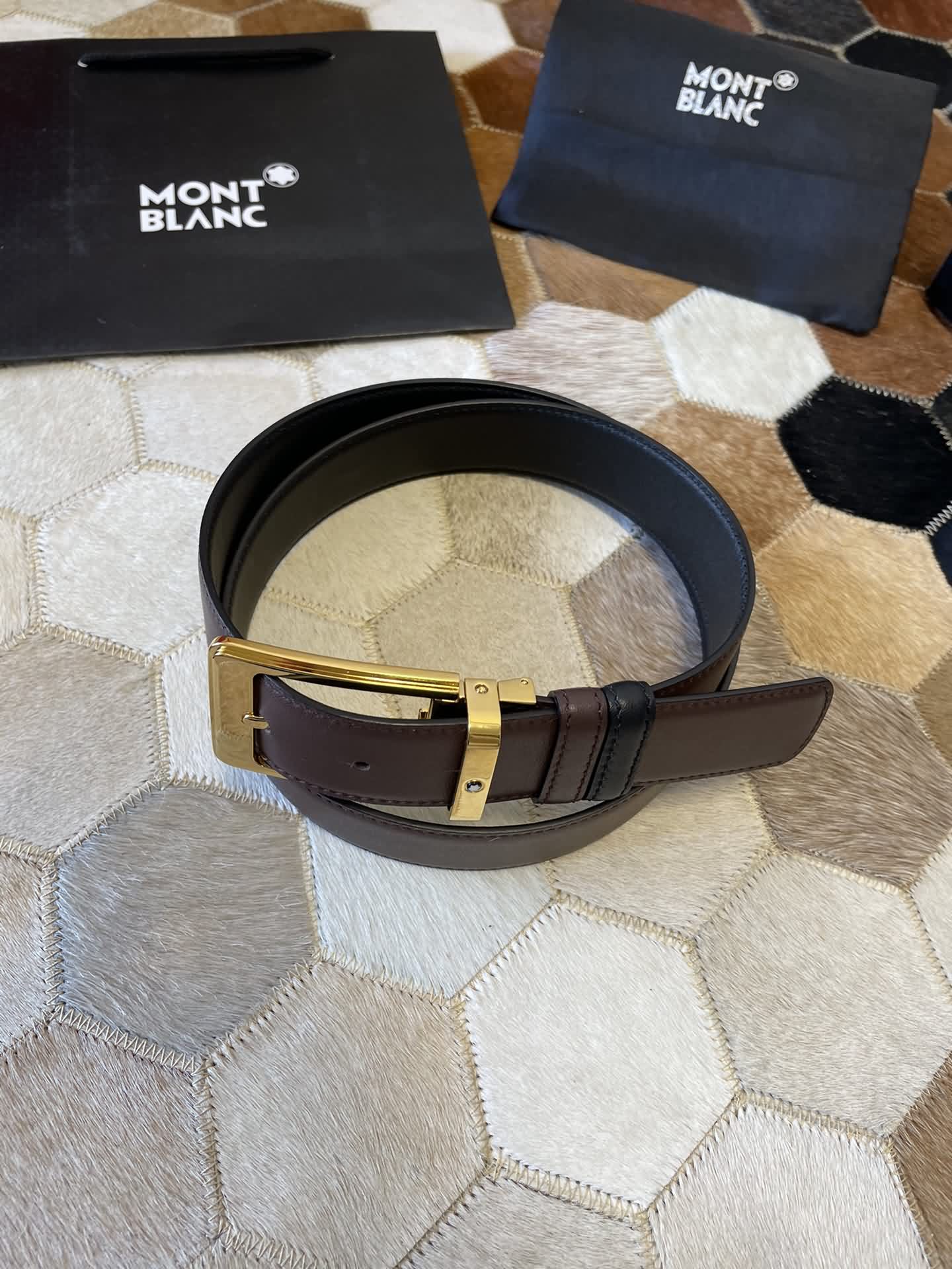 MONTBLANC 萬寶龍 進口雙面頭層牛皮腰帶