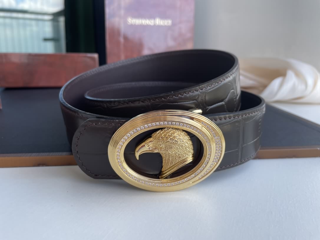 Stefano. Ricci 史蒂芬腰帶之王,精鋼材質手工雕刻工藝鷹頭栩栩如生,鋯石鑲嵌加持,精選牛皮壓制紋理,使得上身佩戴就有一種奢華尊貴身份體現。3.8cm 65247260