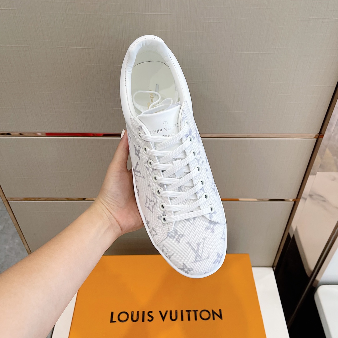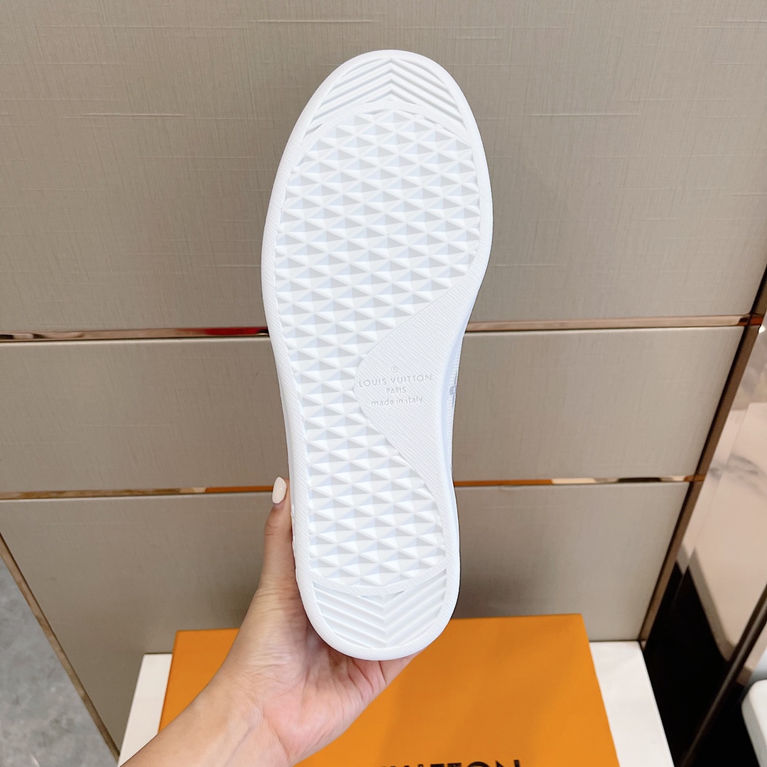 取材柔軟牛皮製成。飾有品牌壓印,刺繡圖案。線條簡潔清爽,細節設計精緻。鞋舌上的金色壓印英文標識以及橡膠大底上的monogram花卉圖案