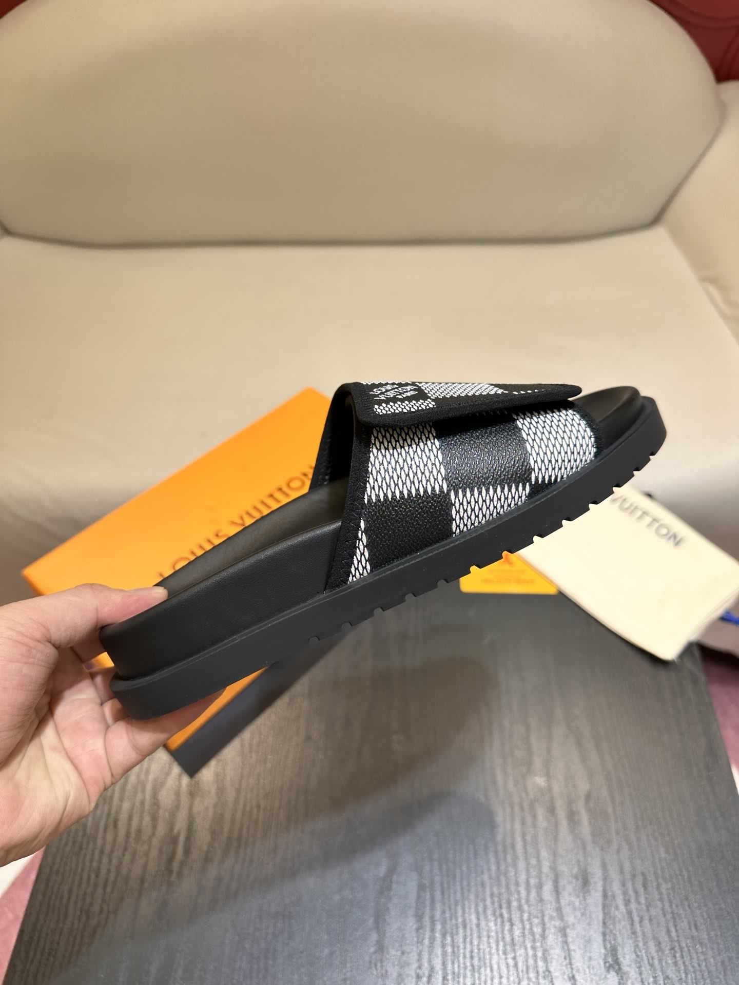L奢品Trainer 涼拖鞋,選用頭層小牛皮材質,輕盈舒適。鞋面飾帶飾有 Monogram 壓紋。帶來別致的色彩拼接效果。精准貼腳的鞋墊與細紋橡膠外底靈感源自 L* Trainer 運動鞋。