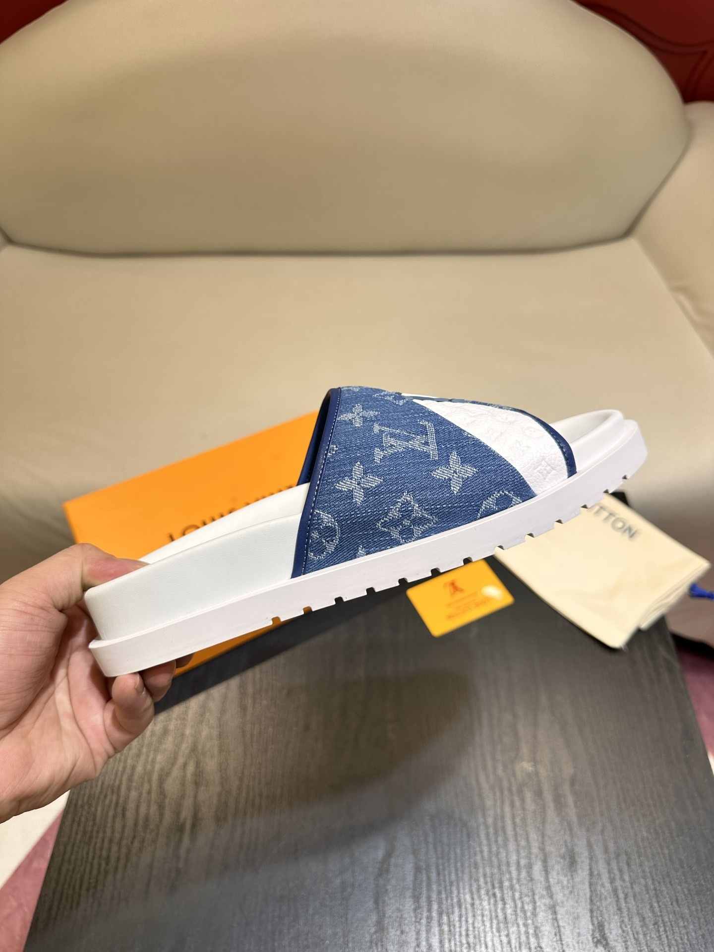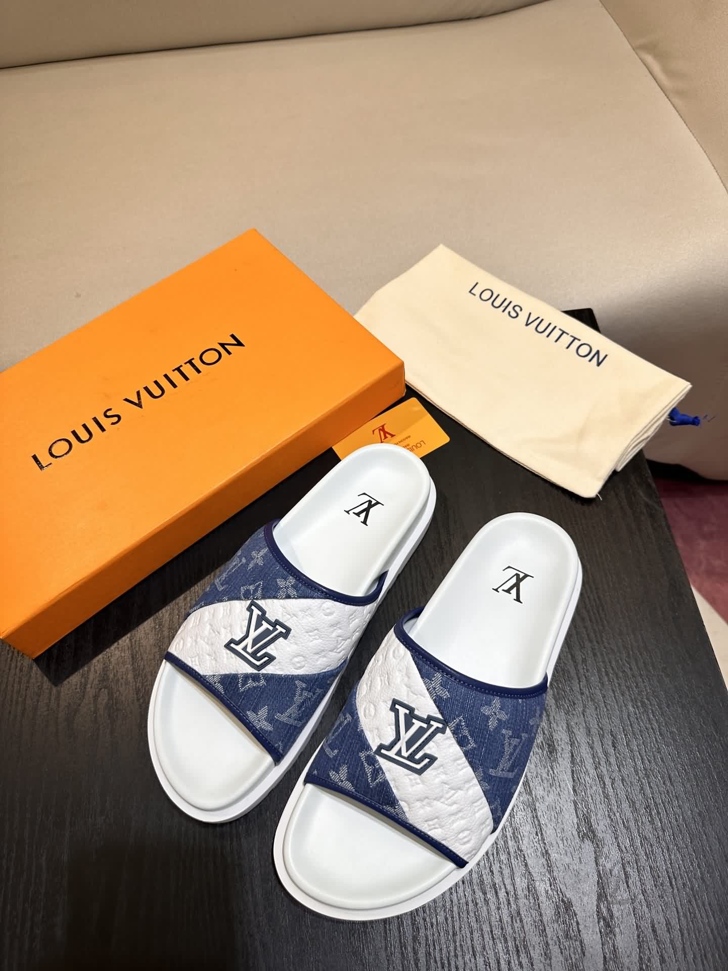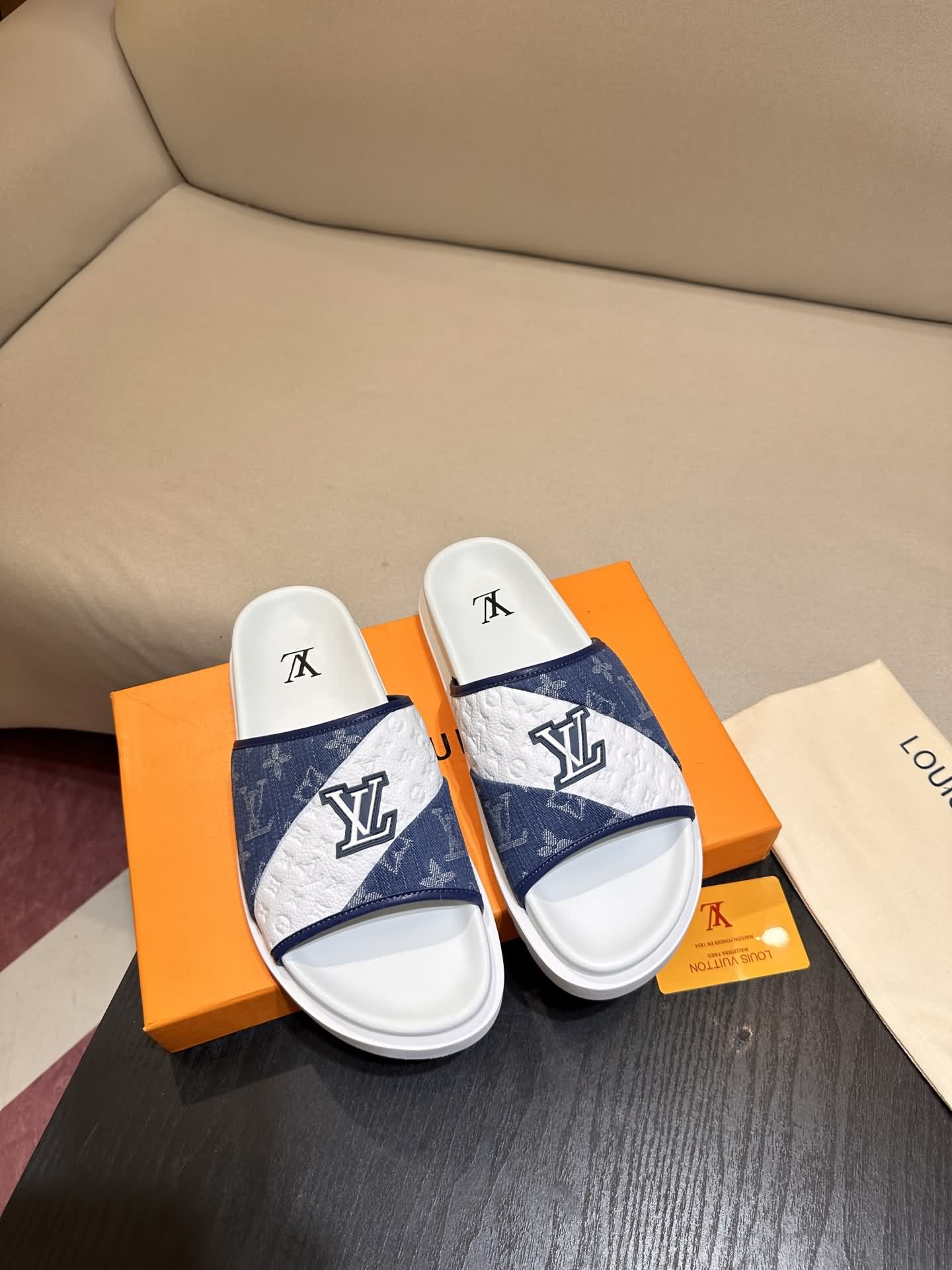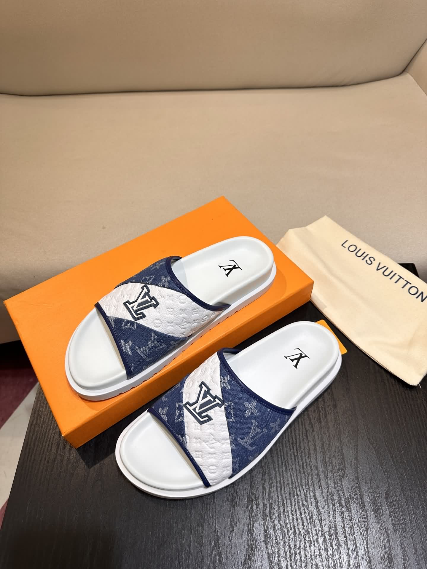 L奢品Trainer 涼拖鞋,選用頭層小牛皮材質,輕盈舒適。鞋面飾帶飾有 Monogram 壓紋。帶來別致的色彩拼接效果。精准貼腳的鞋墊與細紋橡膠外底靈感源自 L* Trainer 運動鞋。 Size:38-47
