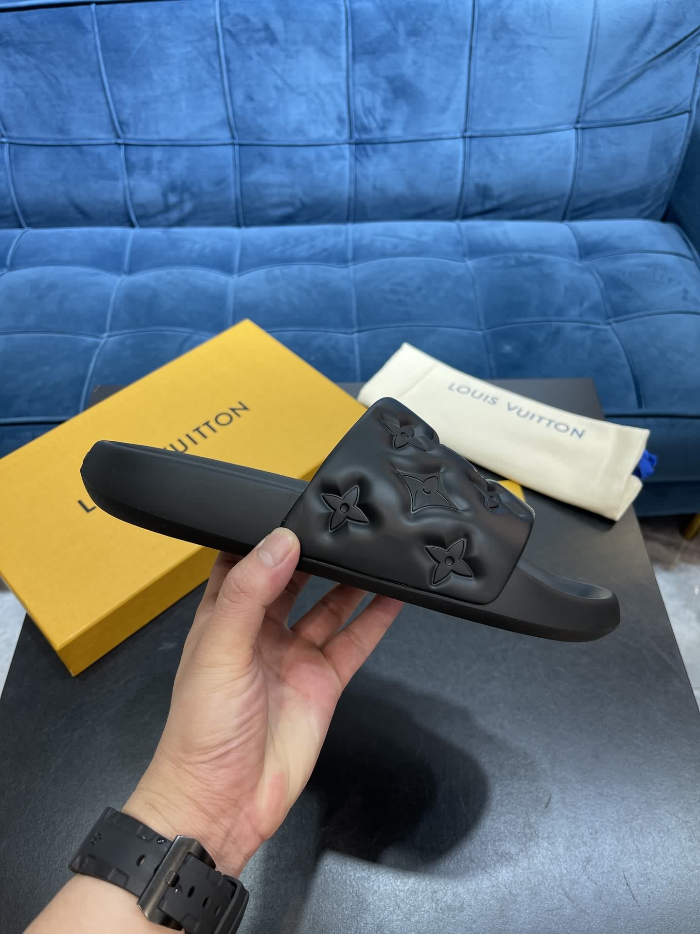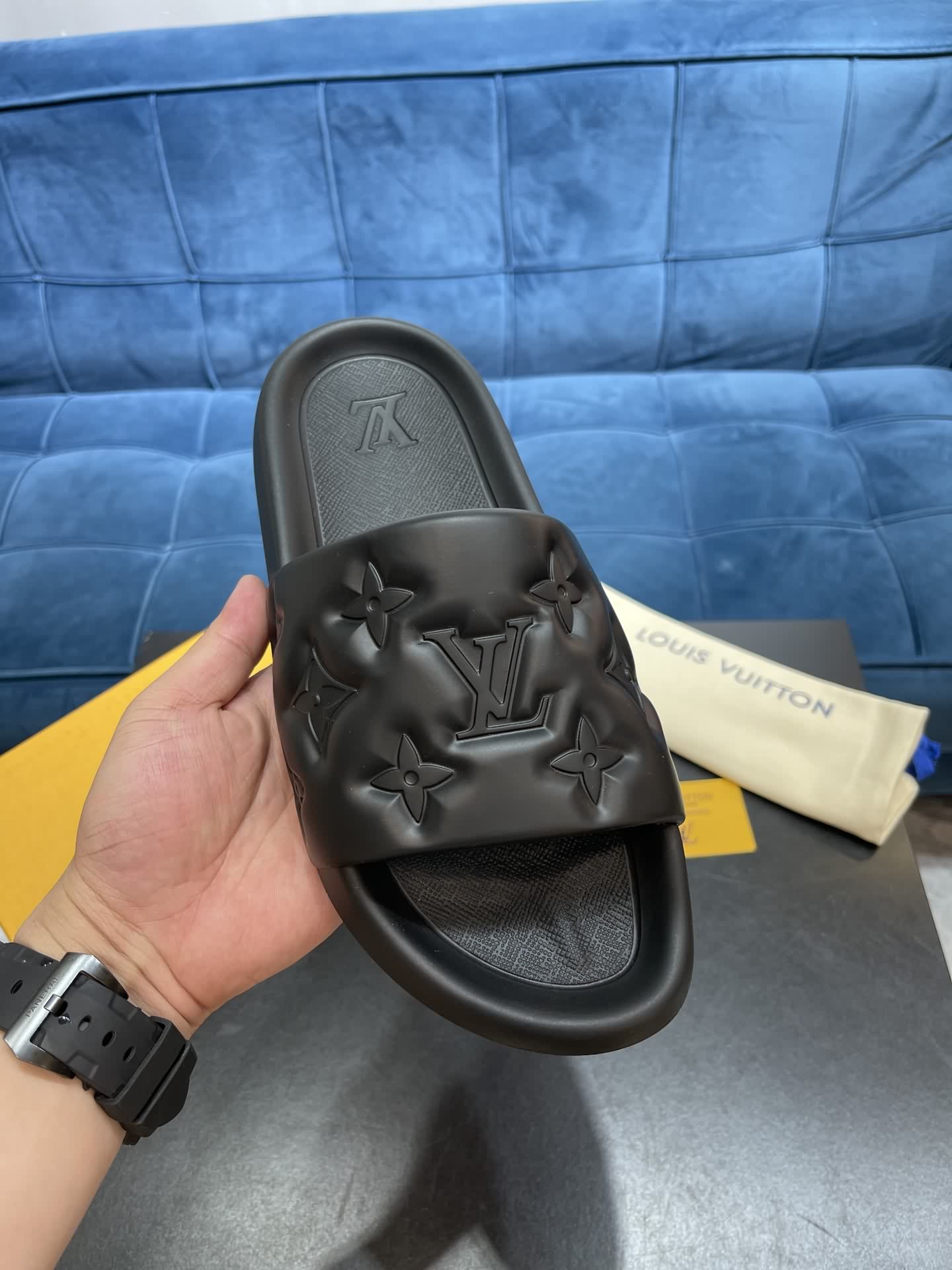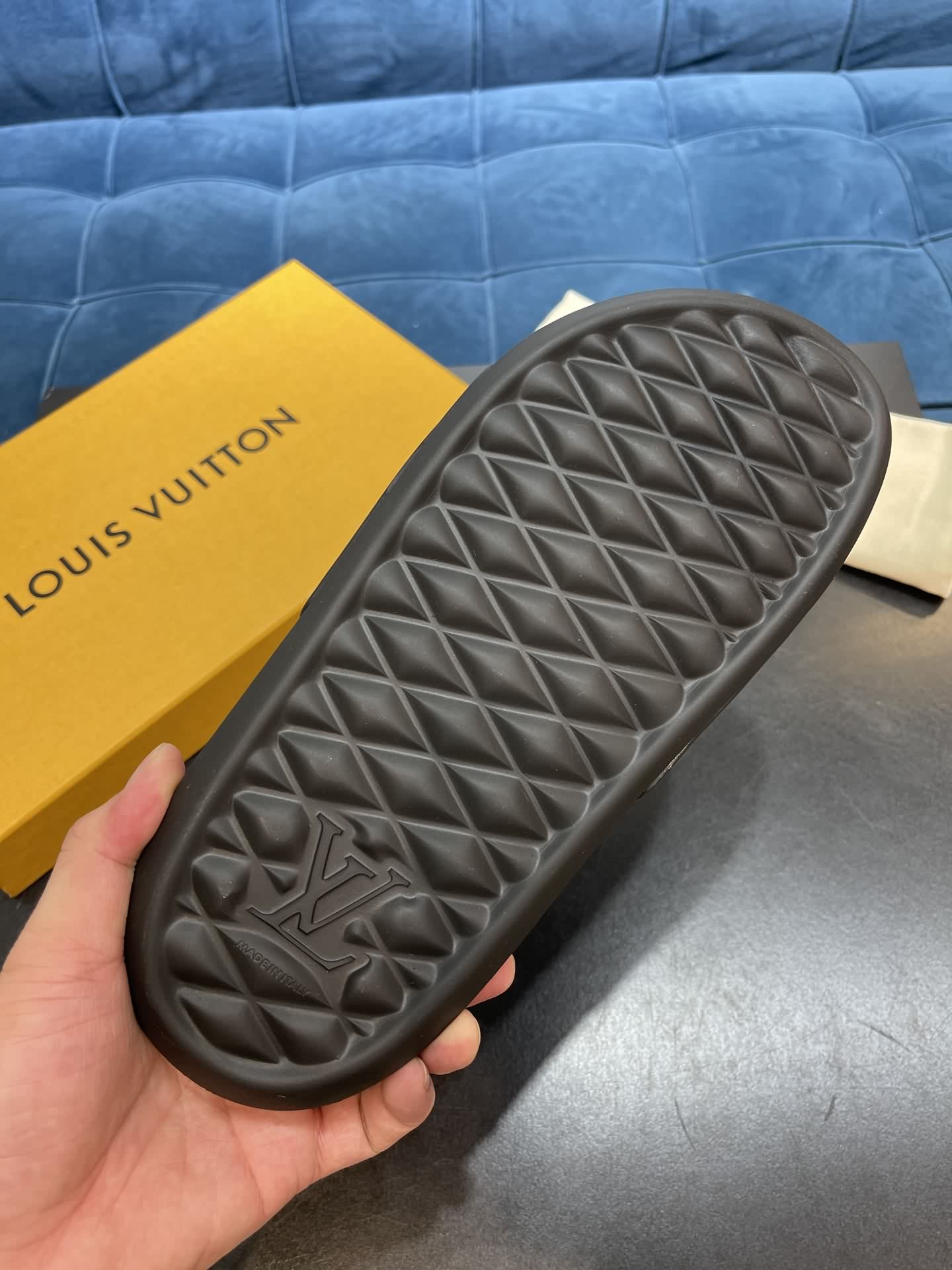L Waterfront 涼拖煥新回歸,鞋面扣帶壓印路易威登標誌性的 Monogram 圖案。由防水橡膠製成,搭配舒適韌性鞋墊。輕盈靈活的外底壓印路易威登標識 Size 38-46