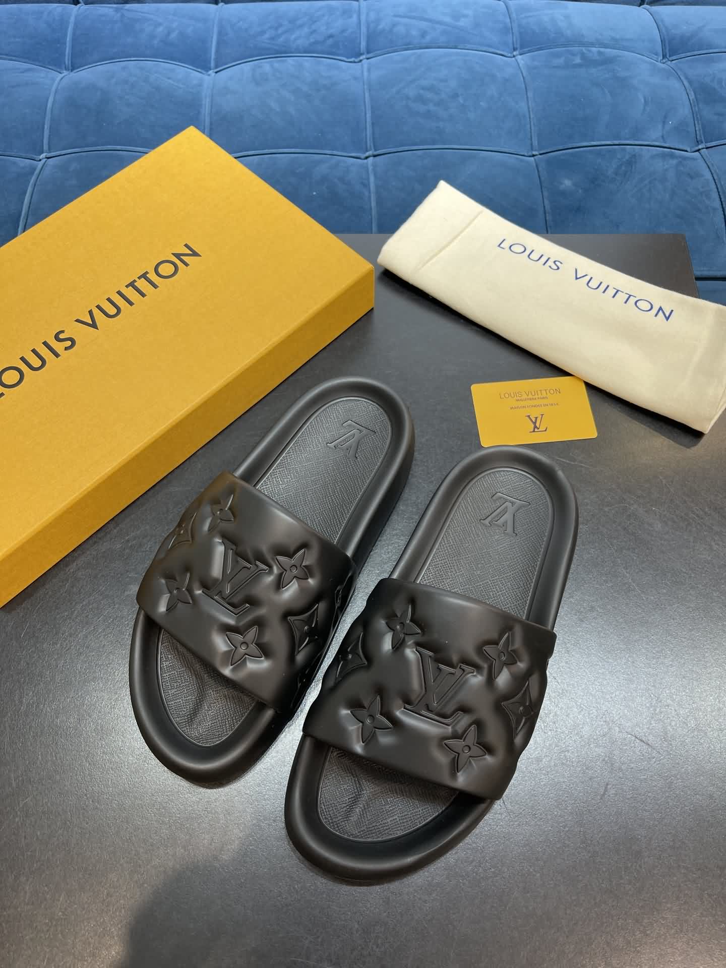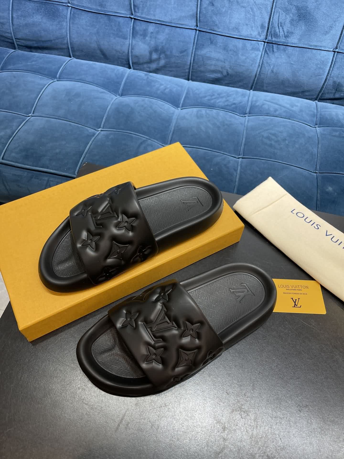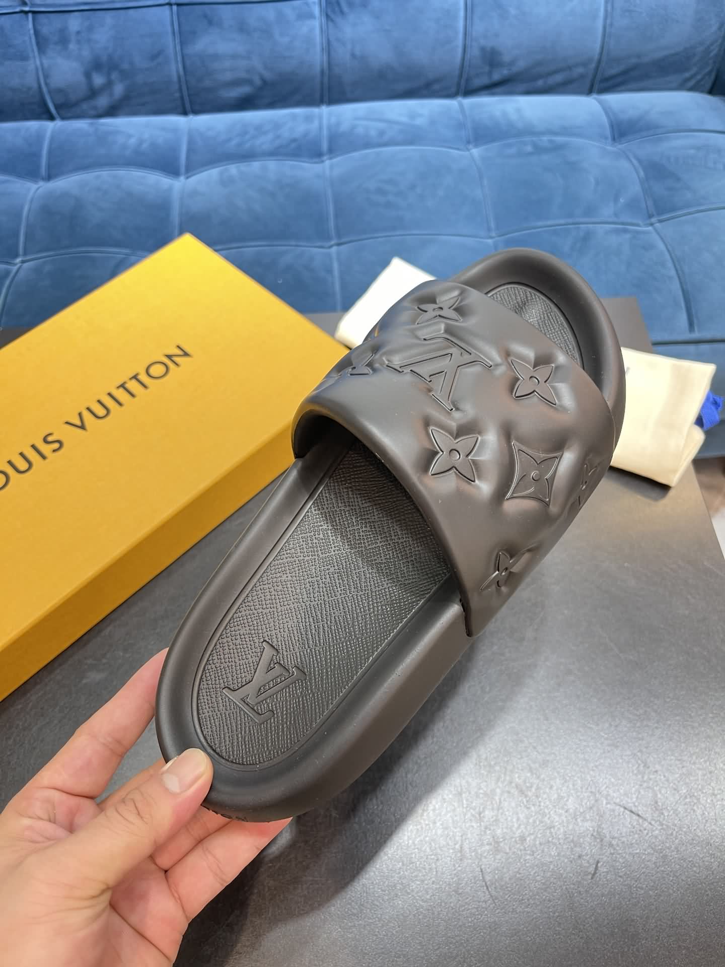 L Waterfront 涼拖煥新回歸,鞋面扣帶壓印路易威登標誌性的 Monogram 圖案。由防水橡膠製成,搭配舒適韌性鞋墊。輕盈靈活的外底壓印路易威登標識 Size 38-46