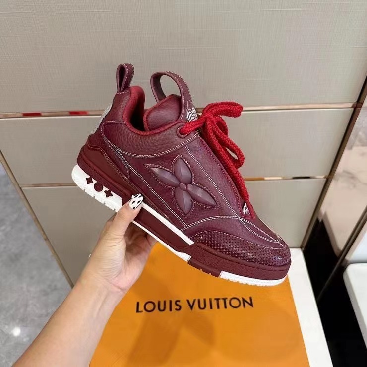 Skate 男款運動鞋-秋冬秀場初次亮相,此次以粒面牛皮革煥新呈現。大號 Monogram 花卉綻放一側,加墊鞋領和鞋舌援引滑板鞋設計,科技雙鞋帶和橡膠外底完善整體。