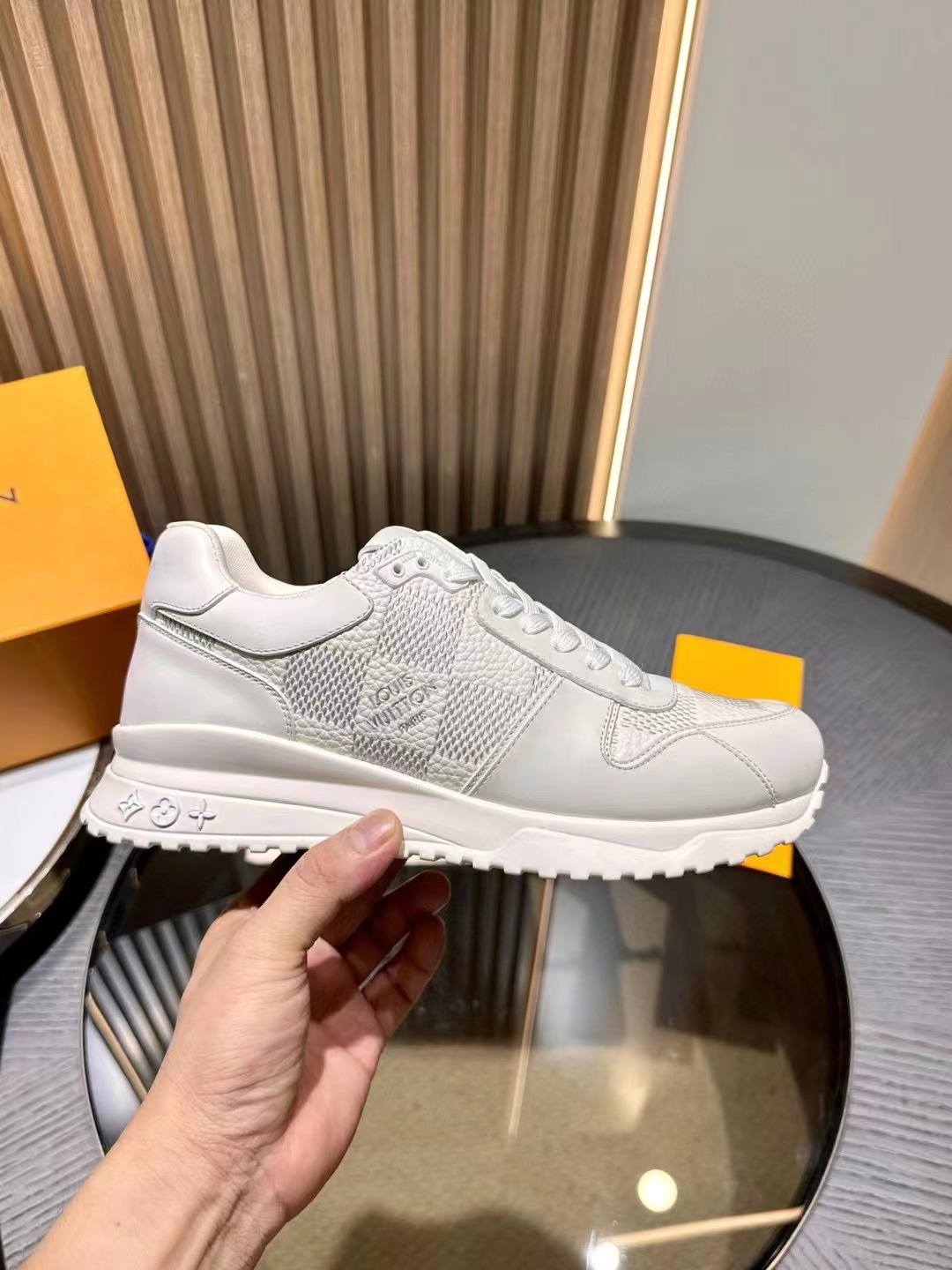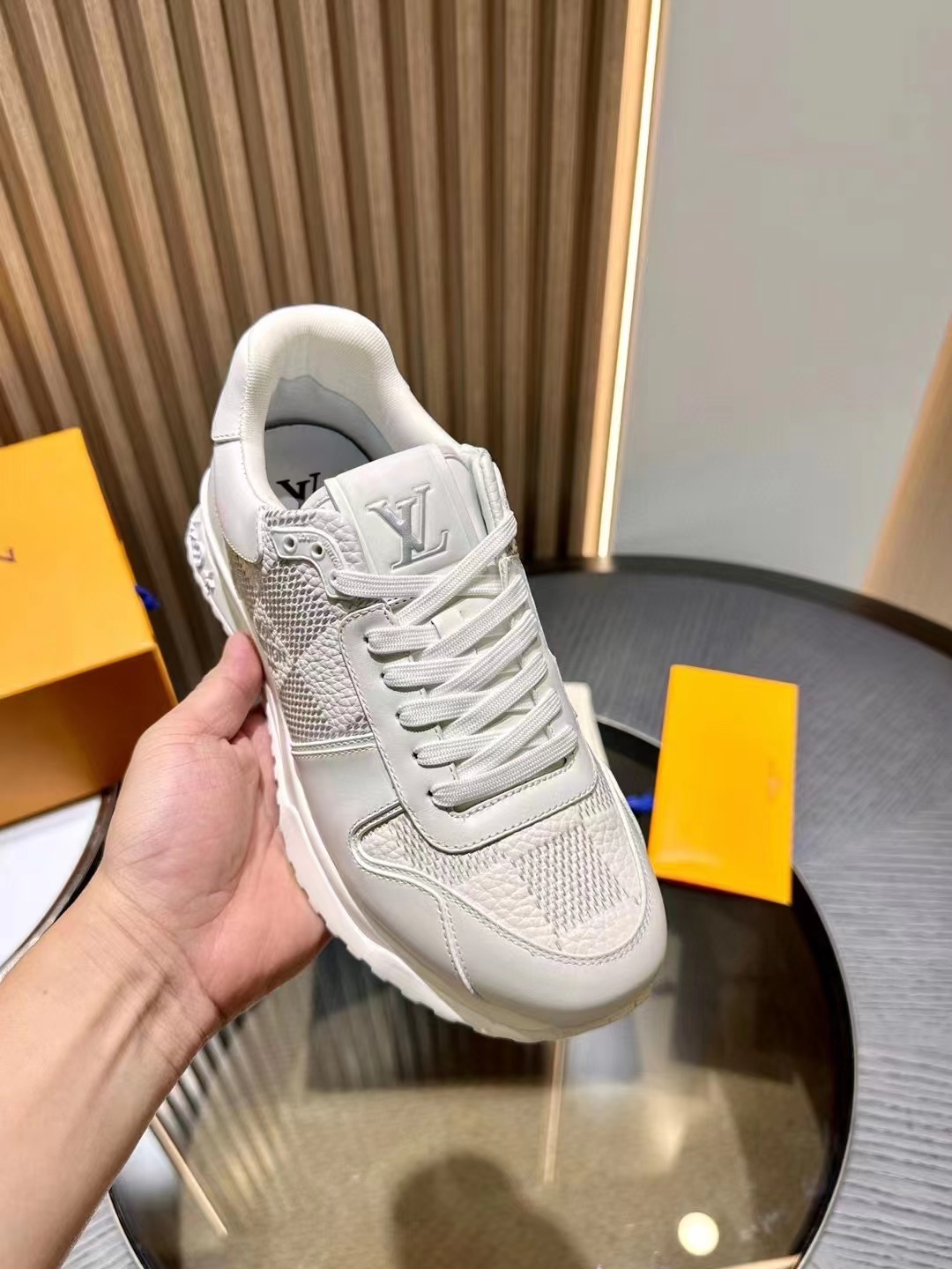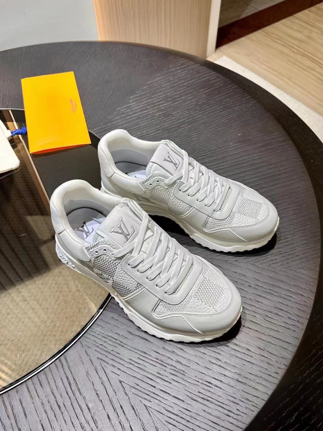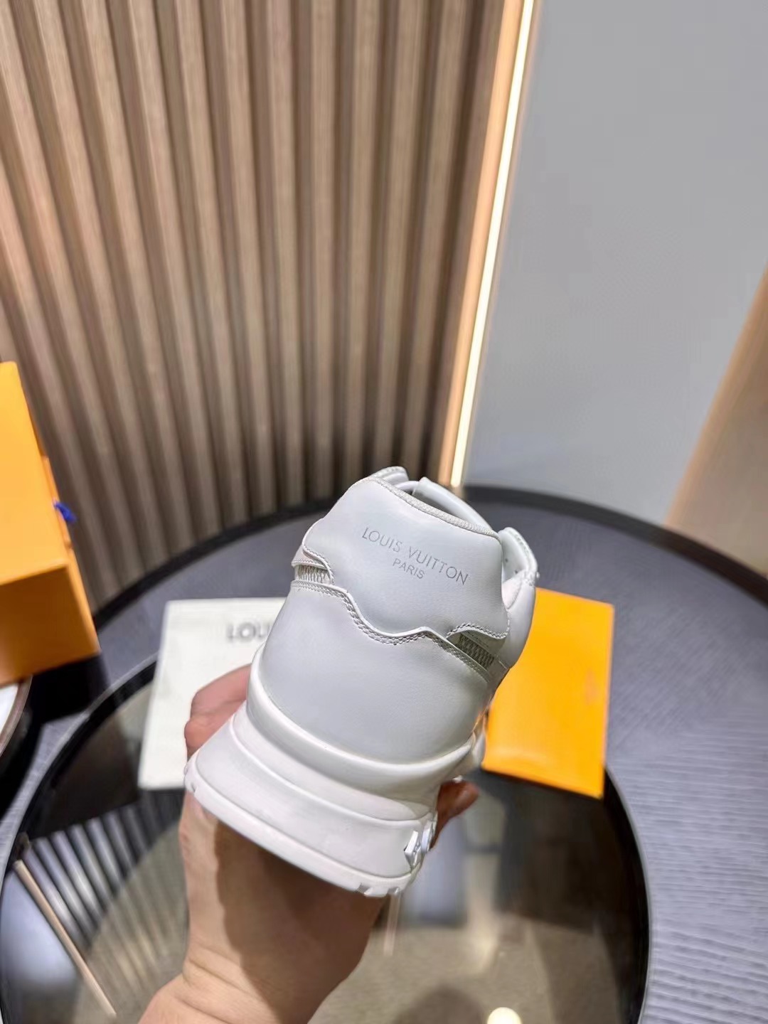 LV 字母和路易威登巴黎標識分飾鞋舌和鞋後。