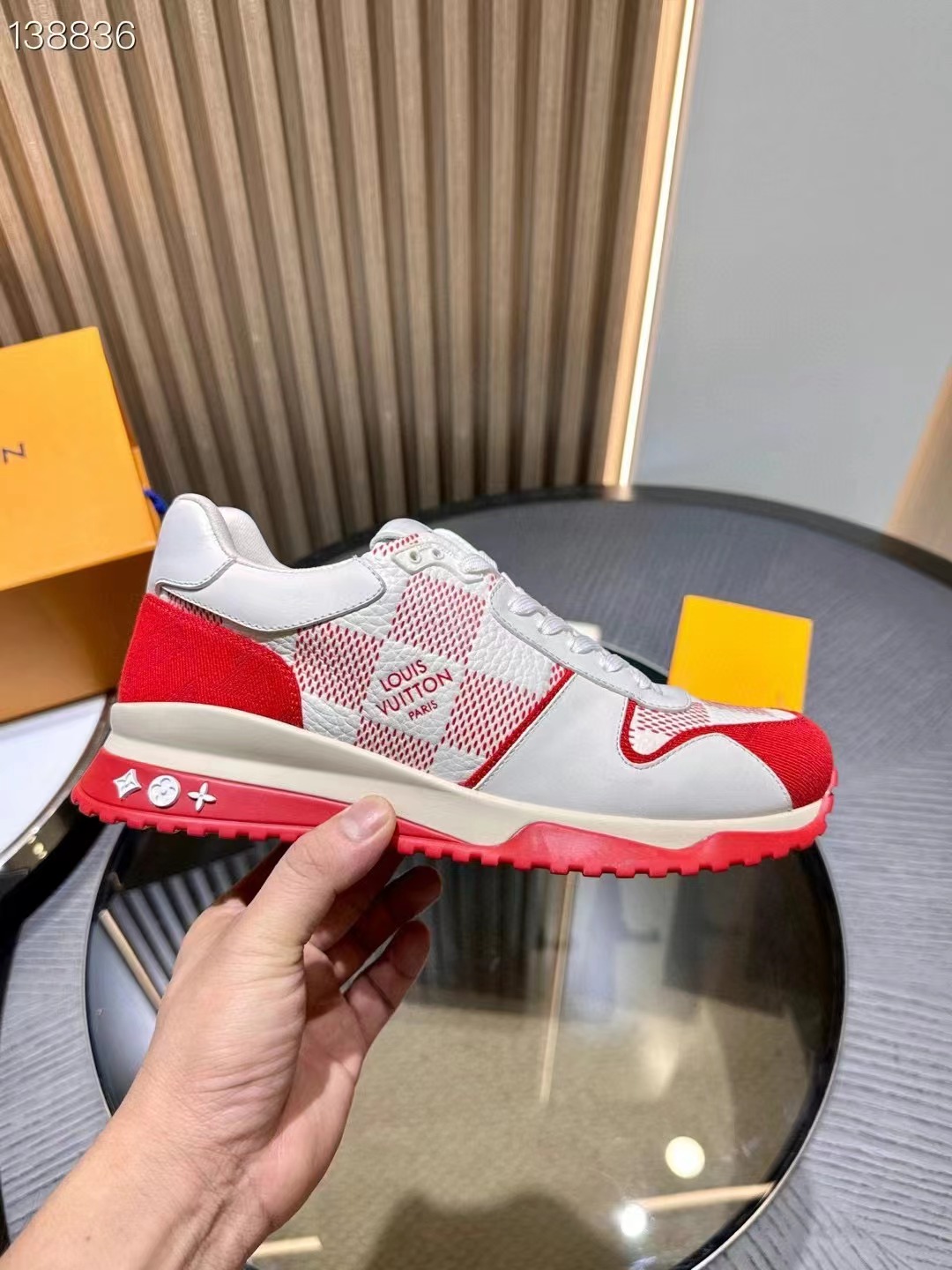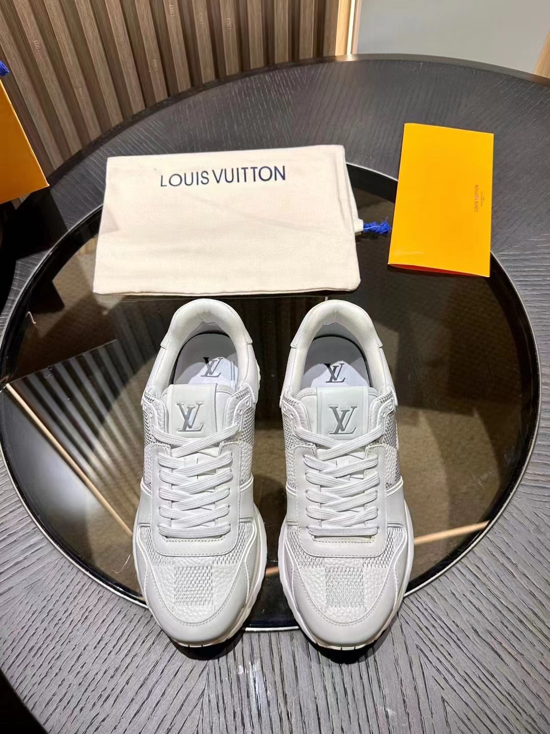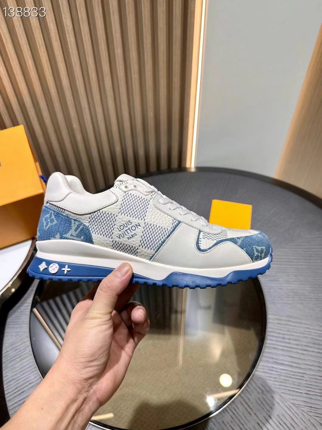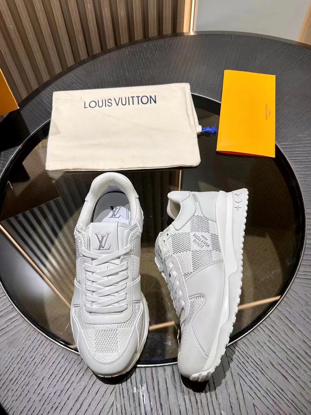 LV 字母和路易威登巴黎標識分飾鞋舌和鞋後。