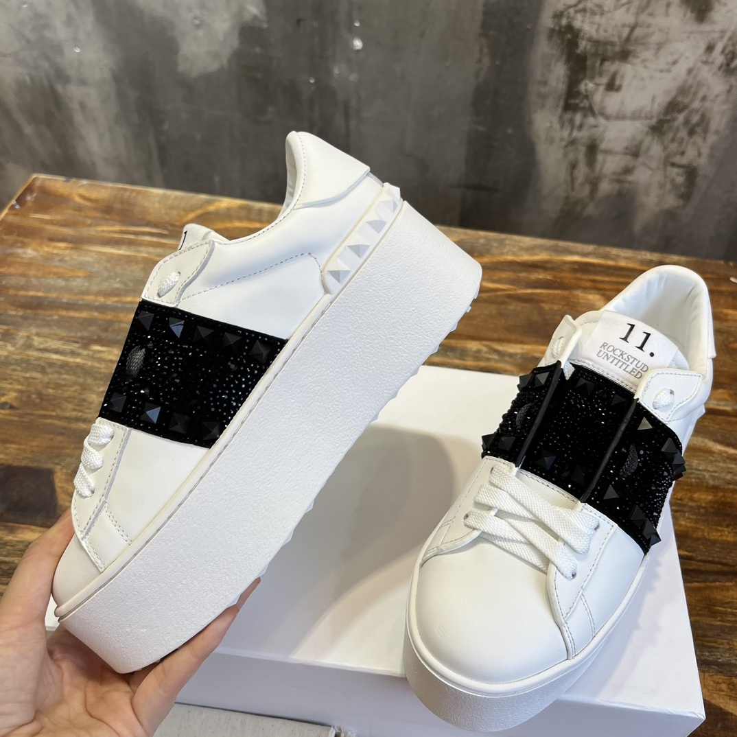 【現貨】頂級 VALENTINO華倫天奴2023vs春夏最新時裝周走秀厚底新款…… 【厚底拼色鉚釘小白鞋】 網紅名星同款一比一獨家私模,重磅來襲,經典款最具特色的打釘工藝,面料採用絲綢牛皮,鞋面全油邊,原版1:1複刻,市場上《頂級版本》…… 面料:絲綢牛皮 打釘燙鑽工藝 內裏:定制絲綢牛皮 墊腳:定制絲綢牛皮注塑成型 大底:獨家開模松糕大底(底厚:5.5cm) 包裝:原版全套包裝 碼數:35-39(女款40.41定制不退換) 顏色:官網同步更新