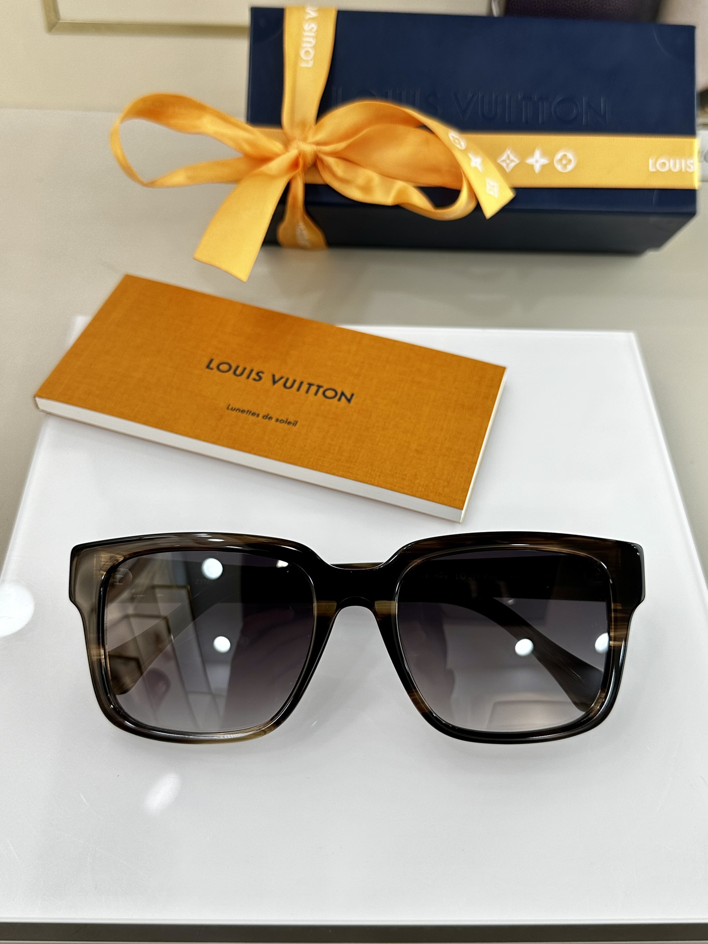 LOUIS VUITTO Glide 太陽鏡 方款簡約 S-lock 鉸接鏤刻 LV 字母logo 採用義大利進口大理石紋鏡架 品質質感極好