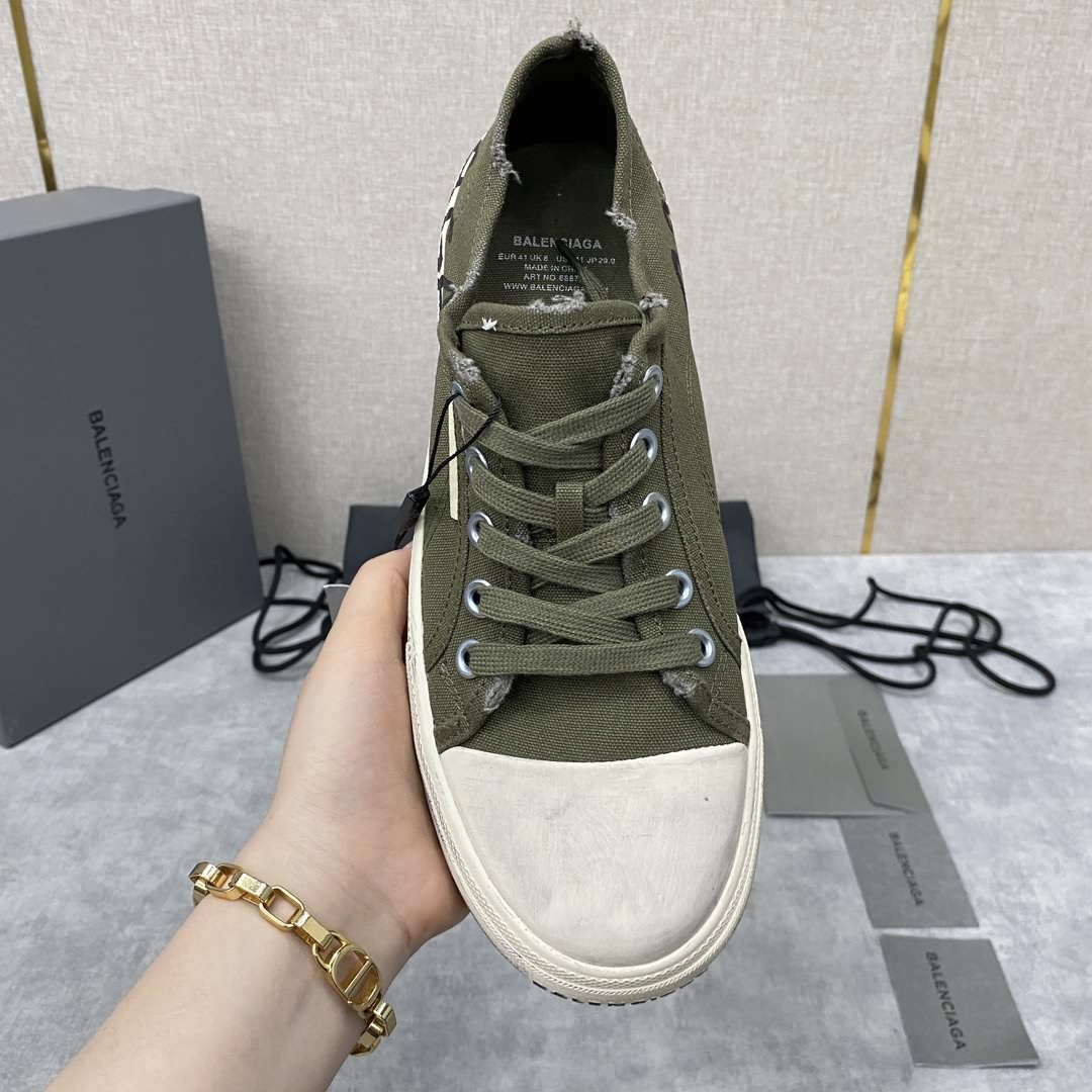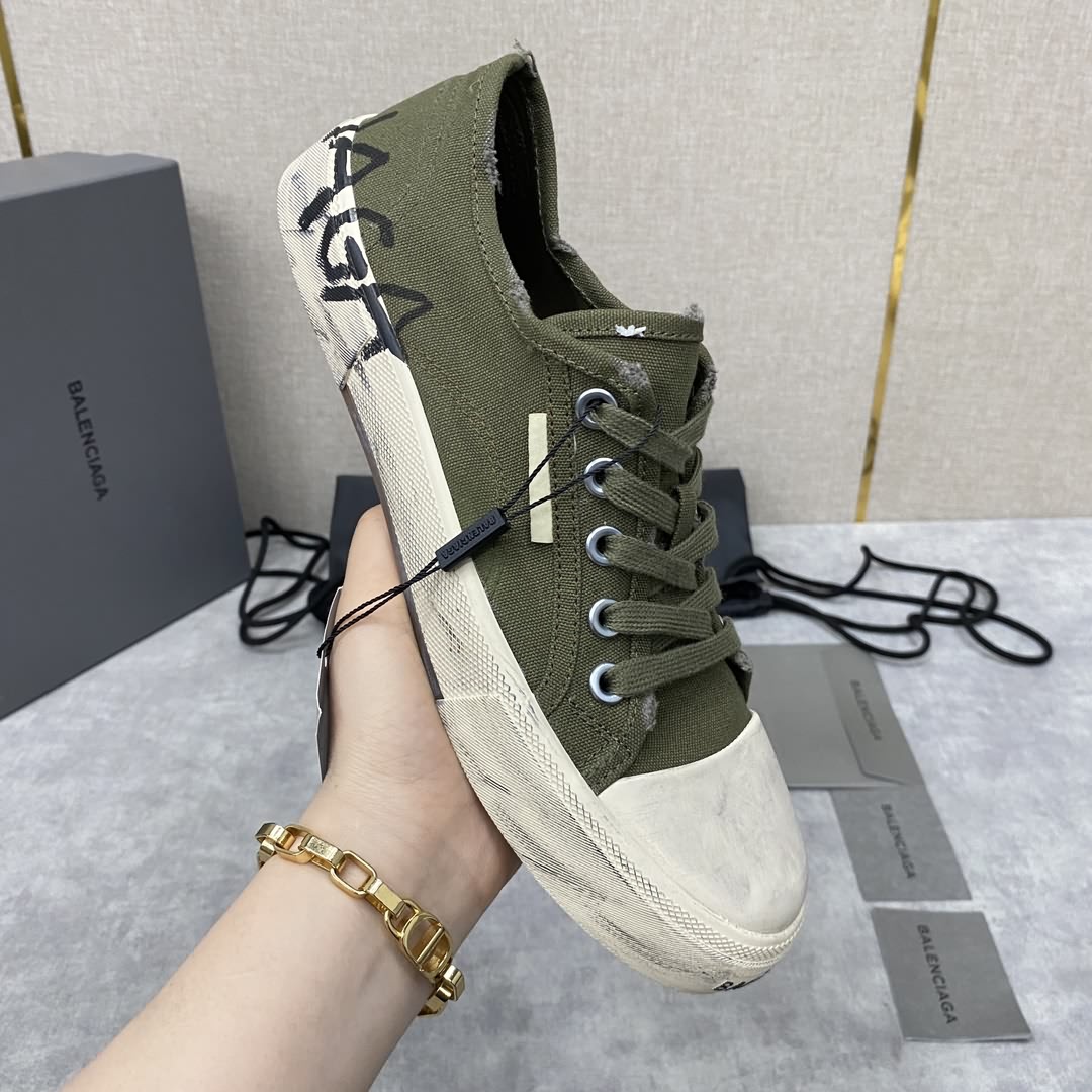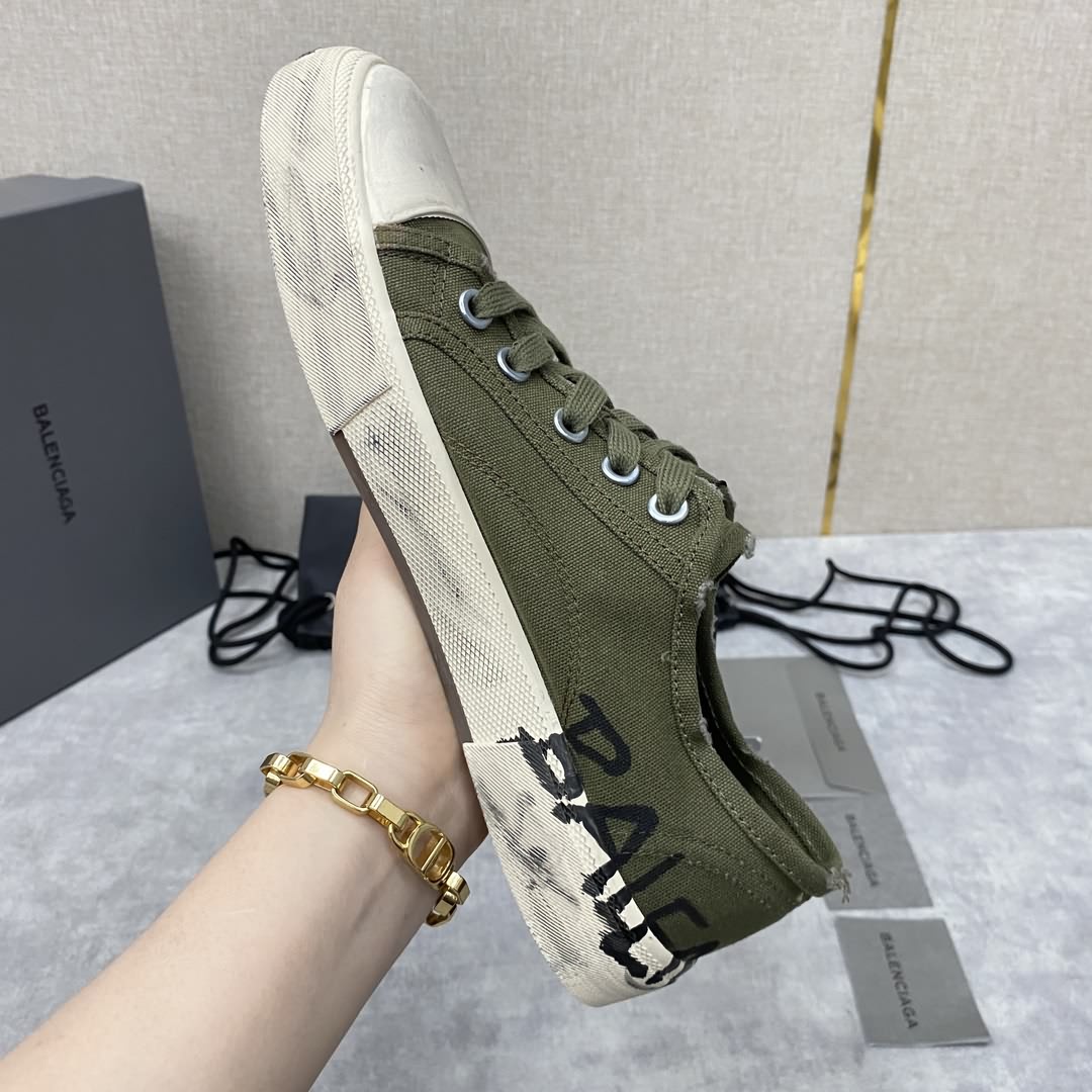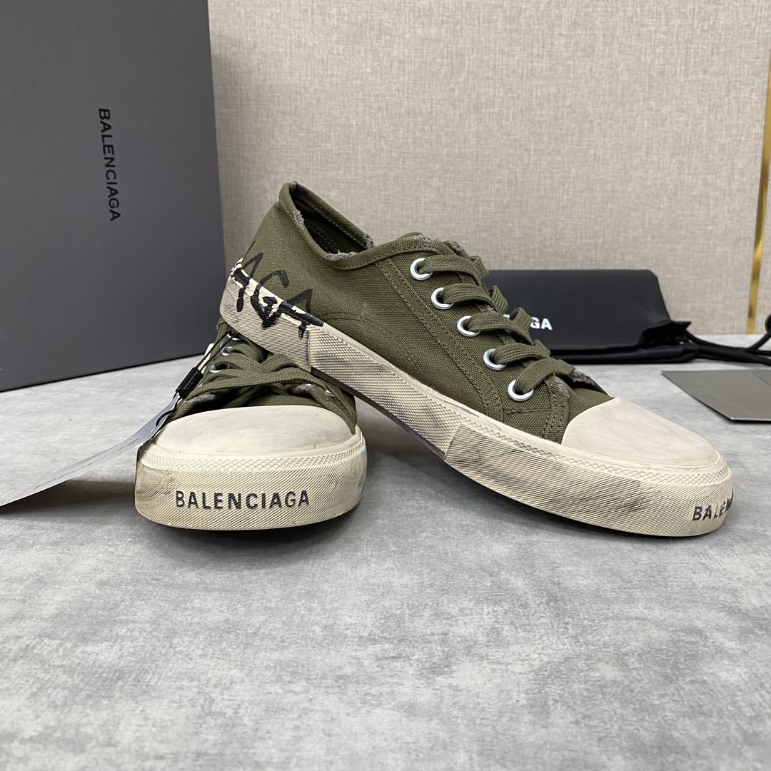 Balenciag* 巴黎-世家 Paris低幫運動鞋 新品帆布鞋上新 採用進口牛皮/原版定制帆布做舊效果塗鴉印花打造 正面logo印花、側面飾有logo印花、背面飾有logo印花、仿舊效果、硫化橡膠平底。品牌logo置於鞋底。至善前瞻:巴黎-世家 與 Good On You 攜手合作,這是一個獨立道德環保機構,旨在評定品牌的可持續表現。這款商品來自生態友好型品牌。 標準專櫃碼數:38~44# (45定做)