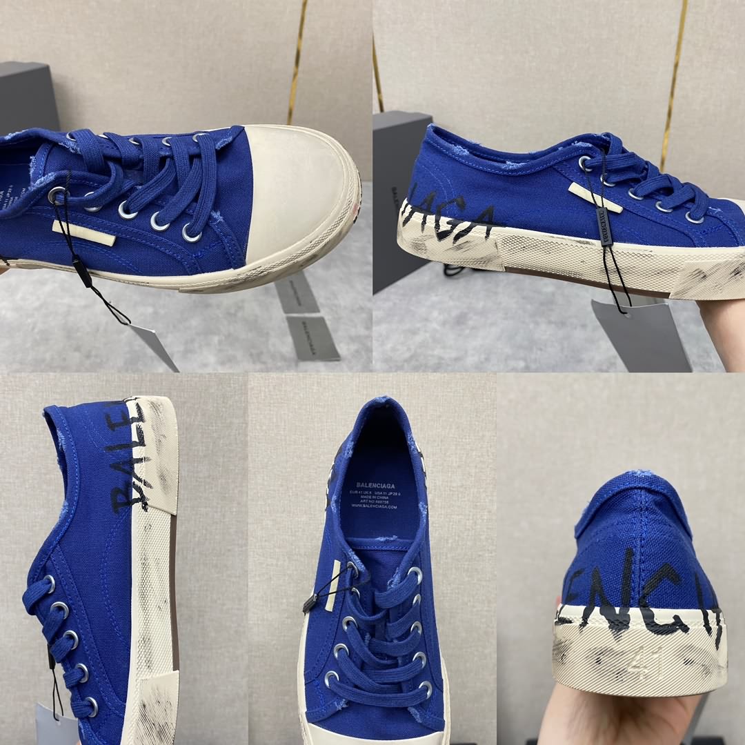 Balenciag* 巴黎-世家 Paris低幫運動鞋 新品帆布鞋上新 採用進口牛皮/原版定制帆布做舊效果塗鴉印花打造 正面logo印花、側面飾有logo印花、背面飾有logo印花、仿舊效果、硫化橡膠平底。品牌logo置於鞋底。至善前瞻:巴黎-世家 與 Good On You 攜手合作,這是一個獨立道德環保機構,旨在評定品牌的可持續表現。這款商品來自生態友好型品牌。 標準專櫃碼數:38~44# (45定做)