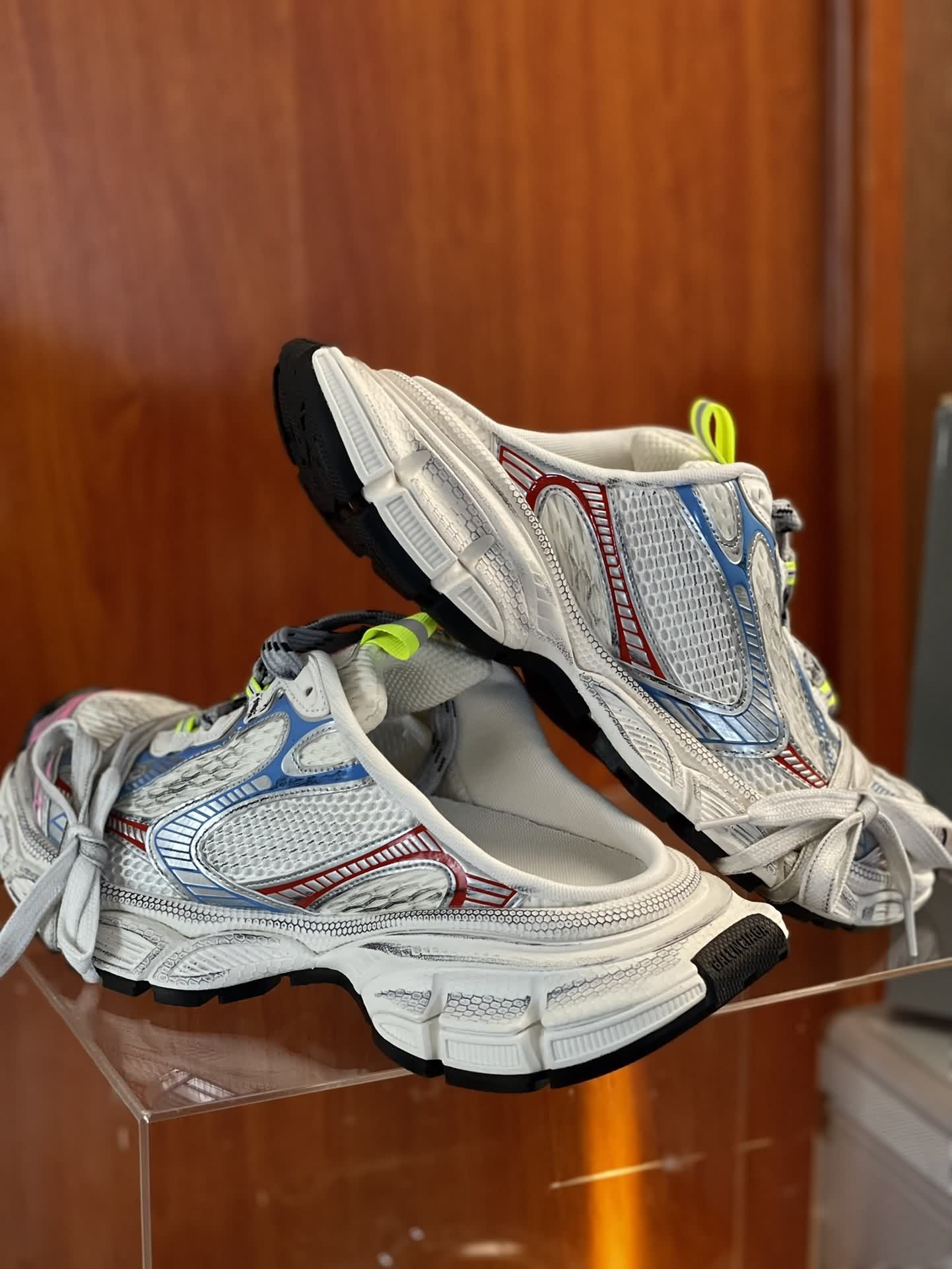 超酷!BALENCIAGA 3XL推全新拖鞋款 半鞋 /運動拖鞋/ BALENCIAGA 最新的運動鞋型款式 3xL,運動鞋款式新爆款的趨勢。 誇張突出的底盤、復古的網眼運動鞋面,以及鞋頭前綁式的鞋帶設計,不同的則是該款新鞋後跟部位被取消,成為了半包覆的拖鞋樣式。