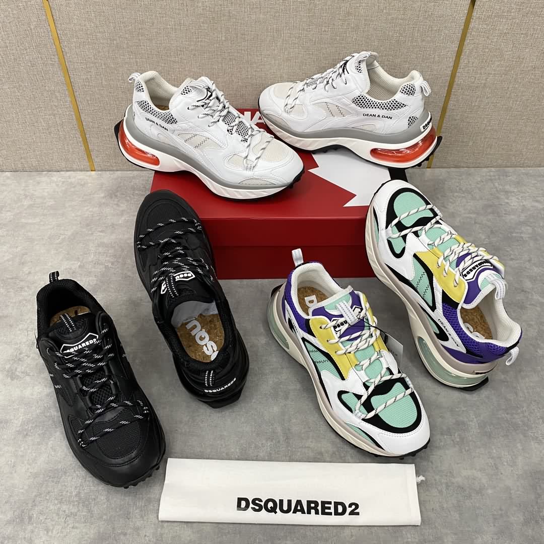 D2 新品官方同步發售 混合拼接氣墊運動鞋跑鞋 採用多種材質拼接撞色設計 鞋面採用多種進口材質拼接高科技織物 雙色圓鞋帶系帶設計 鞋舌飾立體浮雕壓印品牌logo標識 內裏高科技運動布 獨立一體回彈軟木墊腳 鞋舌與後跟置織帶提鞋環 拉邦套楦工藝。外側和底部都飾醒目的品牌logo標識 後跟也飾品牌logo Dsquared標識 原版組合撞色氣墊大底 鋸齒凹凸鉚釘與楓葉造型橡膠底片 輕盈厚底 一點也不厚重 增強輪廓的酷炫造型 視覺上拉長身高 配代購網吊牌 最新原版全套包裝發售 標準皮鞋碼數:39~44# (38、45定做)
