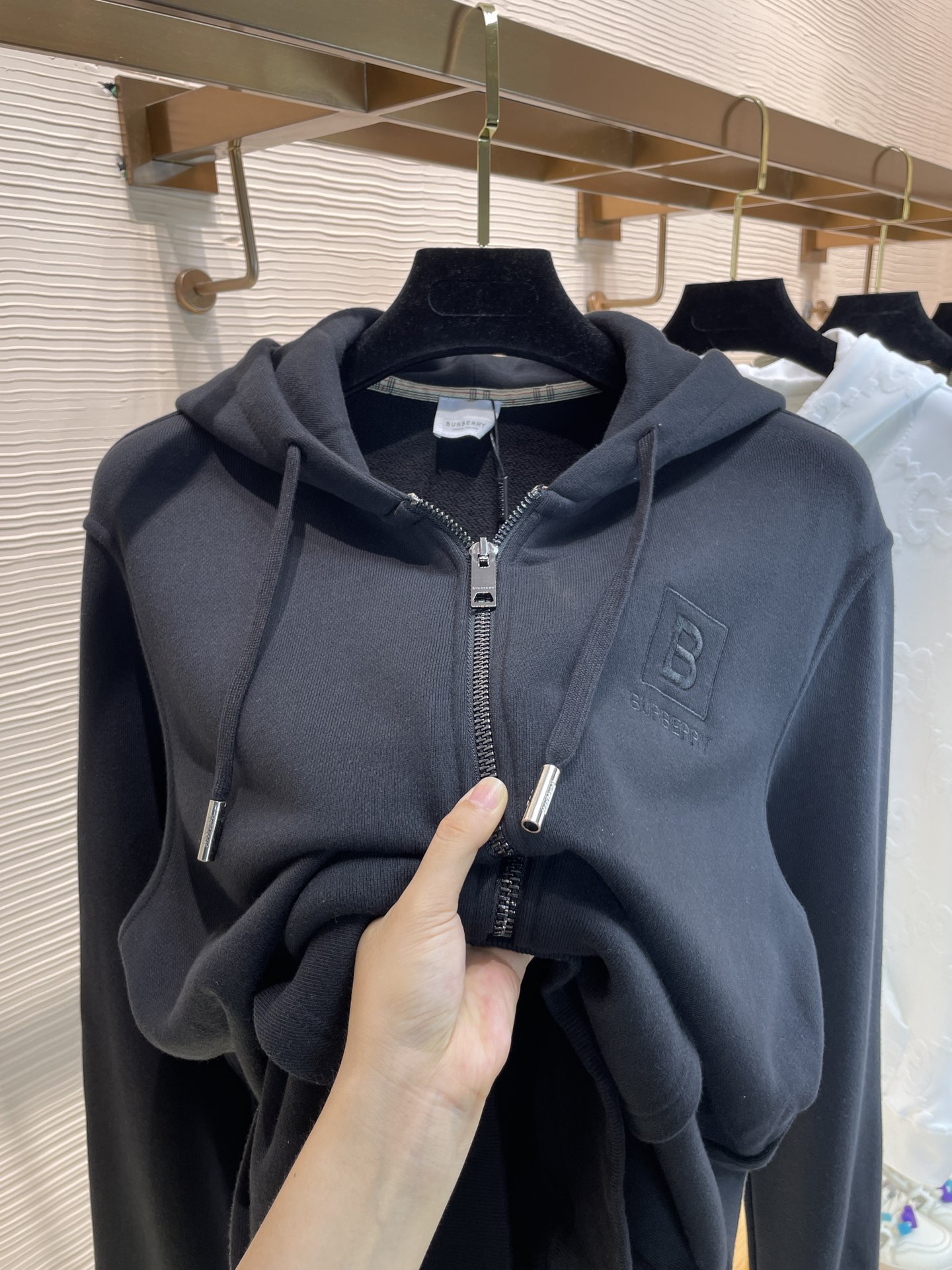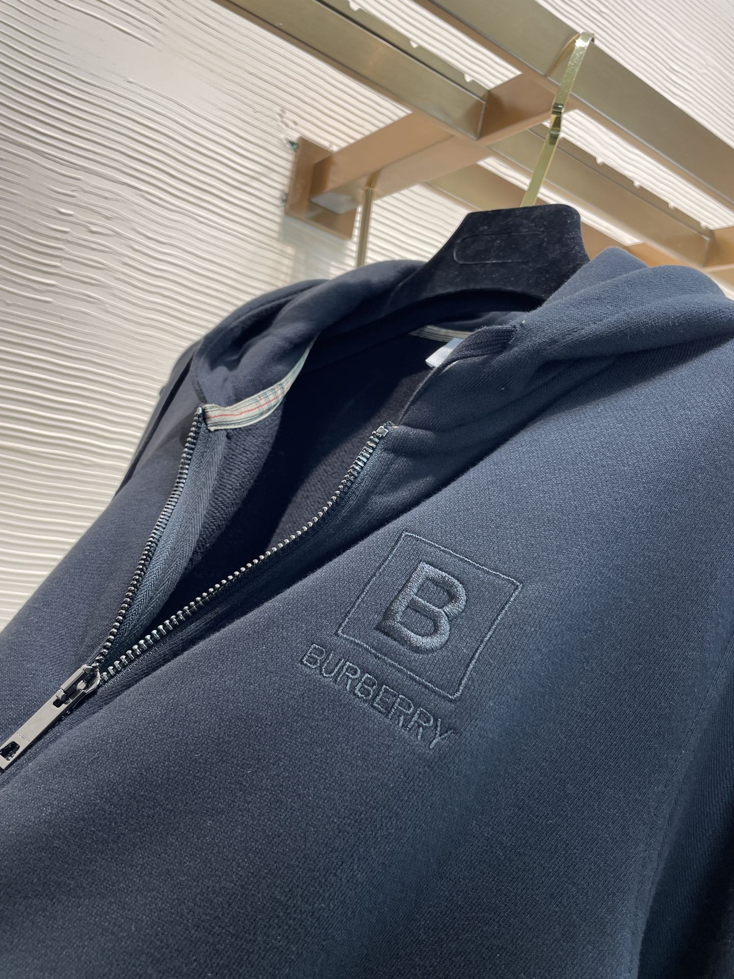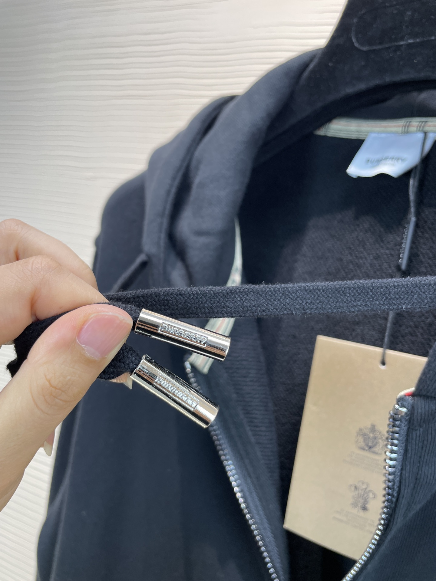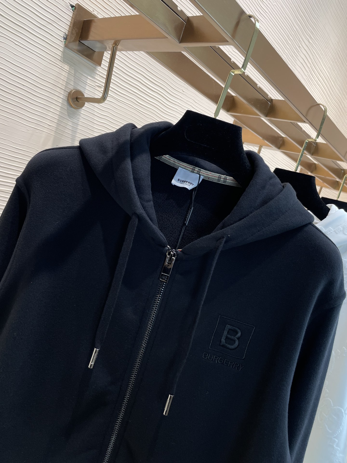 頂級品質 Burberr* 巴寶利 2023早秋新款 胸前精緻B家字母刺繡logo 經典格子格紋領口包邊 細節拉滿 拉鏈連帽外套 尺碼:S-XL 顏色:黑色