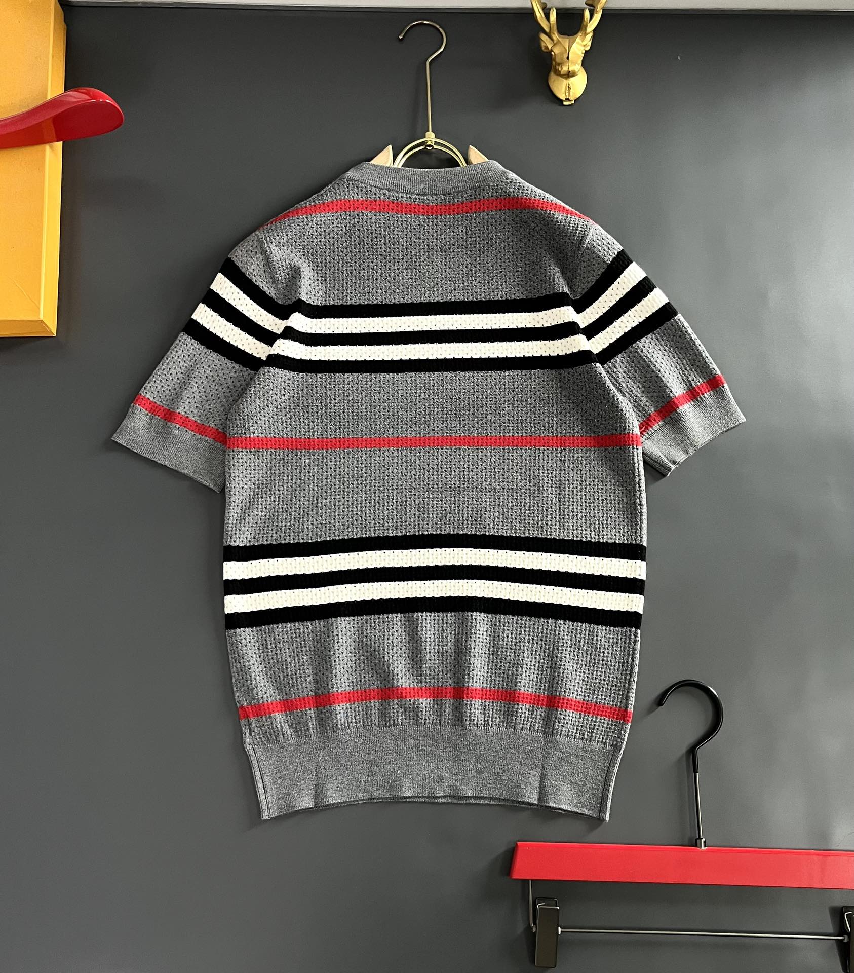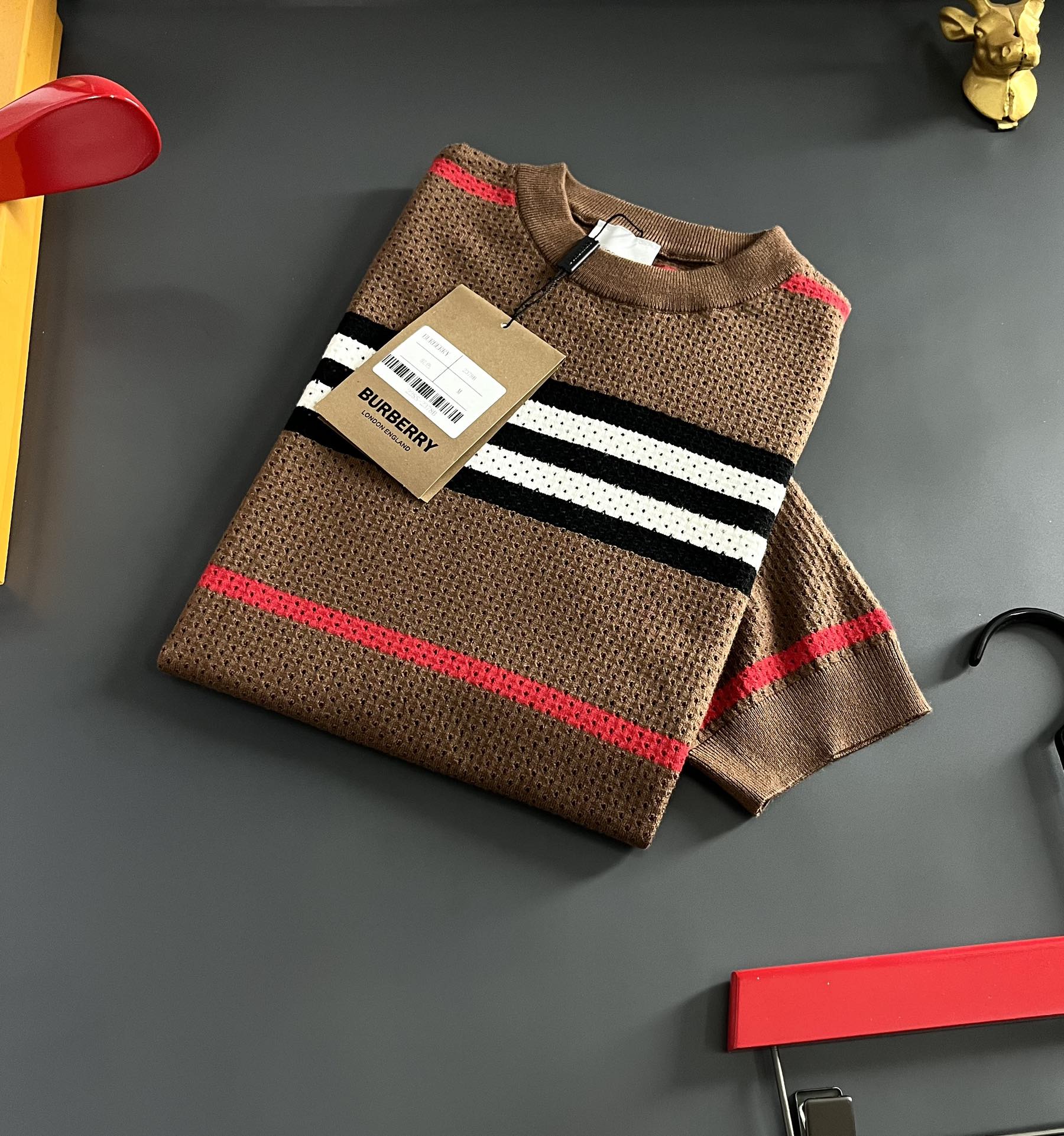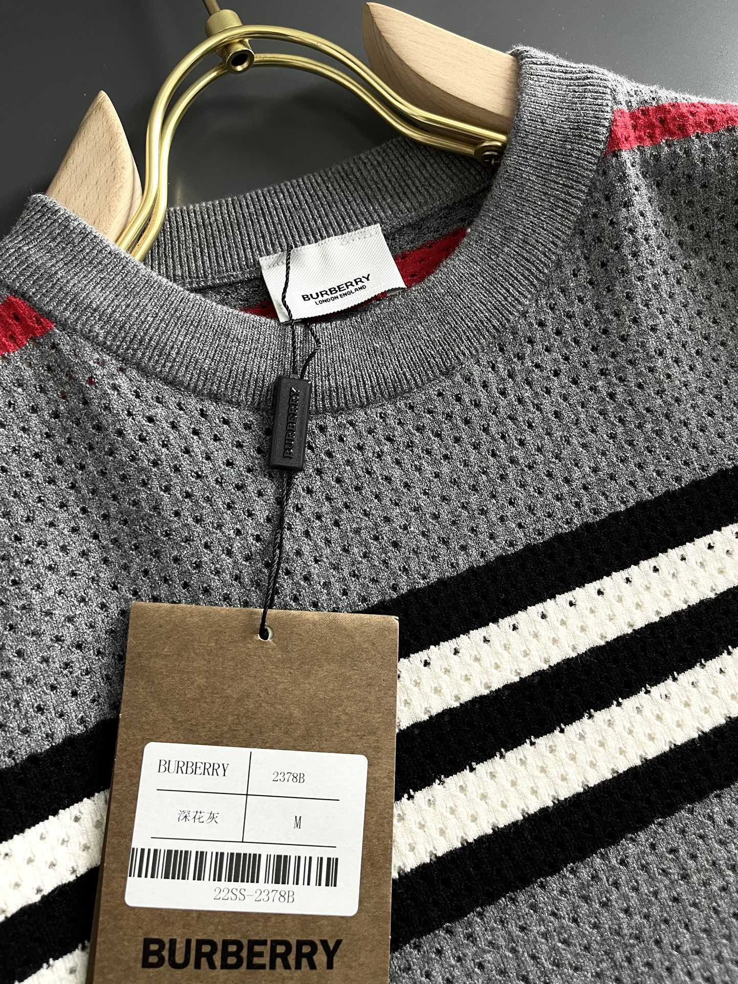 BBU*巴寶莉 秋冬新款款 高端重工羊毛拼色提花圓領短袖針織套頭衫*融合提花針織短袖可打底。特殊針織法。專櫃款時尚不失奢華 品質毋庸置疑 上身效果超贊,奢華官網同款 款式 咖啡色。 灰色。專櫃尺碼M-xxxl