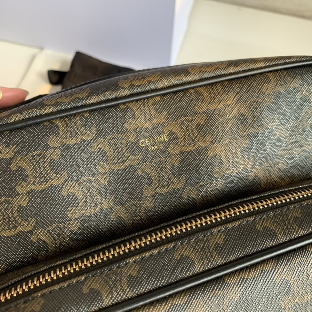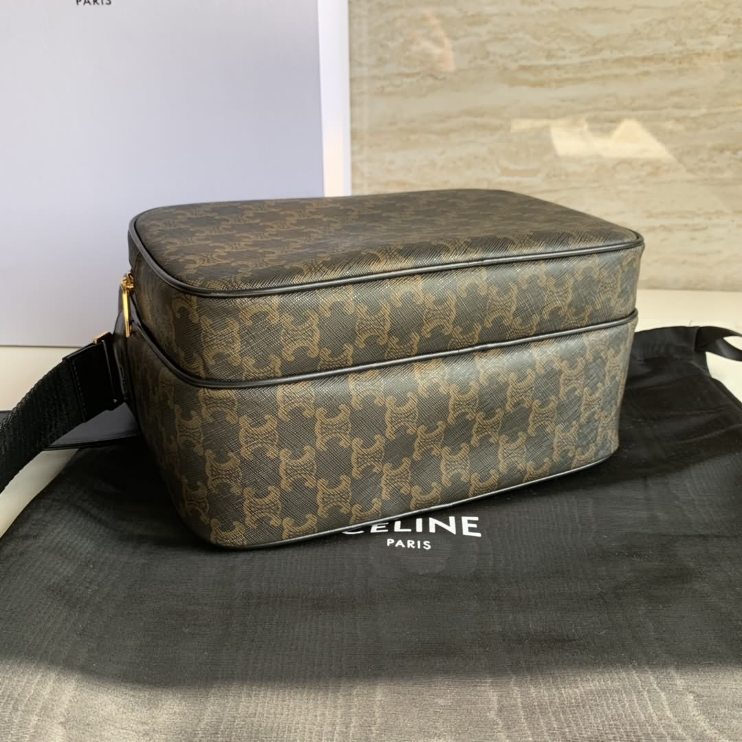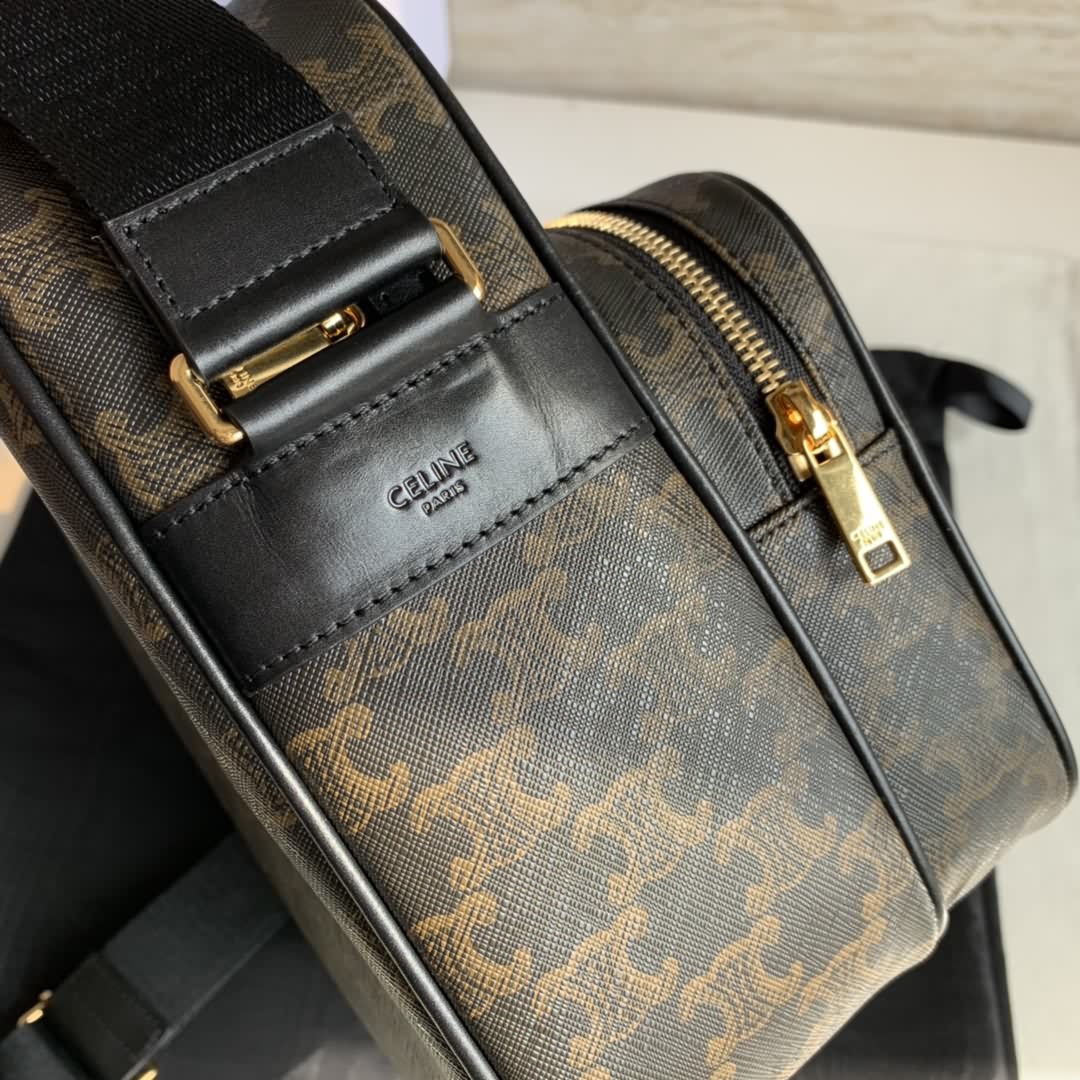 大號郵差包,配有TRIOMPHE帆布和小牛皮口袋及1條可調節尼龍肩帶。搭扣開合,設有1個拉鏈口袋。