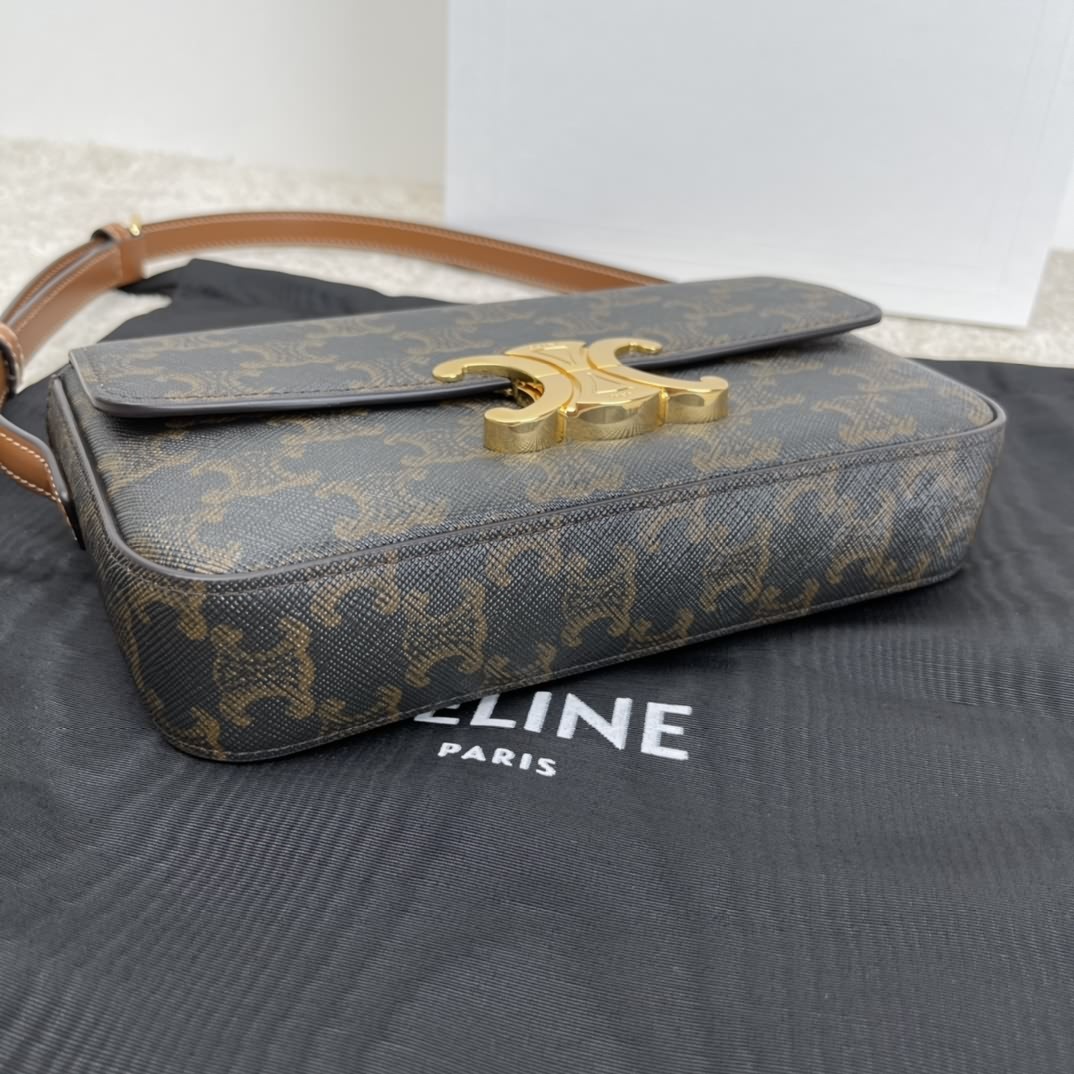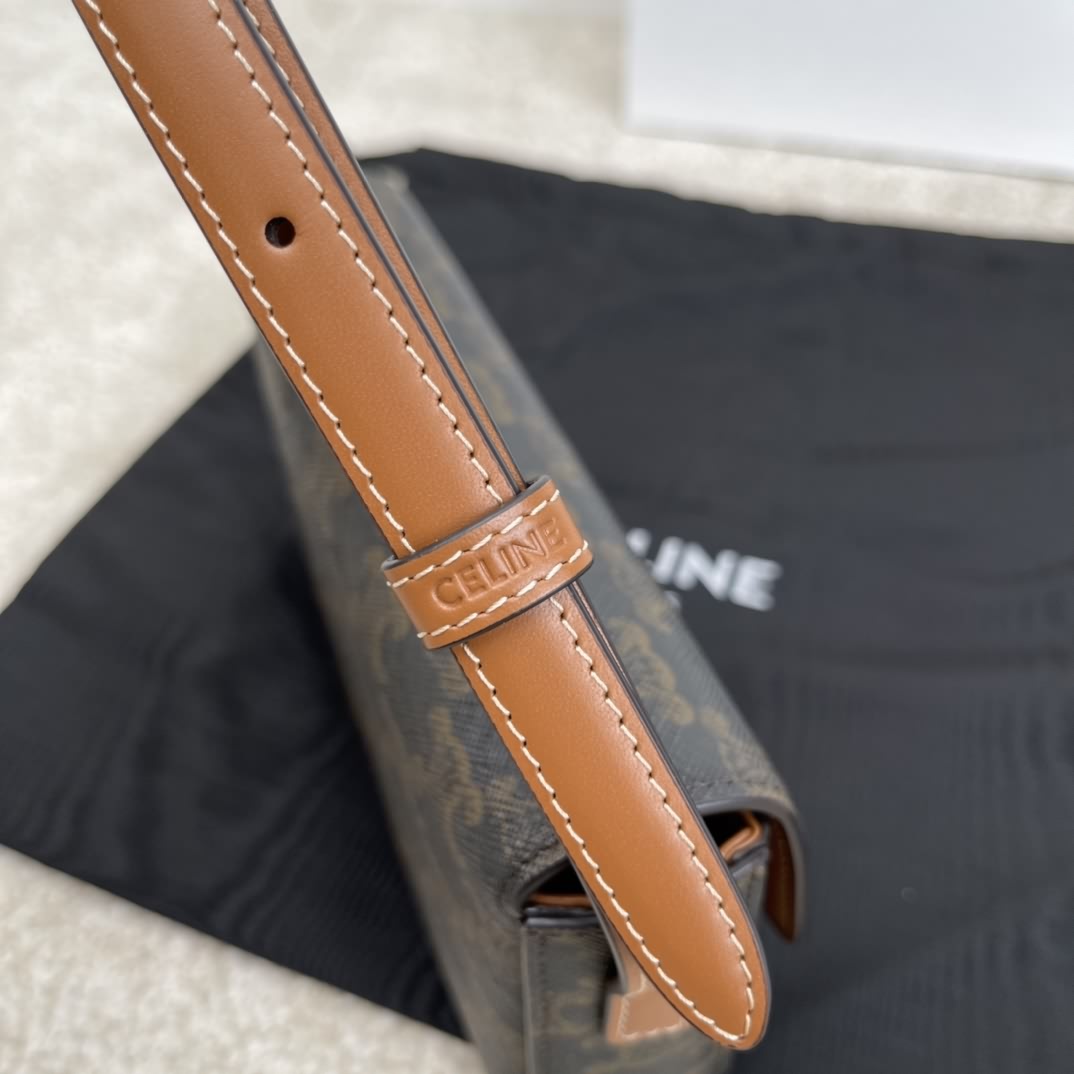 - TRIOMPHE標誌印花牛皮革肩背包黃褐色