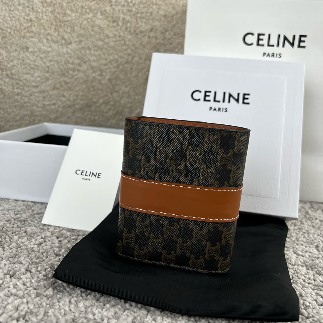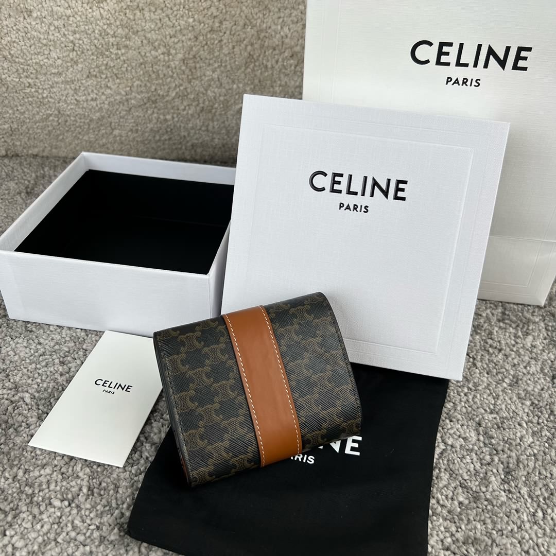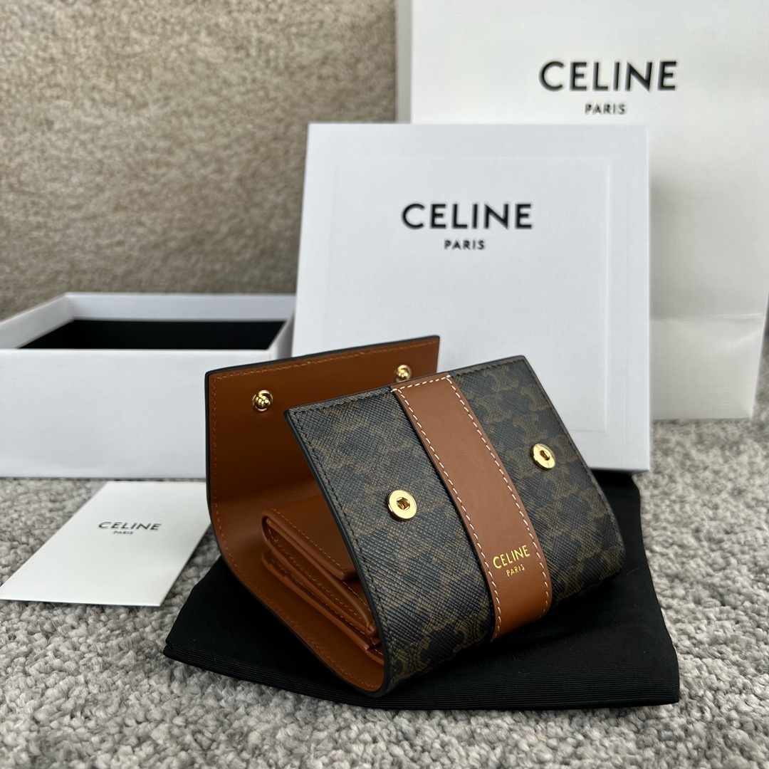 小號標誌印花羊皮革三折錢包,尺寸10.5x8.5 cm pvc革/ 羊皮革,襯裏牛皮革,按扣翻蓋開合影,5 個信用卡槽,一個大號紙幣袋,兩個扁平口袋,一個按扣折疊零錢袋,編碼10D572