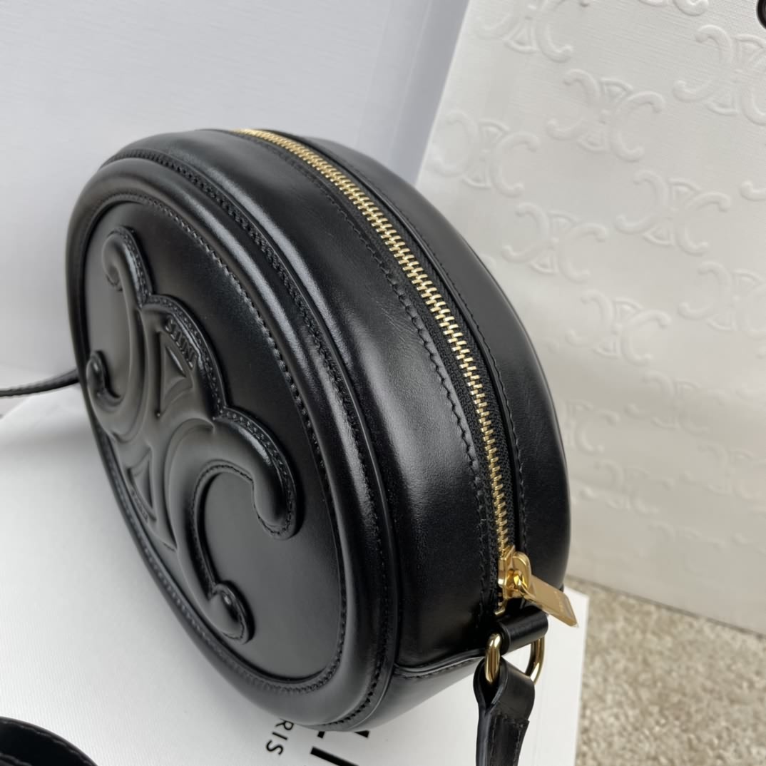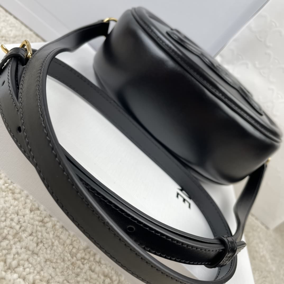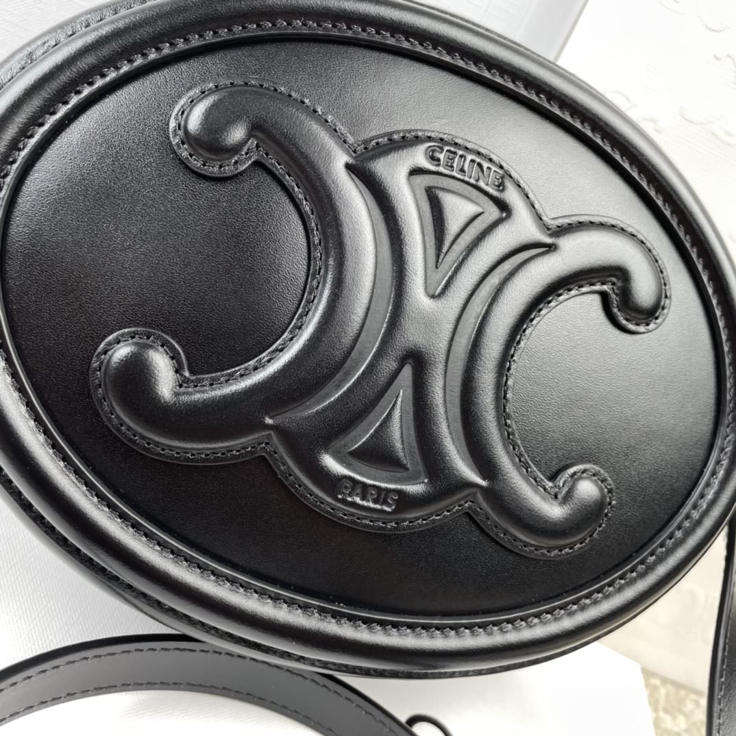 CUIR TRIOMPHE 光滑牛皮革橢圓形手袋,尺寸 20 x15x6 釐米, 本款手袋可以裝下plue 等較大 的智能手機,可斜挎肩背,斜挎長度可調節,52 釐米,編碼 198603