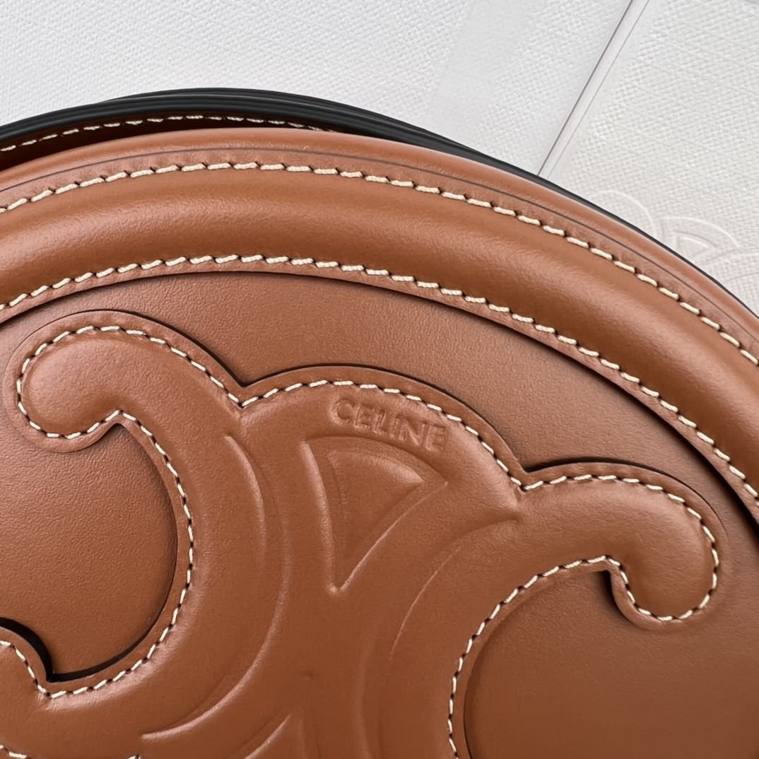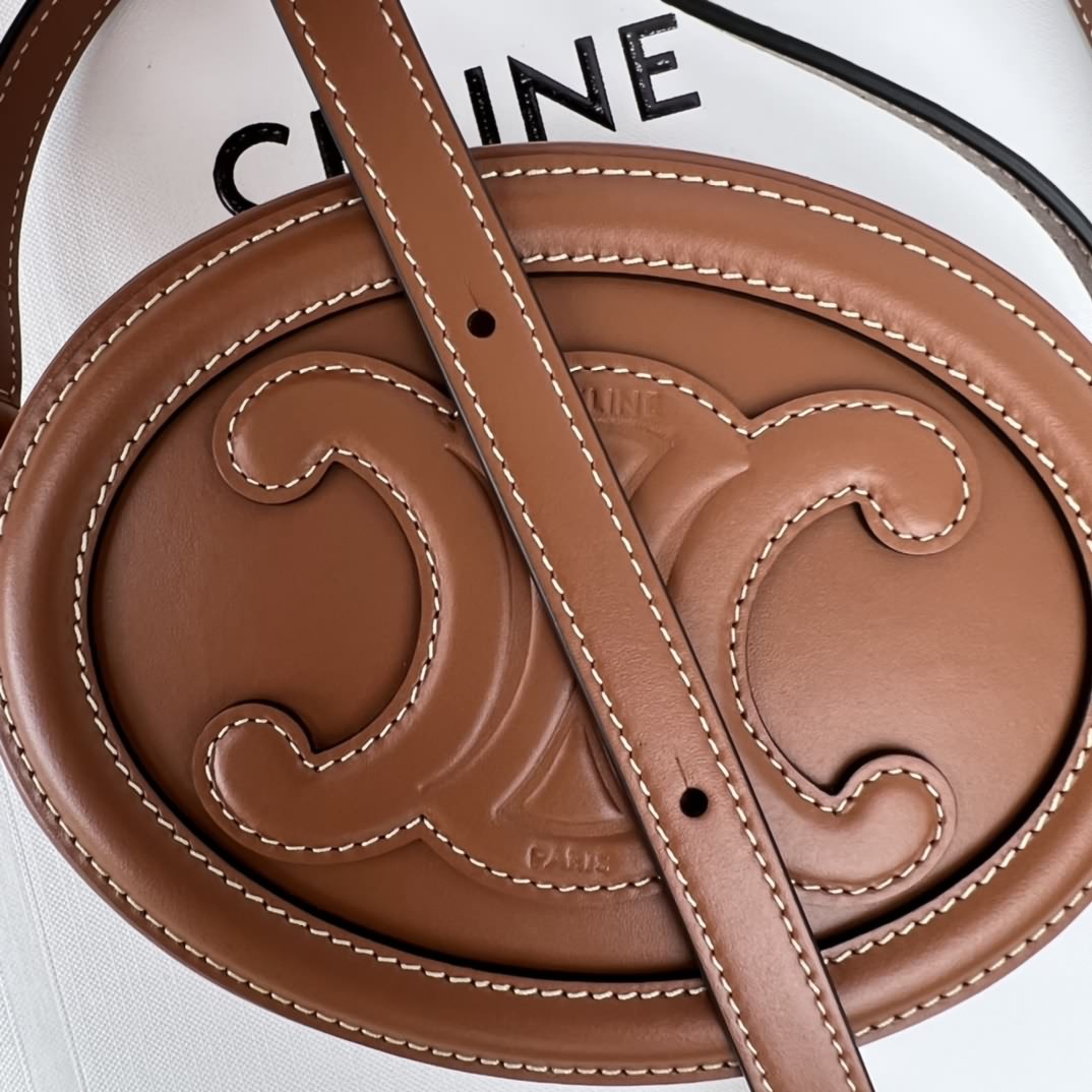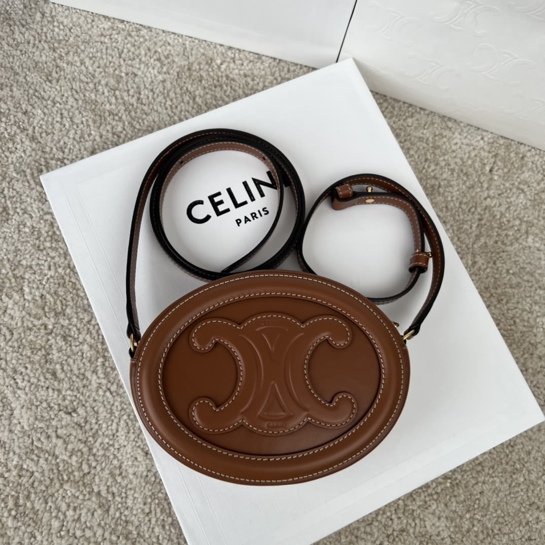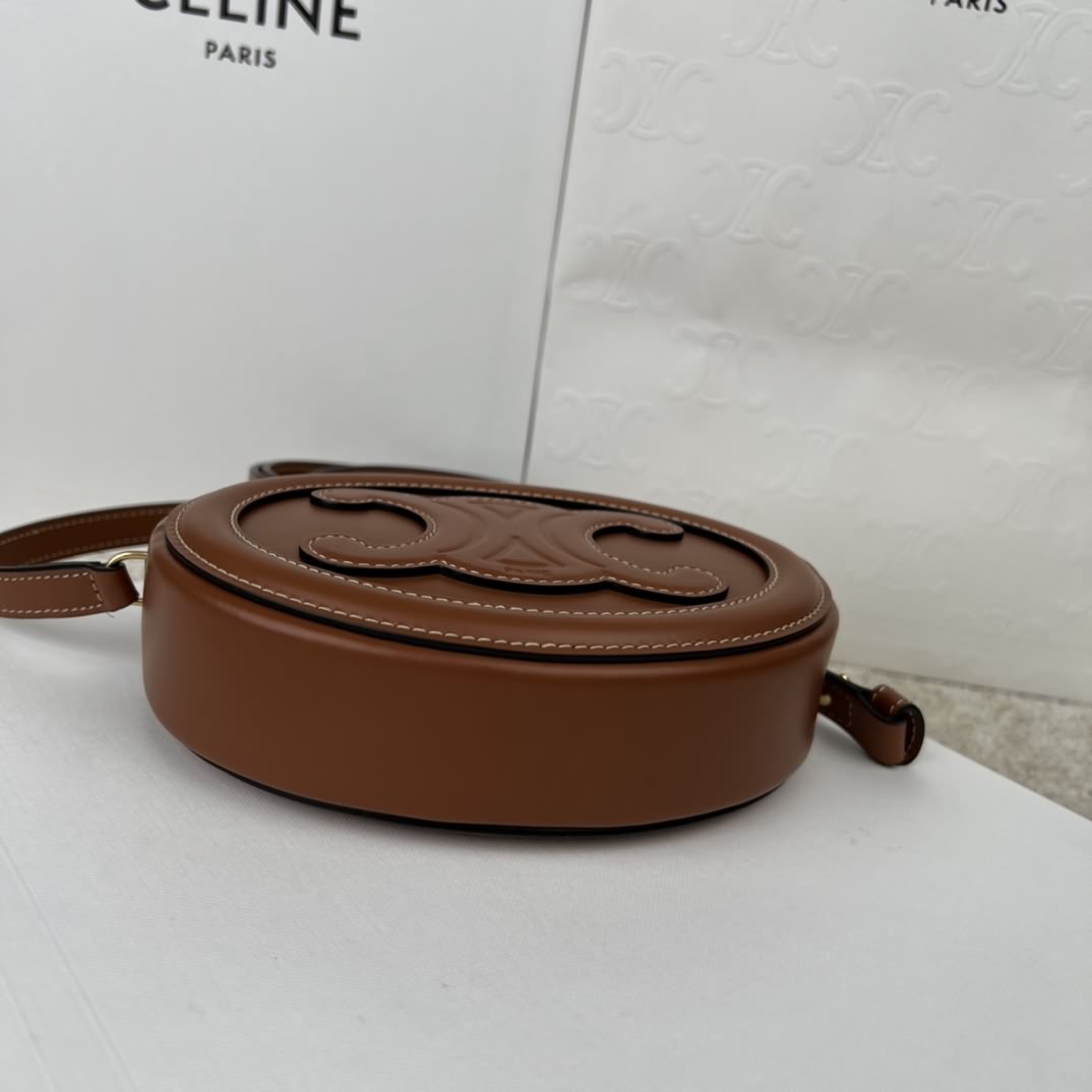 TRIOMPHE 光滑牛皮革斜挎橢圓形 月餅包,尺寸16x12.5x4 cm,本款型無法裝下偏大的智能機型,牛皮革,襯裏,牛皮革/織物,金色金屬件,斜挎,拉鏈封閉,編碼:101703