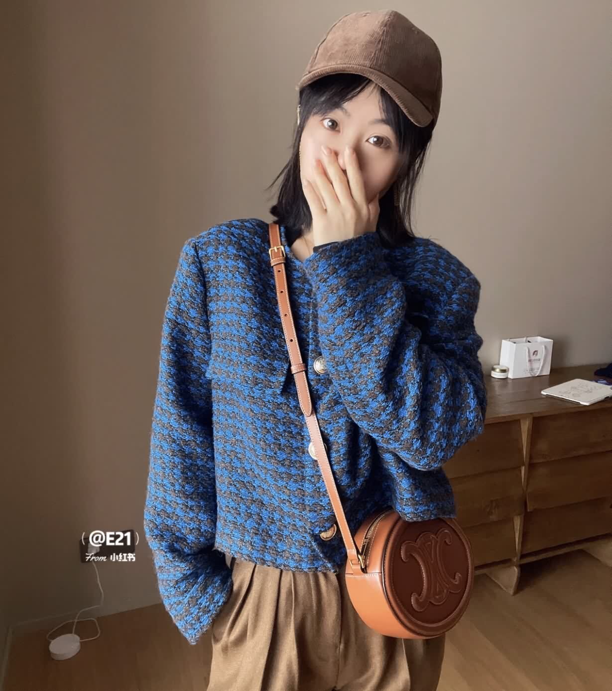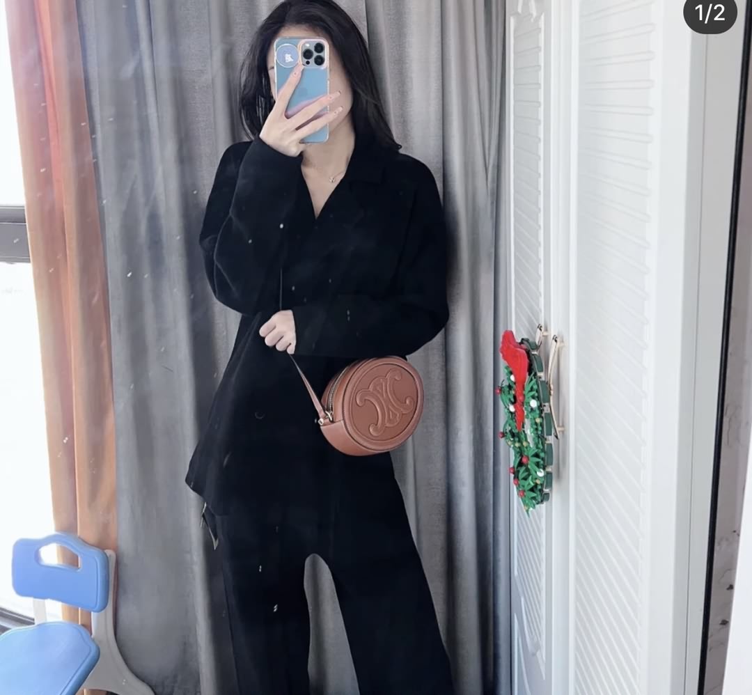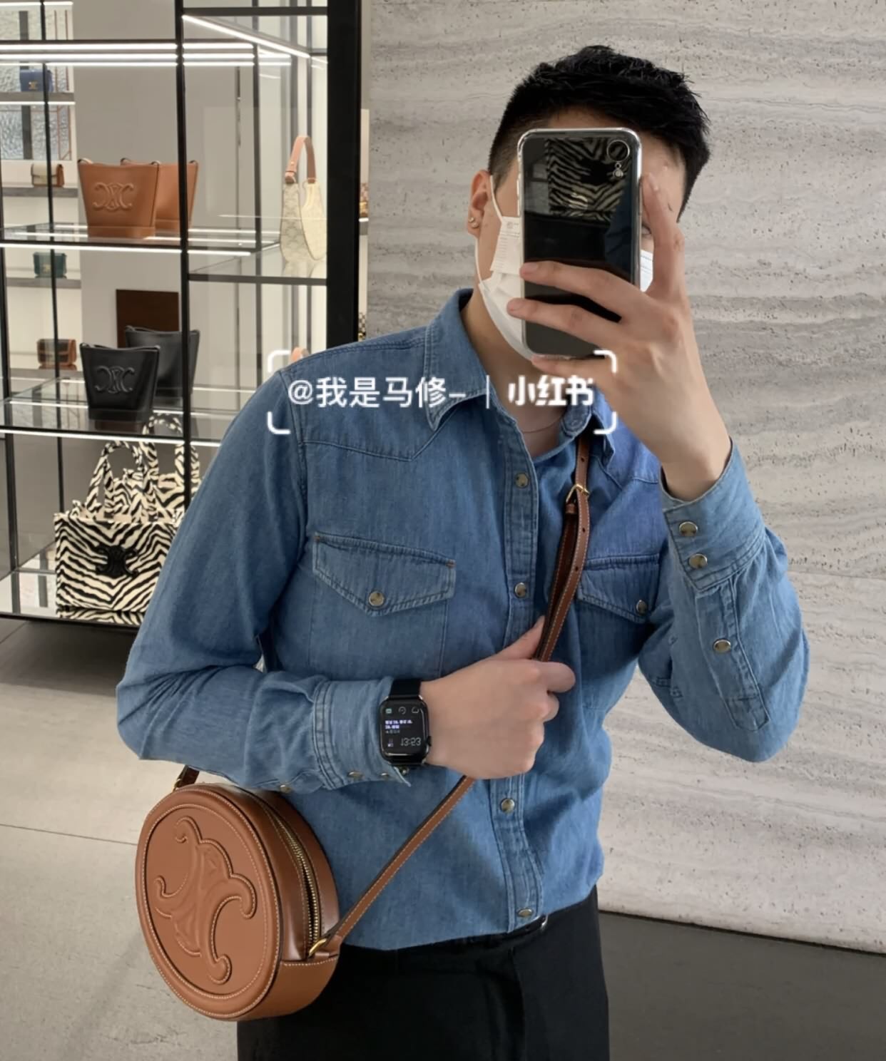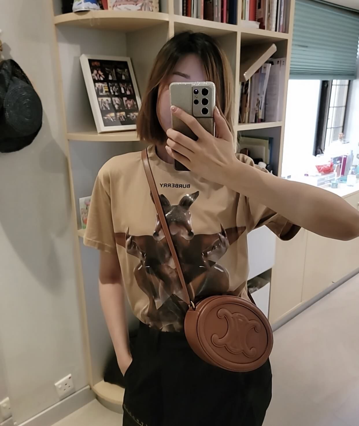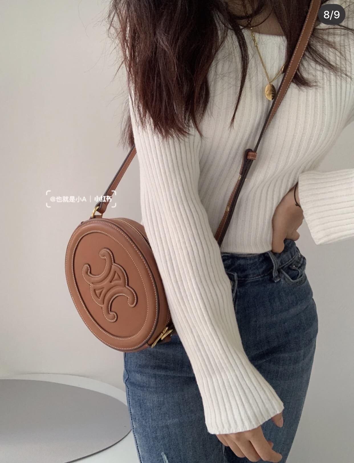 TRIOMPHE 光滑牛皮革斜挎橢圓形 月餅包
