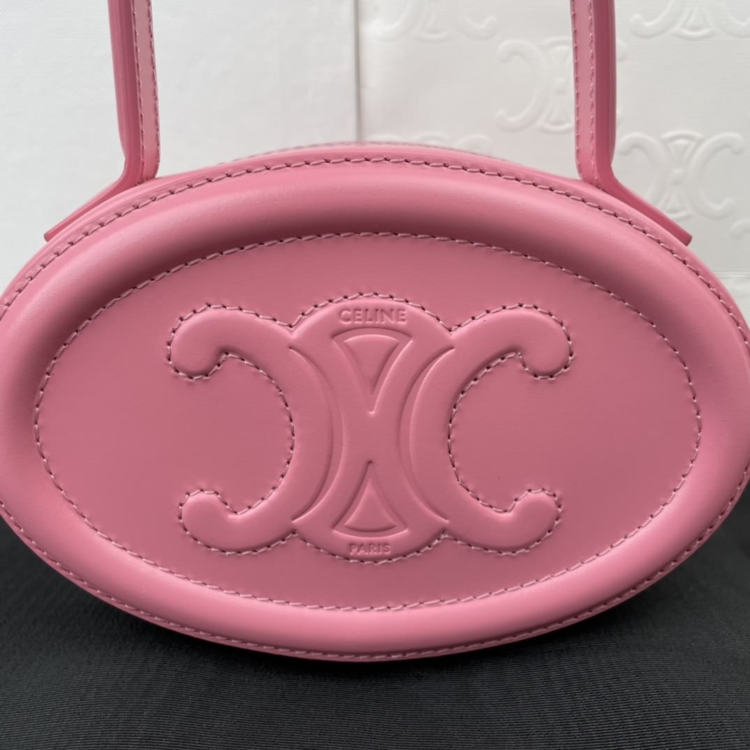 CUIR TRIOMPHE 光滑牛皮革橢圓形化妝包,尺寸14.5 x10x5 釐米,本款型無法裝下較大智能手機,手提,手柄長度(8釐米) 編號:198613