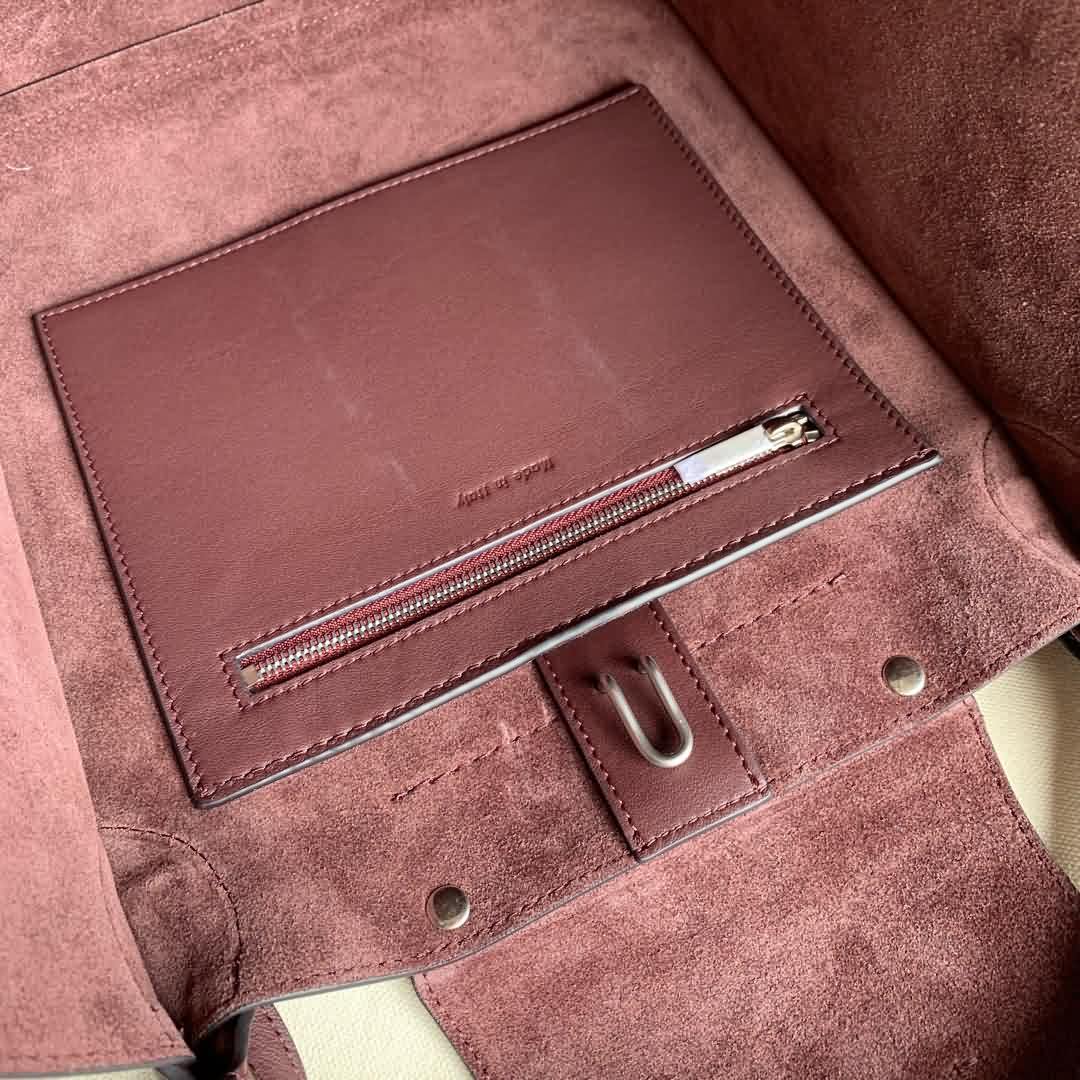 Big bag 中號 酒紅色平紋小牛皮,手感細膩還倍兒柔軟,big bag名字來得簡單、乾脆,傳承了瑟琳家的深諳極簡風,搭配大衣、毛衣(見明星圖),盡顯女性幹練本色,馬伊琍同款,尺寸24*22*26cm