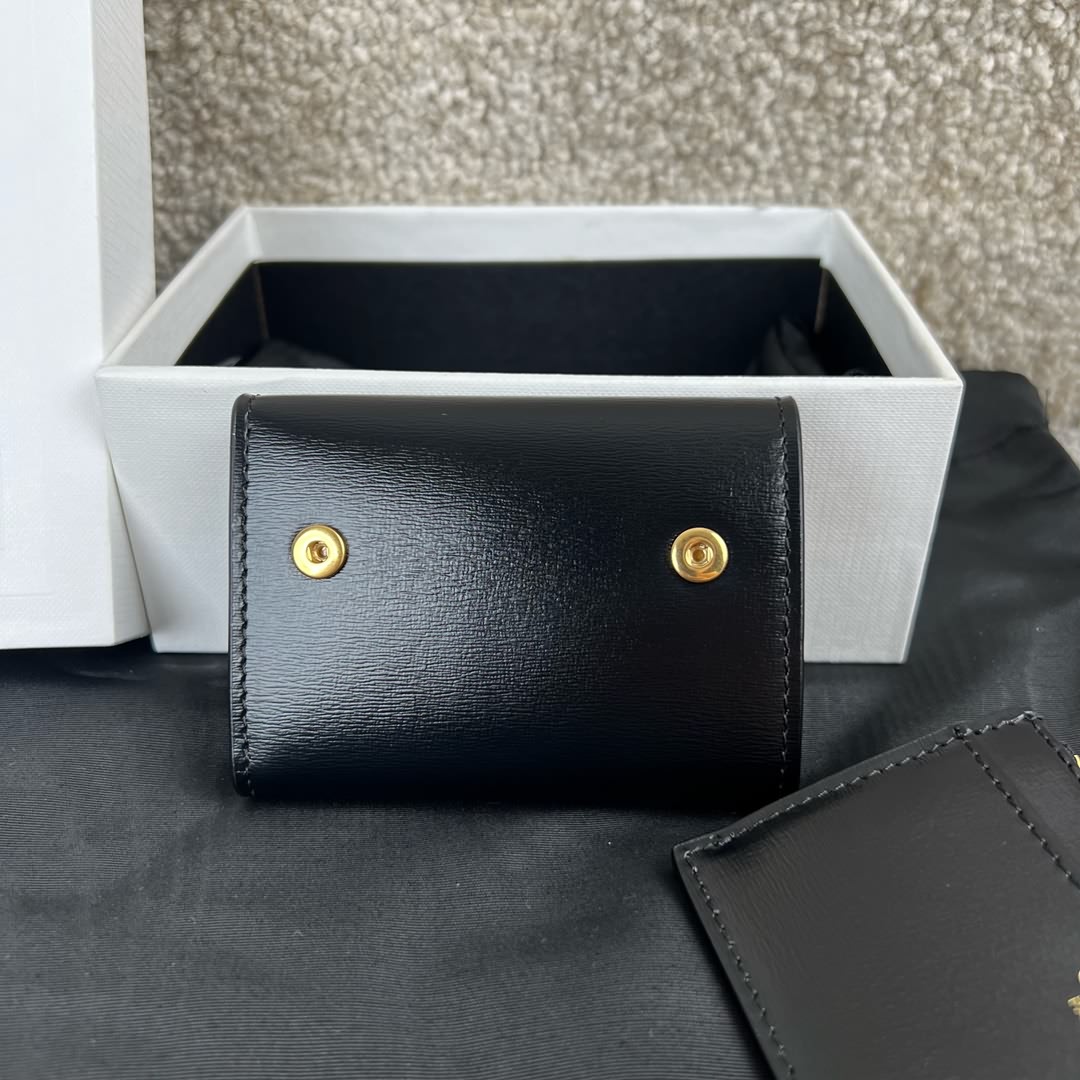 TRIOMPHE 皮革短款錢包 ,尺寸9.5x7.5x3 ,牛皮,襯裏牛皮革/ 織物,金色金屬件,TRIOMPHE 金屬質感按扣,4 個信用卡卡槽 一個紙幣袋,一個可拆卸拉鏈卡包,配按扣,編碼 101653