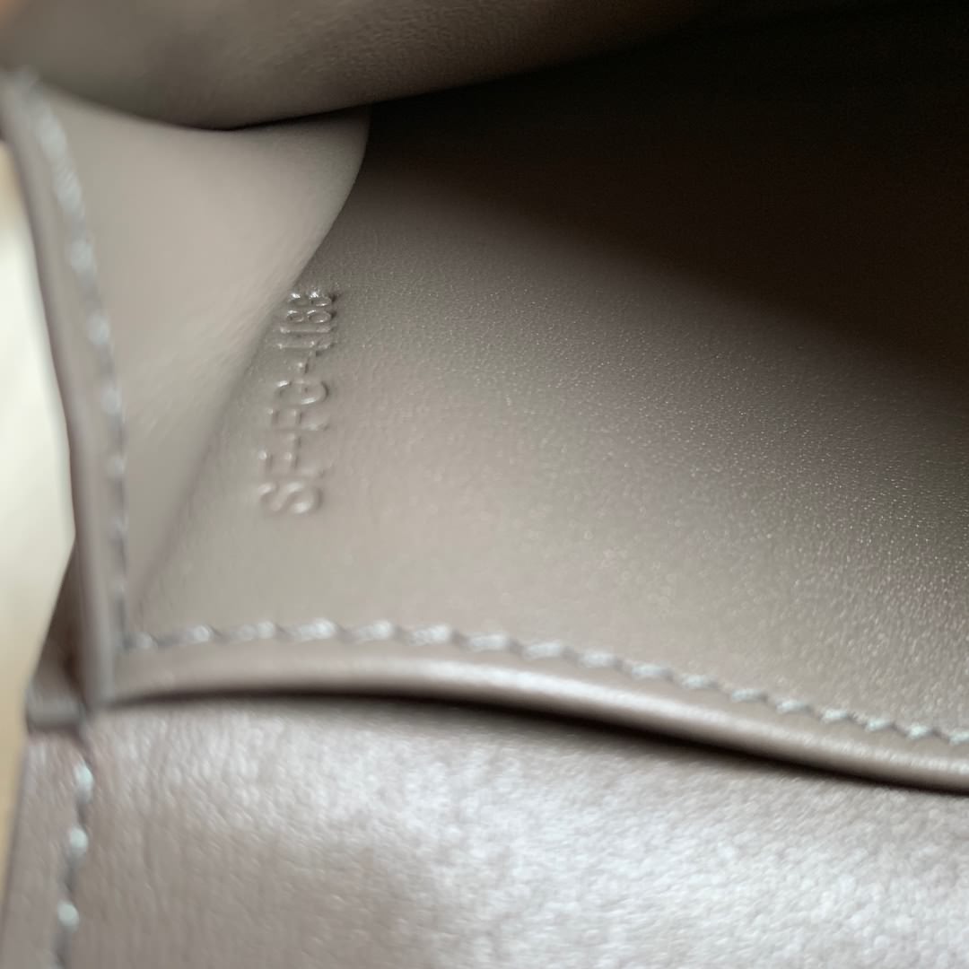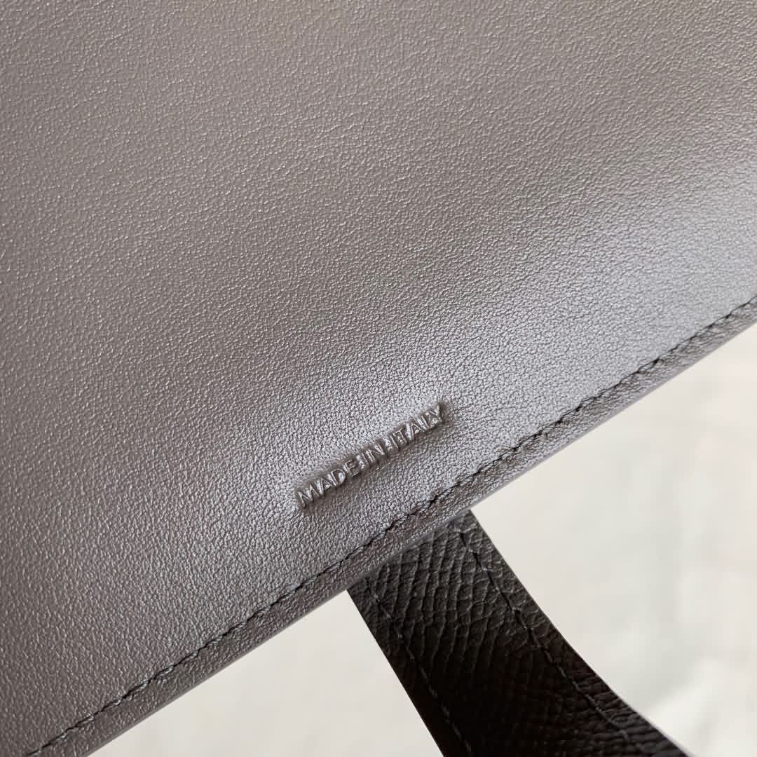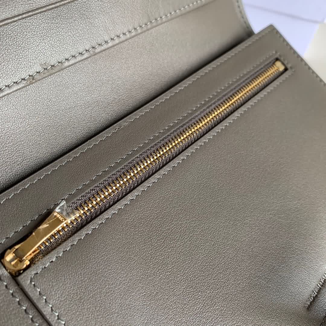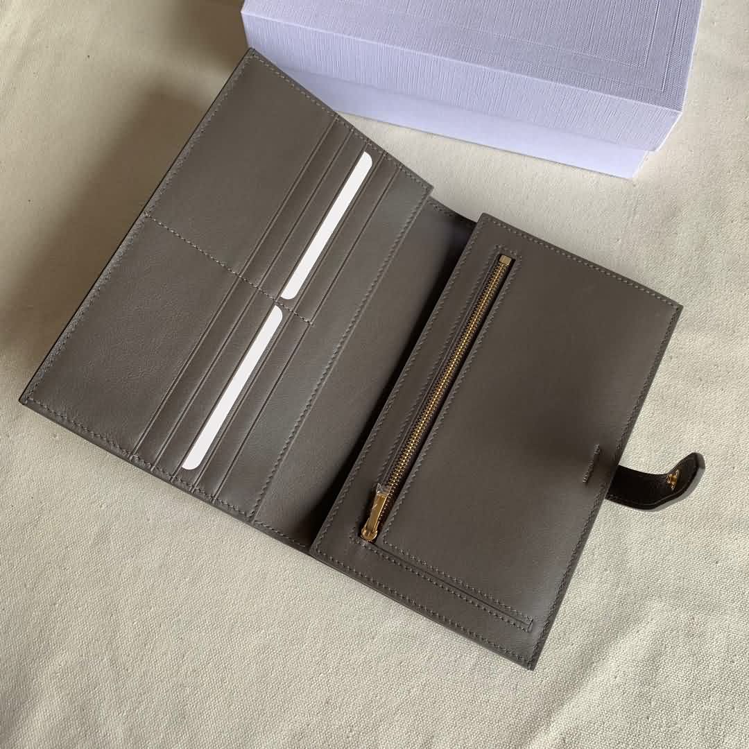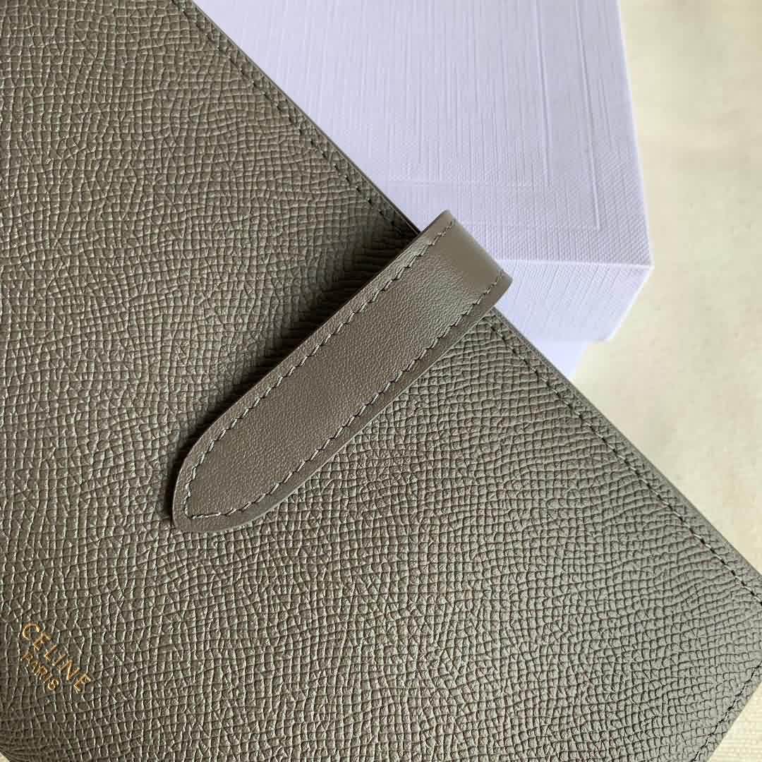 粒面小牛皮錢包,附按扣開合的扣帶及角撐隔層。