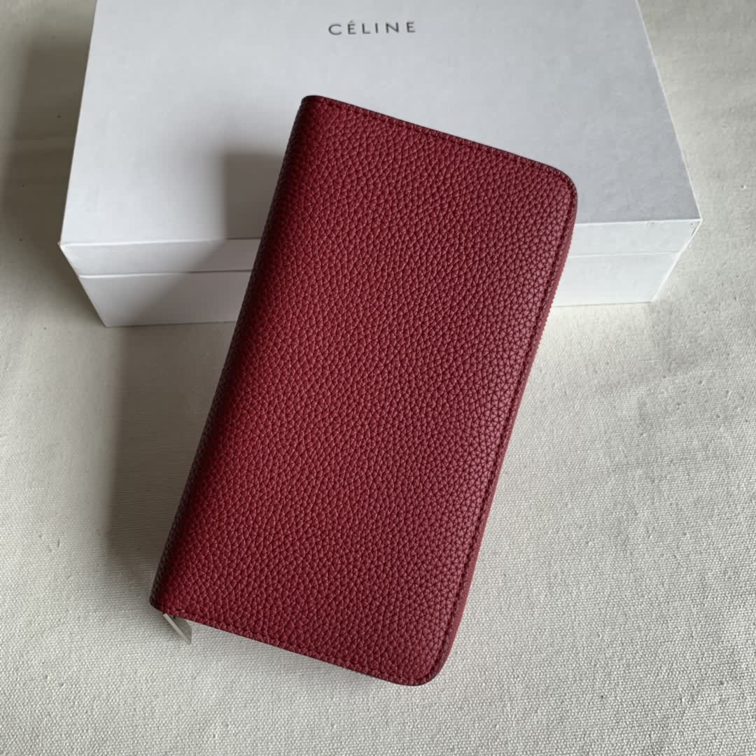 19釐米 紫紅荔枝紋拉鏈錢包