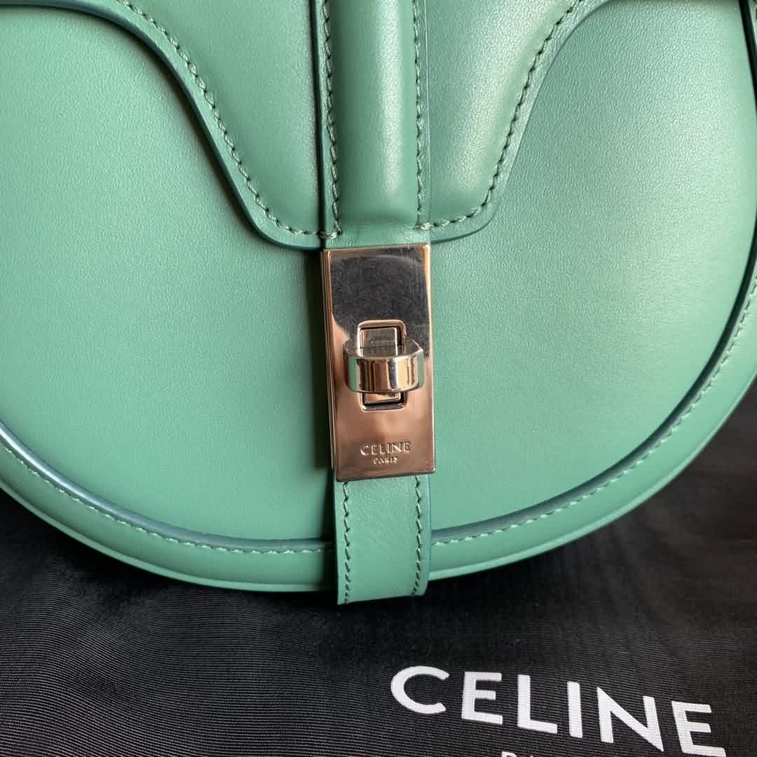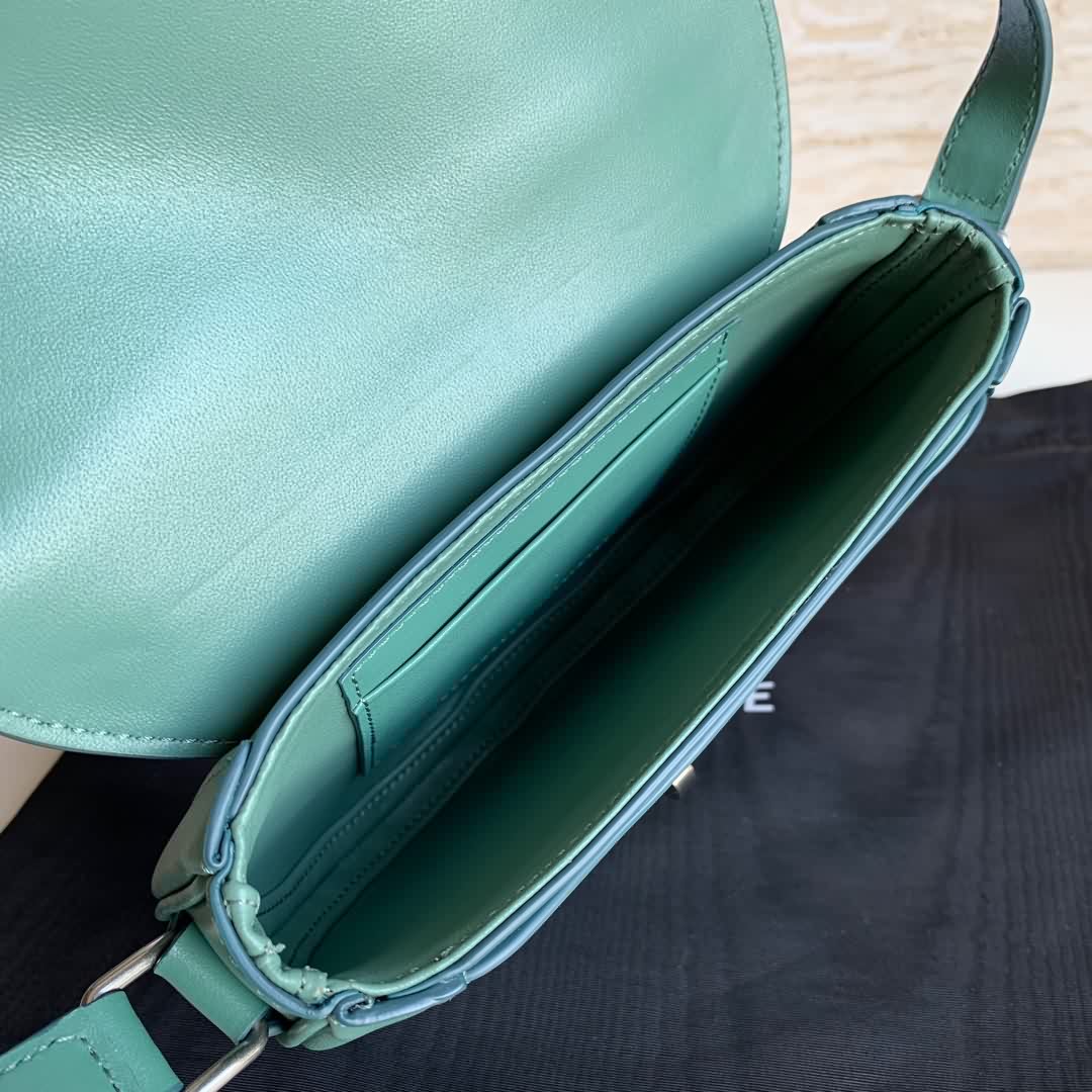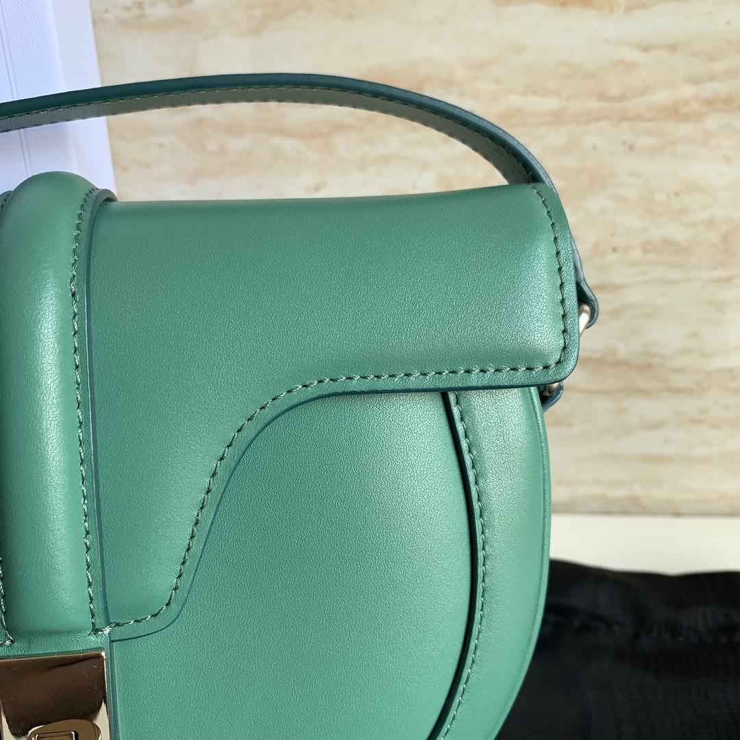 這款BESACE 16 小號手袋採用緞面小牛皮製成,配有一條可調節的斜挎肩帶和一個可旋轉搭扣,外設一個平口袋。