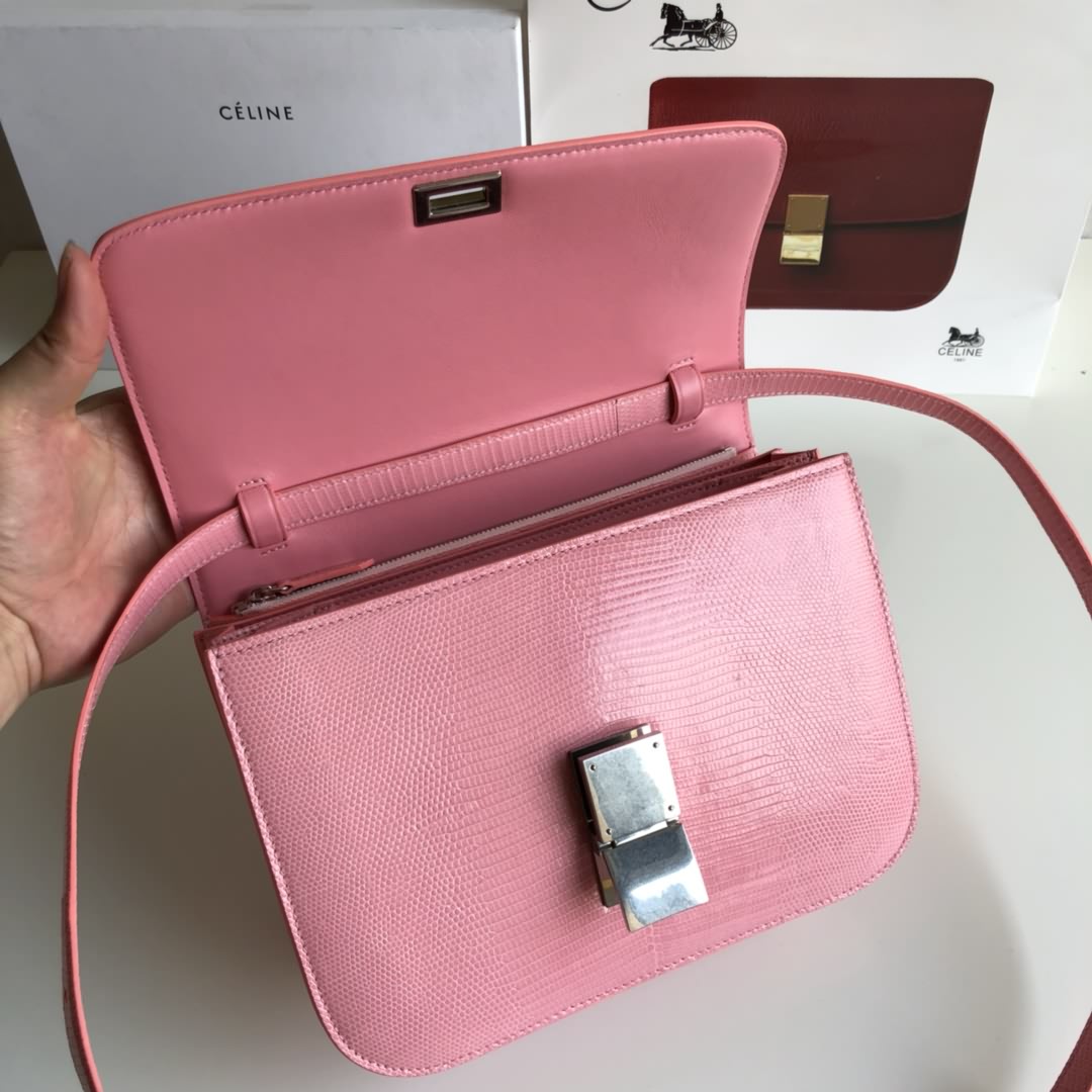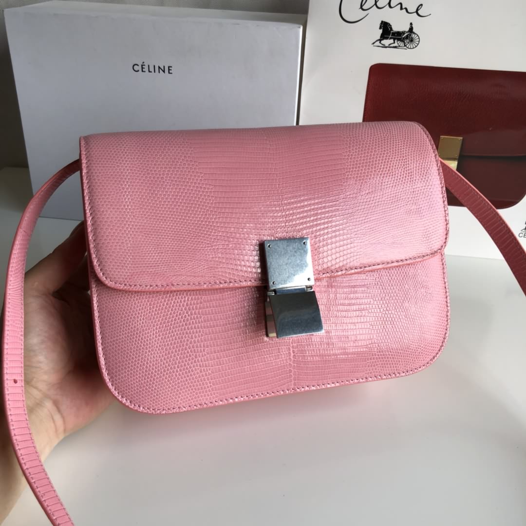 全新升級classic box 粉紅色蜥蜴皮銀扣