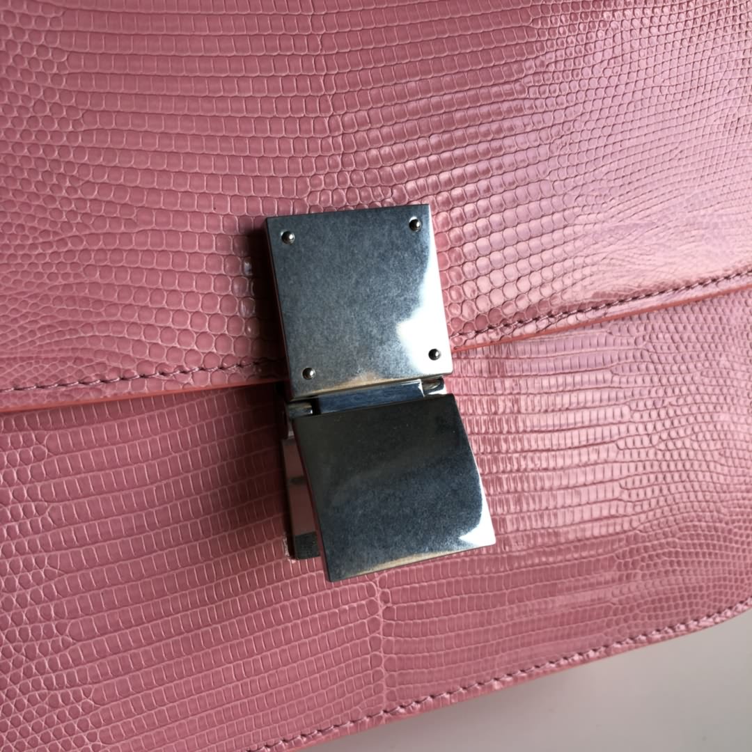 全新升級classic box 粉紅色蜥蜴皮銀扣 搭配羊皮內裏 完美復古包 平整的水油邊 精緻媲美專櫃。24cm