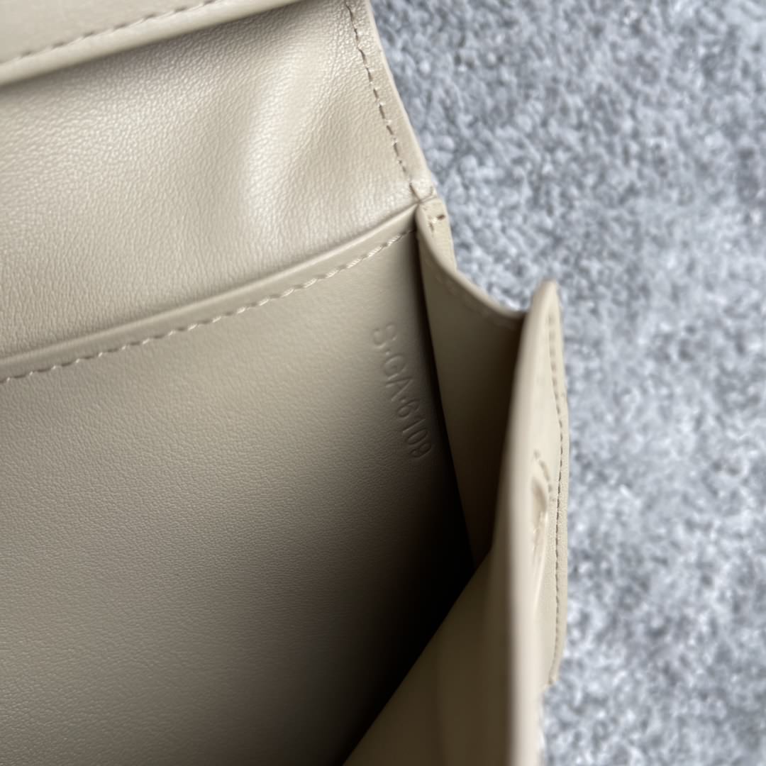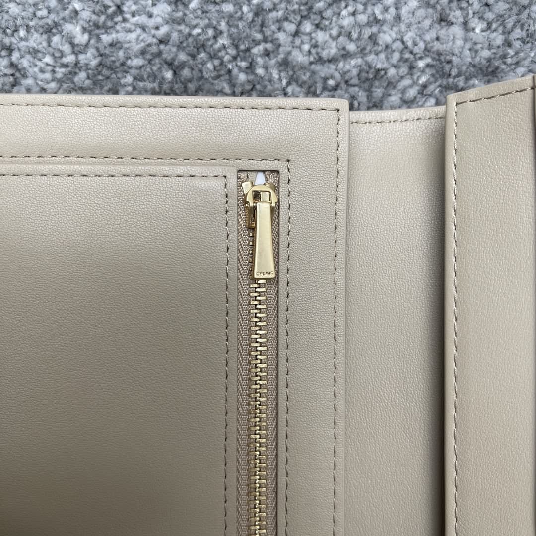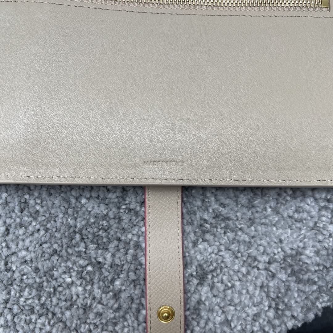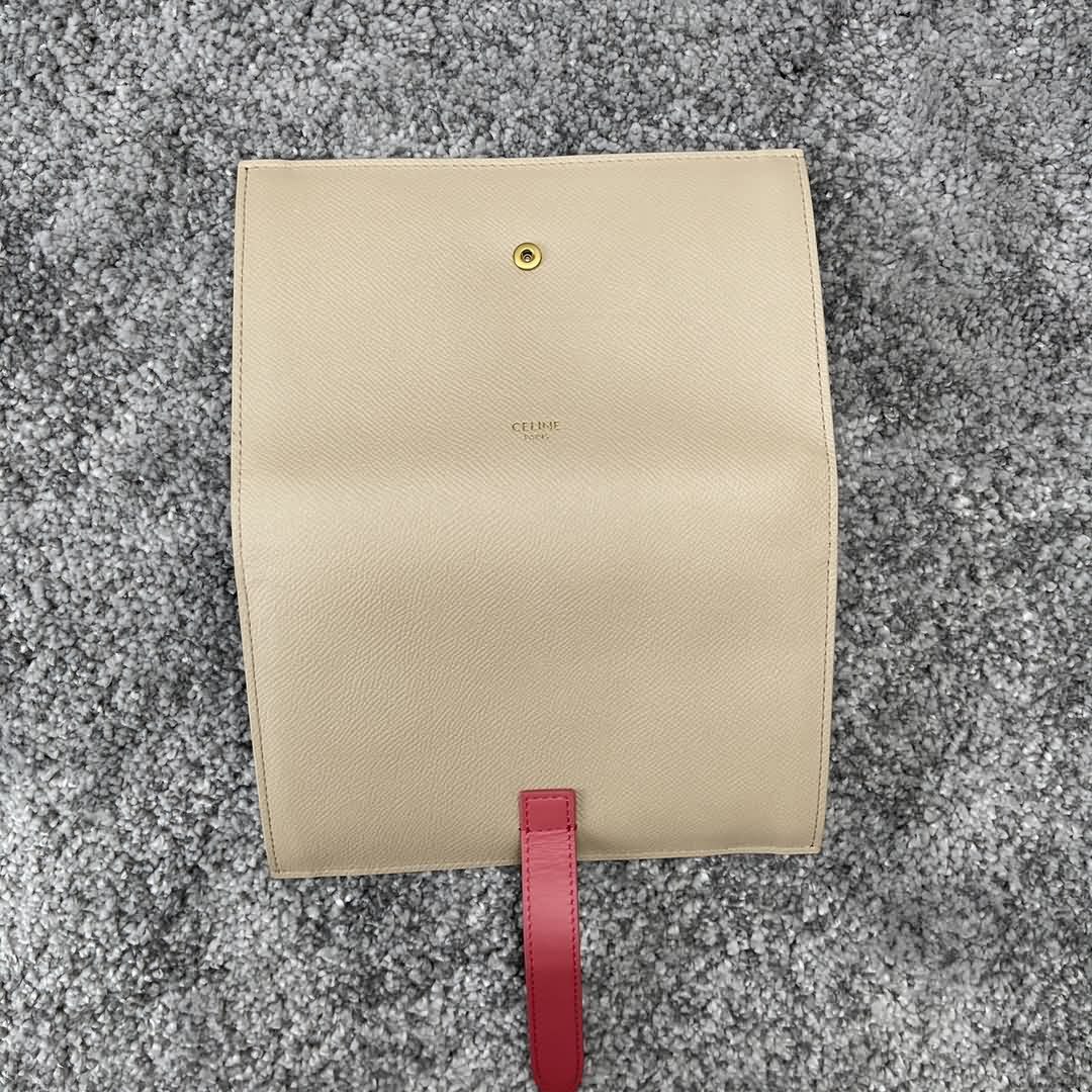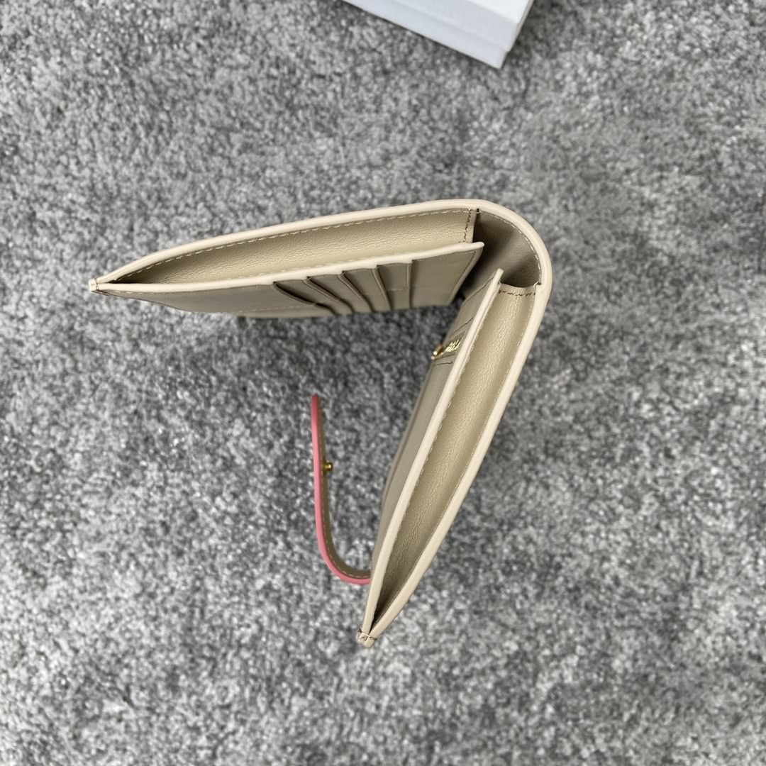 粒面小牛皮錢包,附按扣開合的扣帶及角撐隔層。
