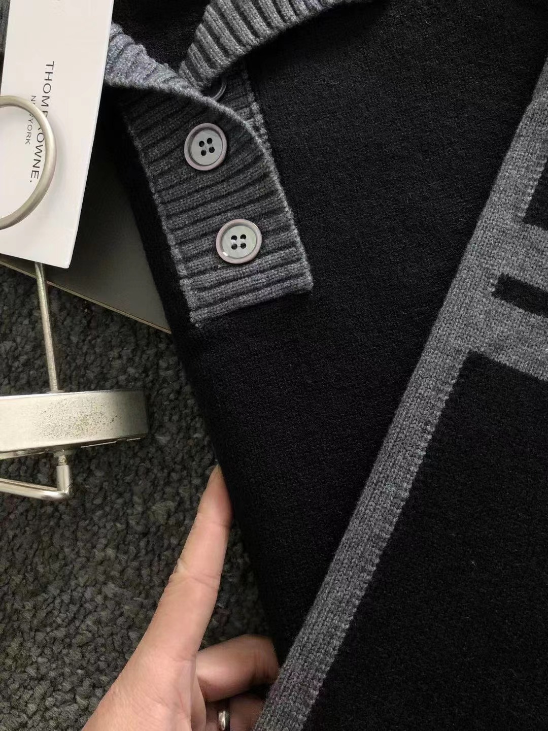 2023秋冬專櫃進口私貨,原廠黑灰拼色翻領厚實羊毛衫,潮流飾品融合專櫃款,時尚不失奢華 品質毋庸置疑 上身效果超贊,奢華官網同款 款式💂🏿專櫃尺碼M-xxxl