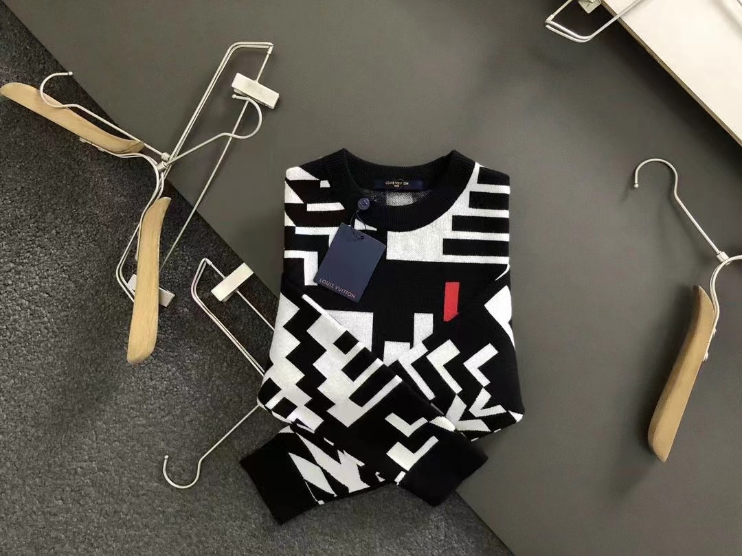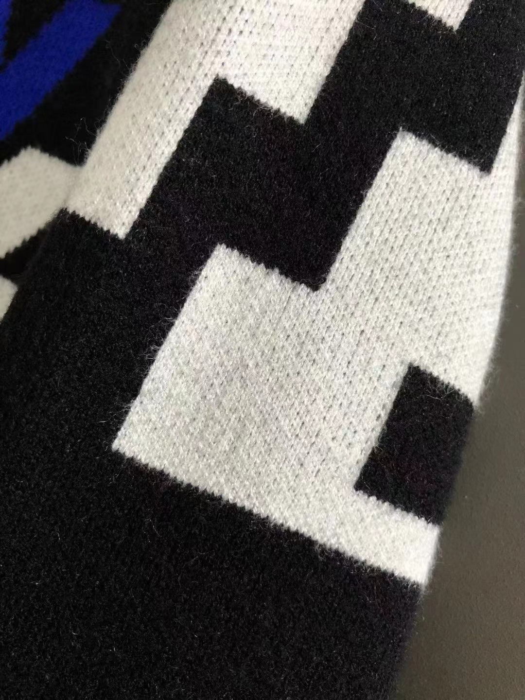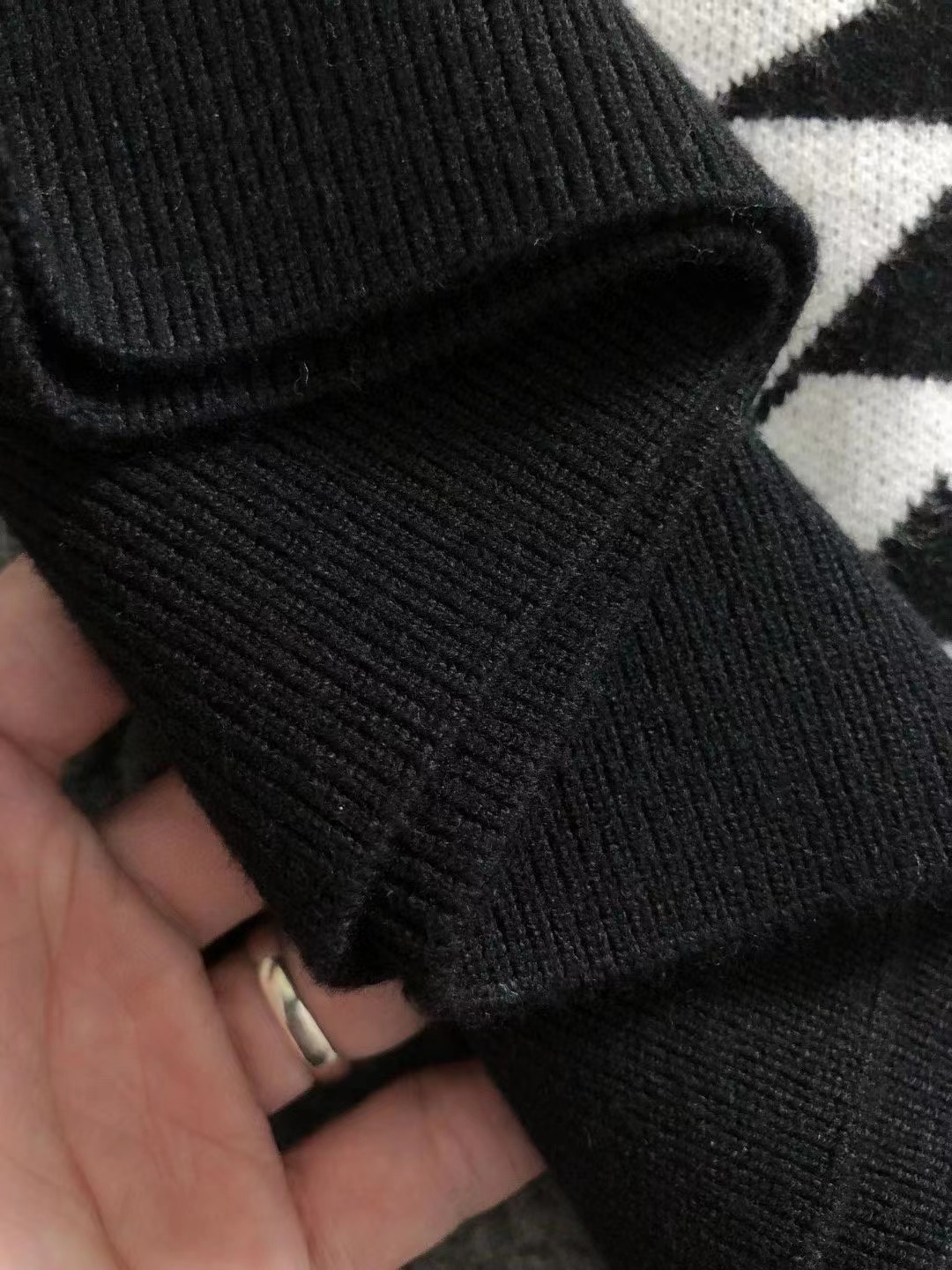 2023秋款專櫃進口私貨,黑白拼色幾何提花圓領羊毛套頭衫*幾何拼色提花針織衫,