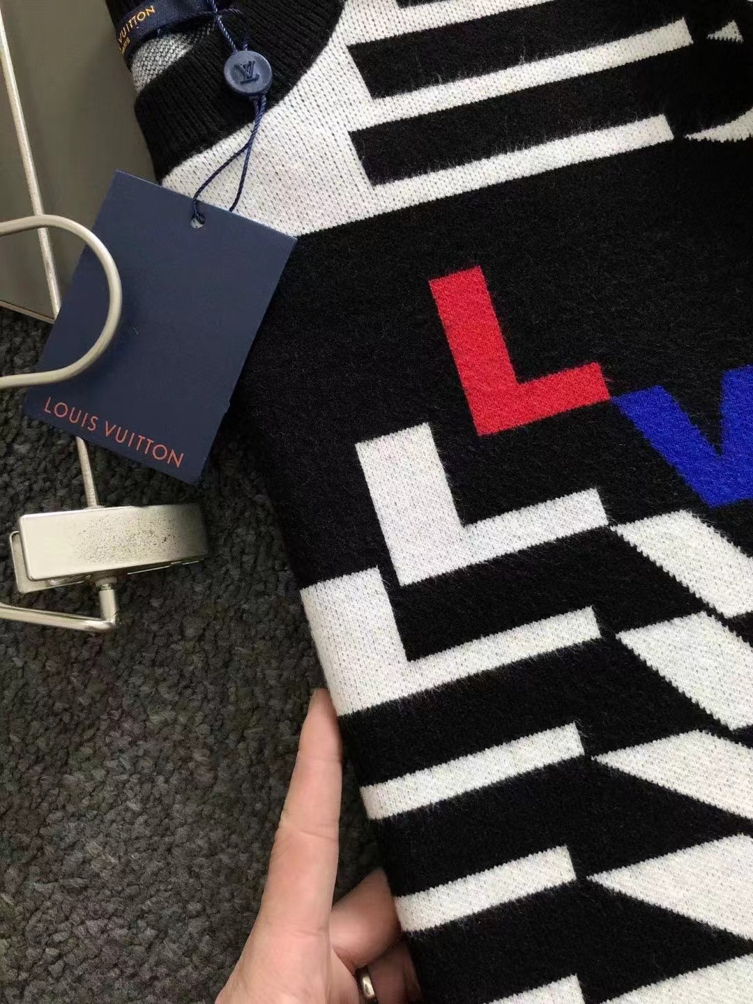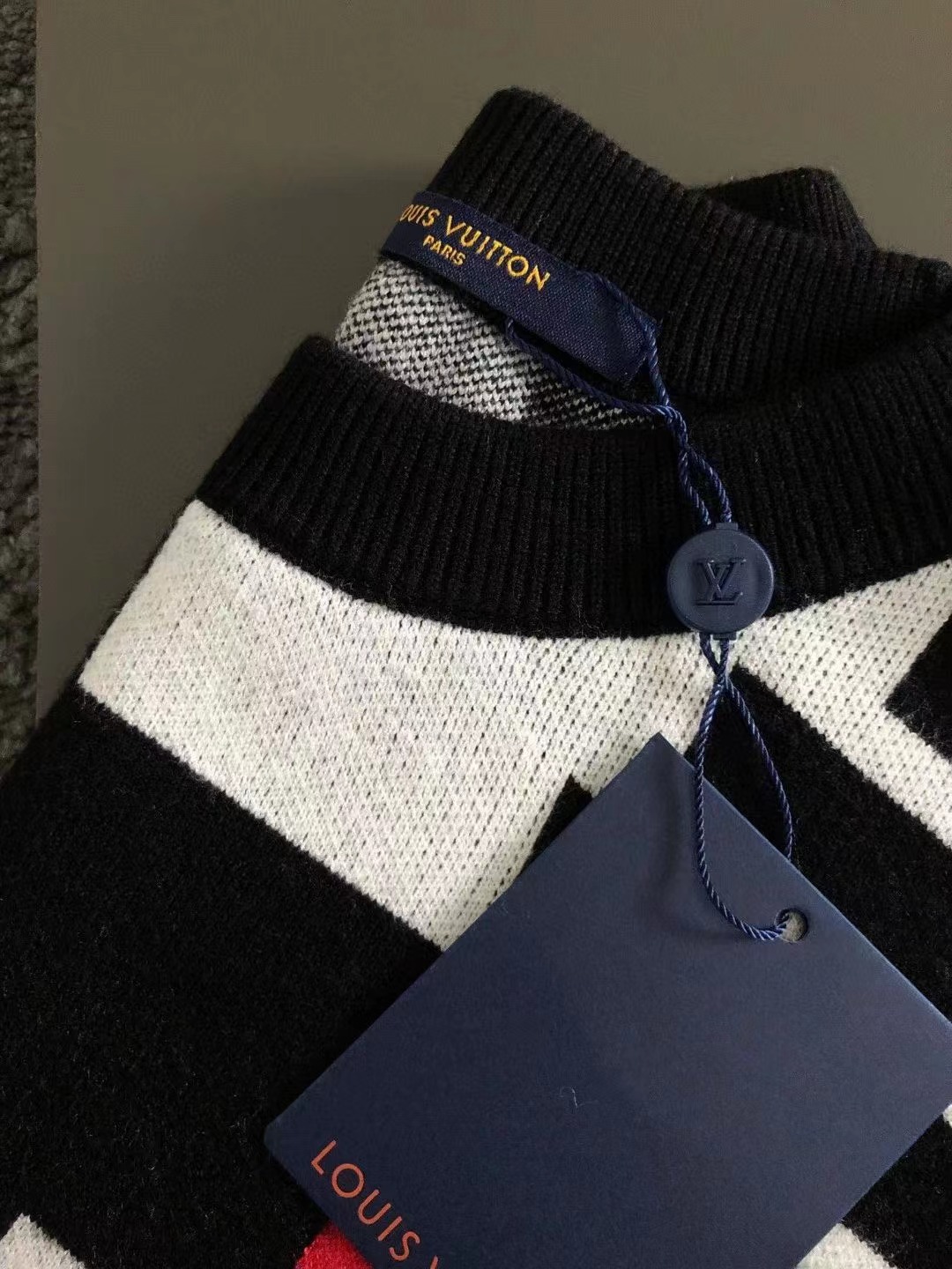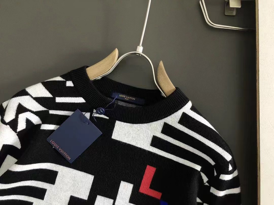 2023秋款專櫃進口私貨,黑白拼色幾何提花圓領羊毛套頭衫*幾何拼色提花針織衫,