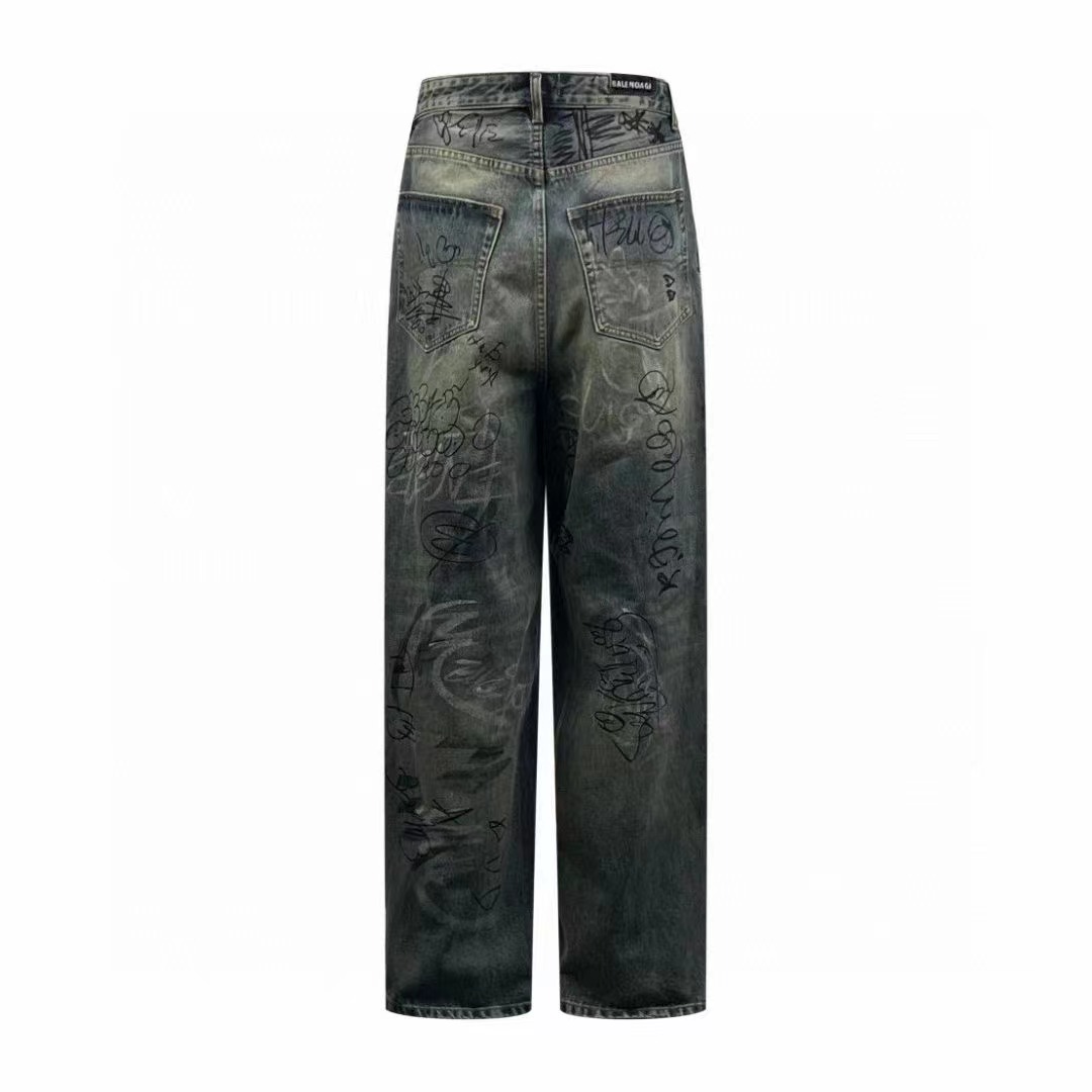 面料:采用全棉7*7 13安斜紋牛仔面料 以及高密滌棉袋布 融合了手繪塗鴉和牛仔褲的藝術品設計 每一個細節都散發著潮流 天馬行空的想象力被展現得淋漓盡致