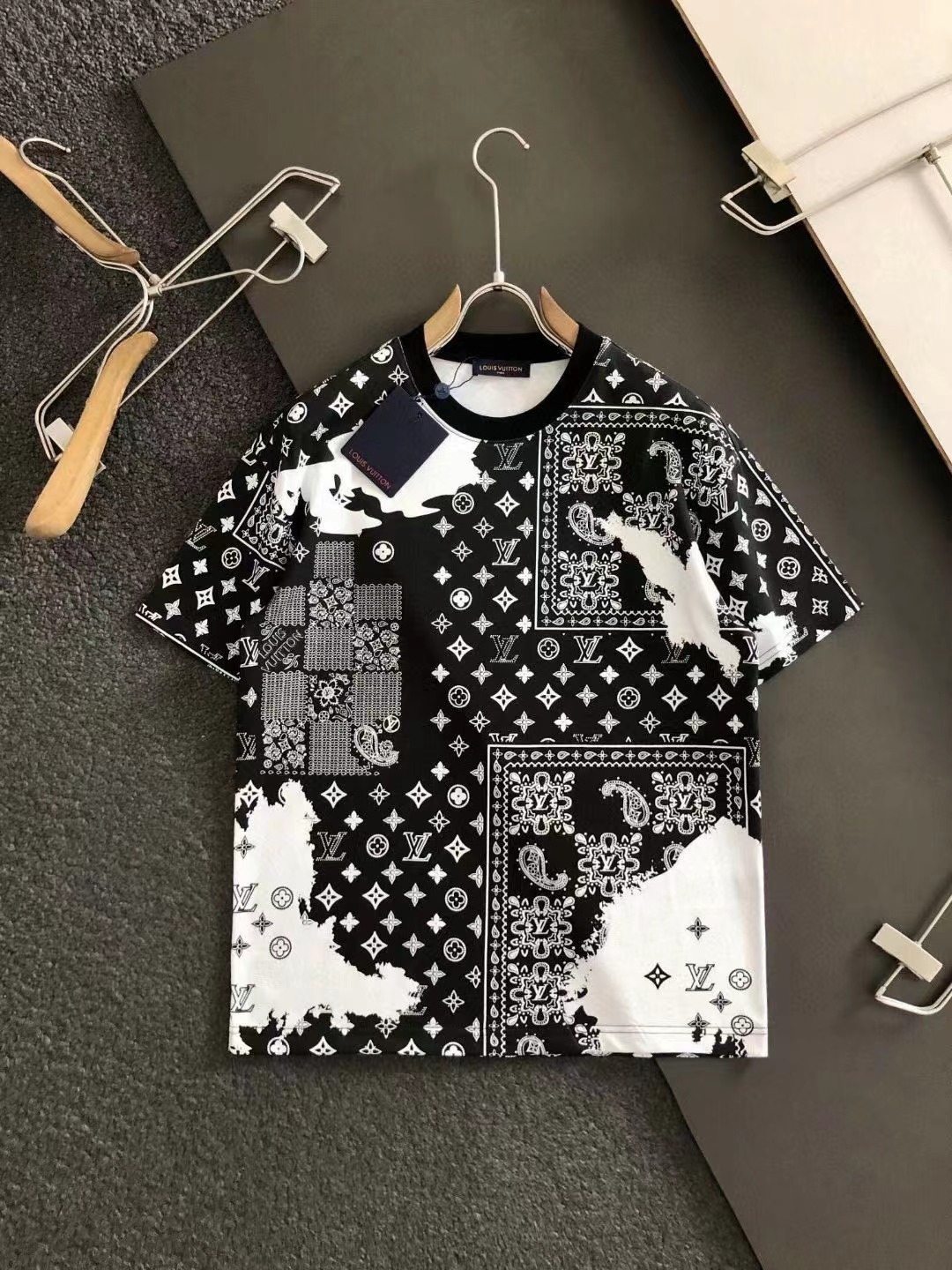 2023秋款原廠進口私貨,專櫃黑白灰多色融合宮廷風老花印花款格子圓領短袖