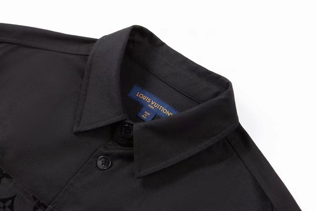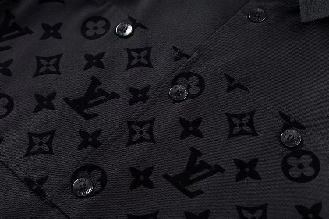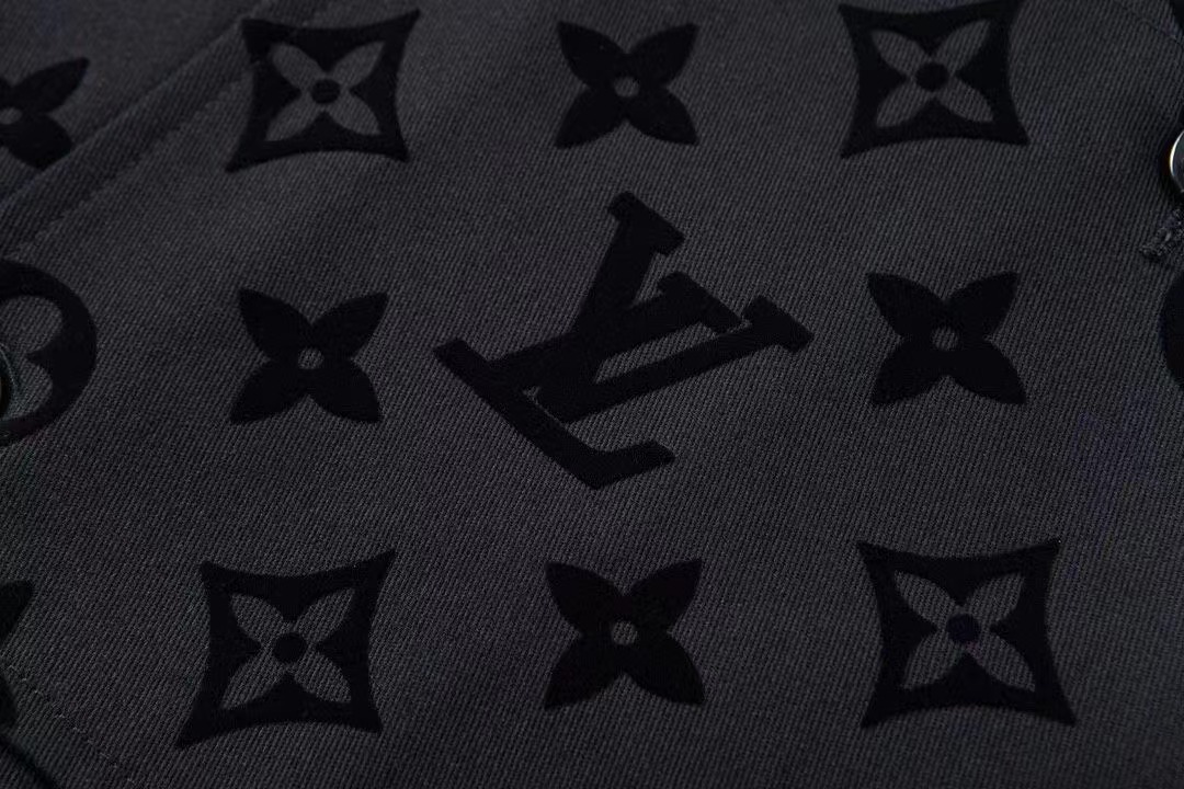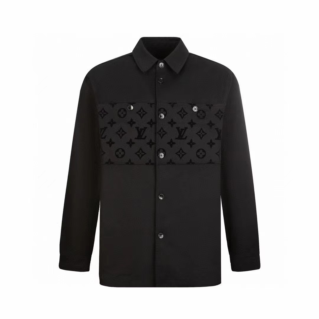 本款夾克式襯衫取材棉質斜紋布,借胸前 Monogram 植絨圖案爲工裝剪裁注入細膩肌理
