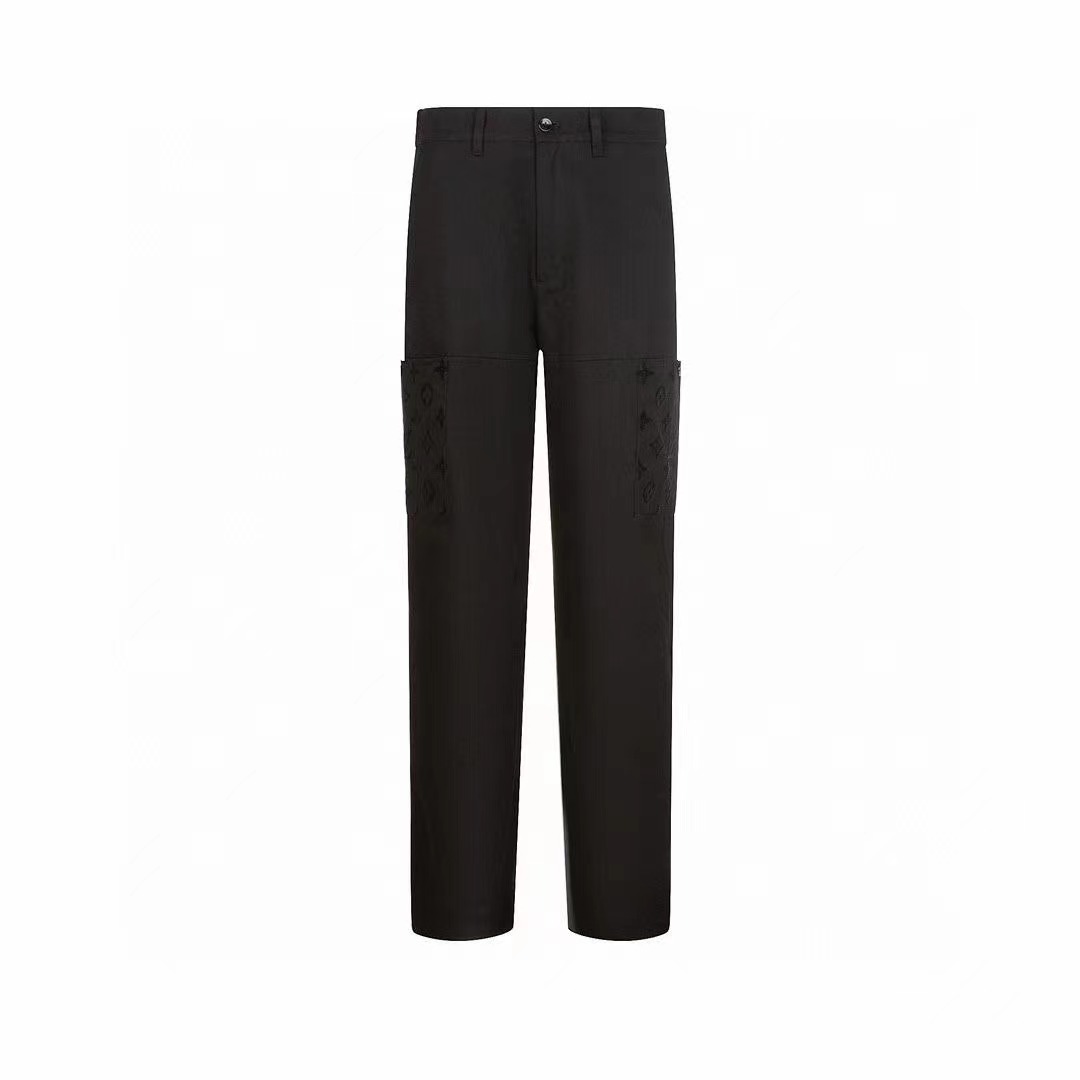 本款工裝褲取材棉質斜紋布,借胸前 Monogram 植絨圖案爲工裝剪裁注入細膩肌理