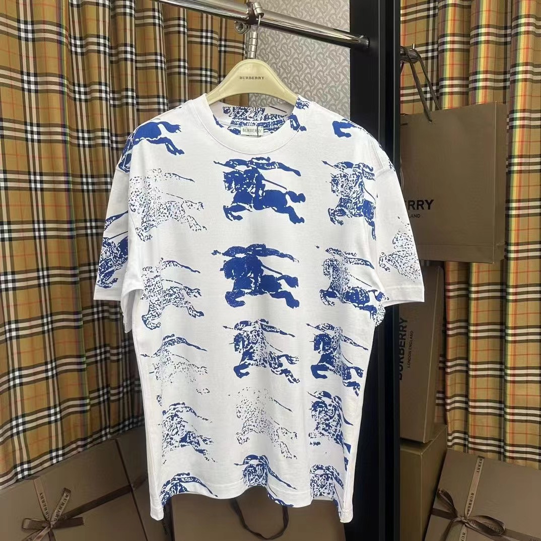 早春新款馬術騎士徽標棉質寬松T恤衫