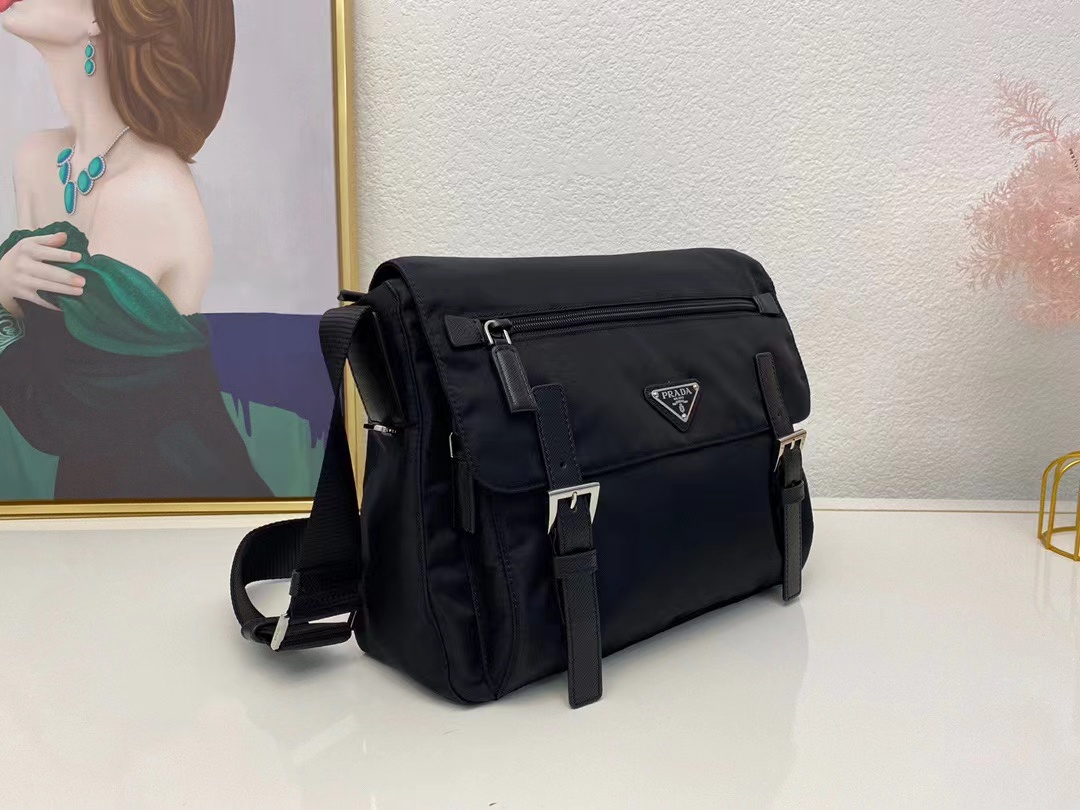 🎁BT6671-1【黑色】尼龍翻蓋單肩斜挎包,男女通用,正面翻蓋一個拉鏈貼袋,