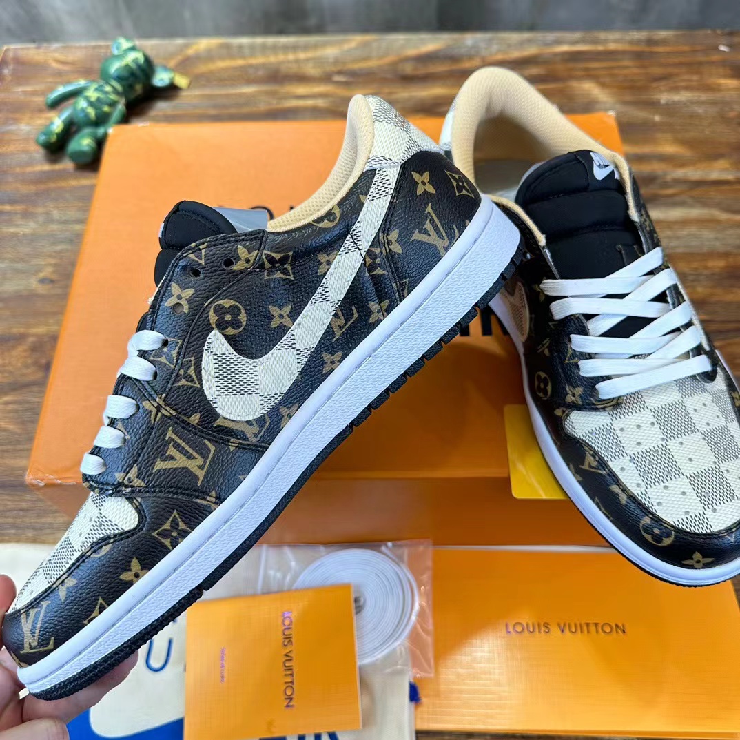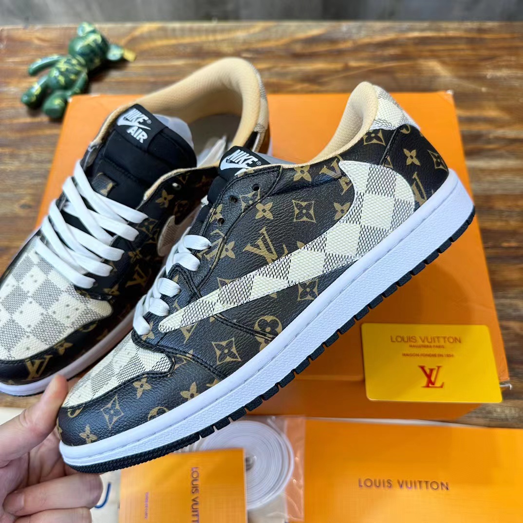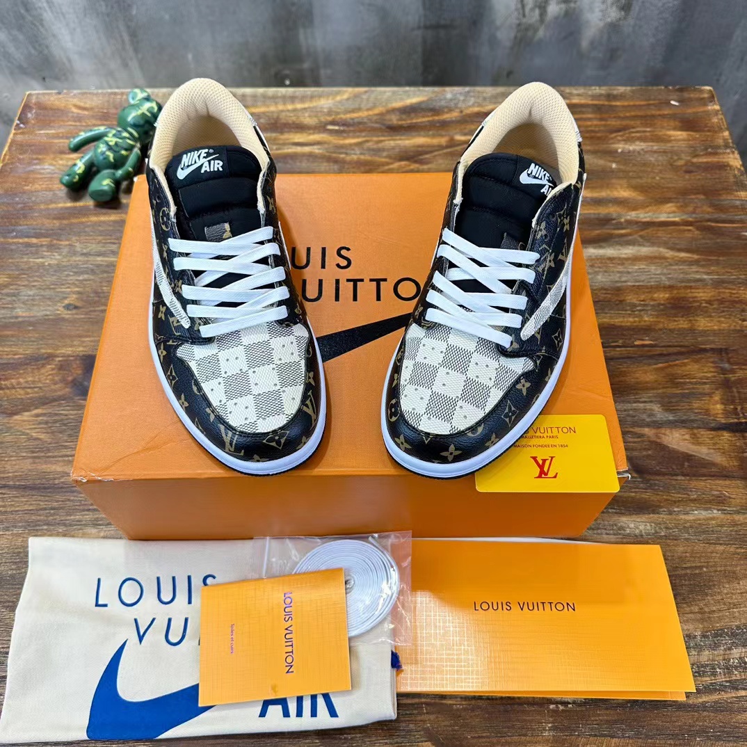 LV & AJ1 聯名款 最新倒勾 板鞋 牛皮面