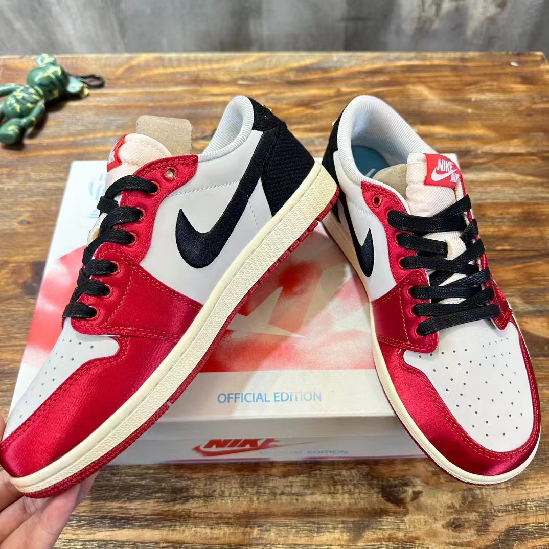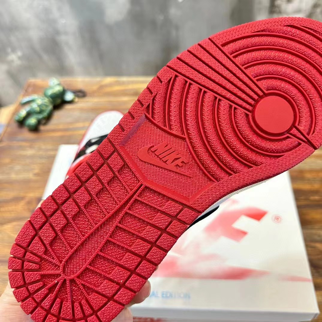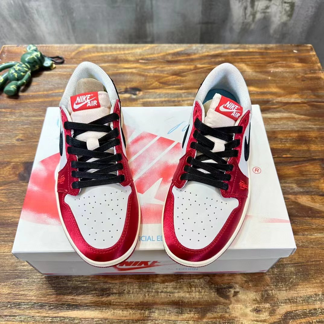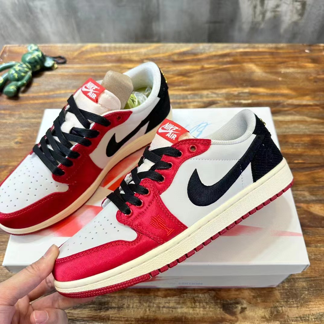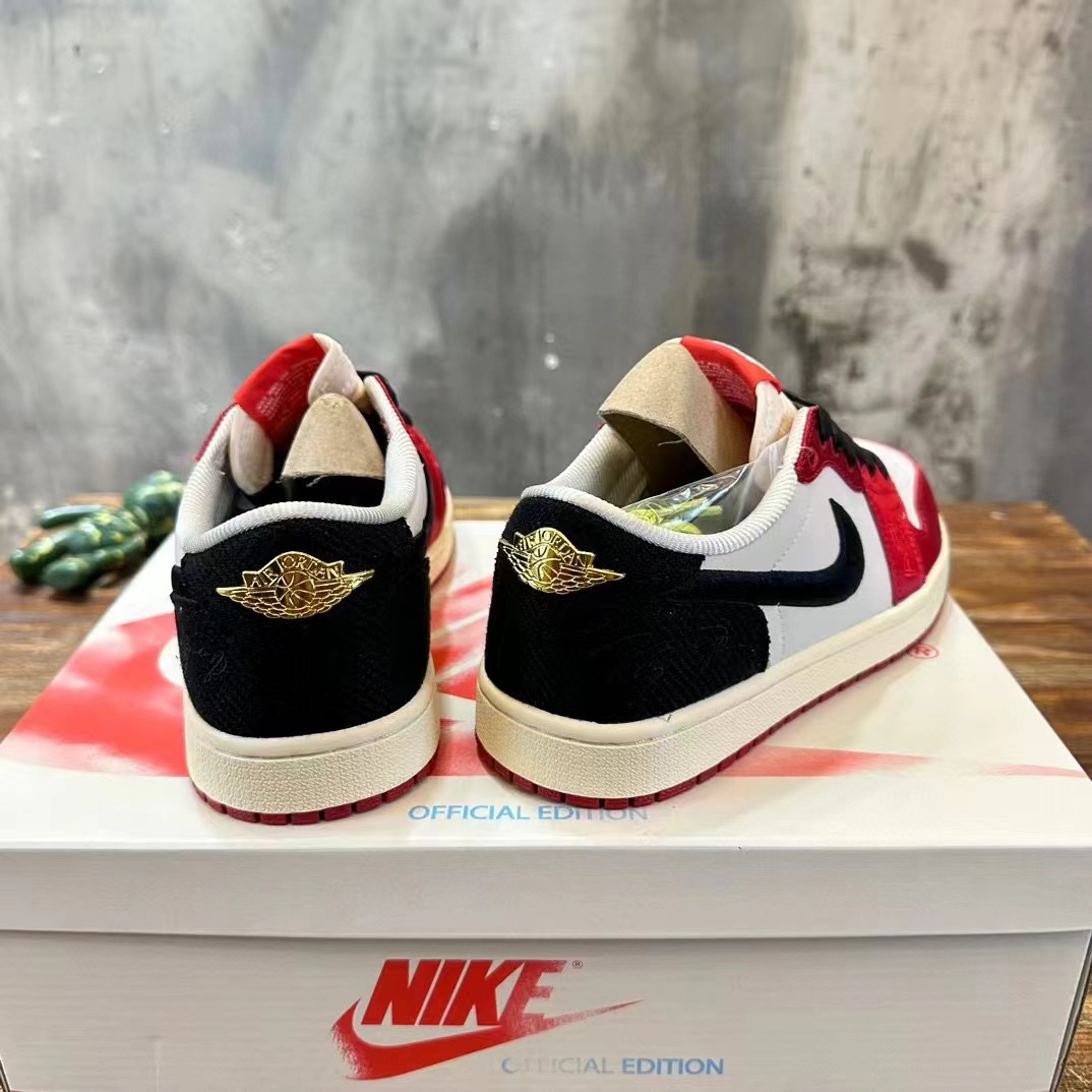 Trophy Room x Air Jordan 1 Low OG"Away 喬丹之子低幫 白黑紅 織物人造革 防滑