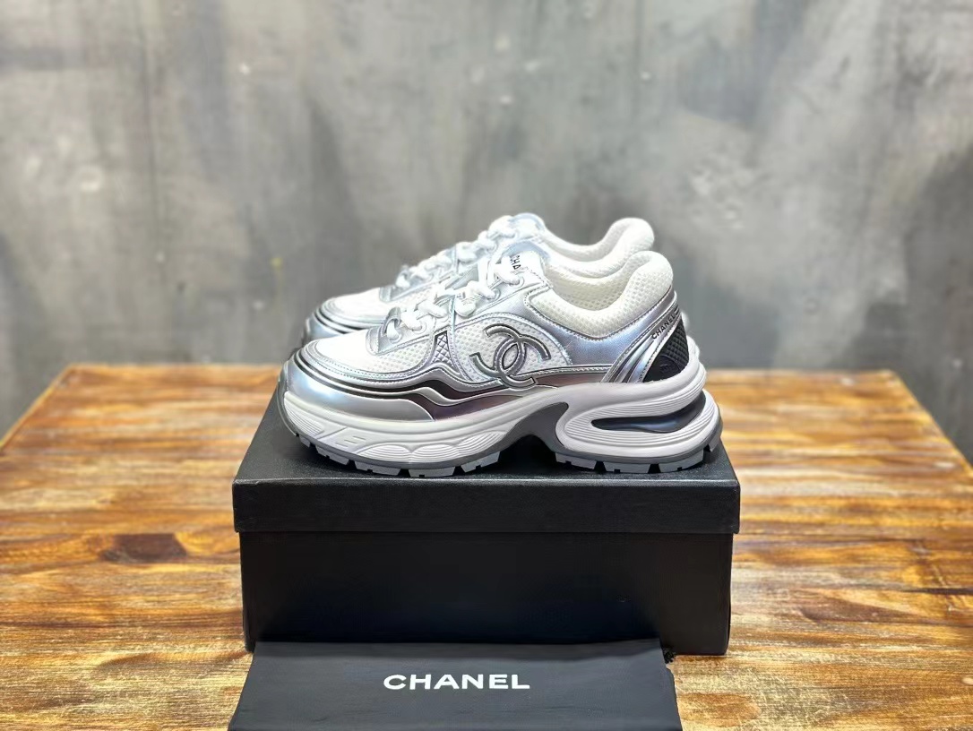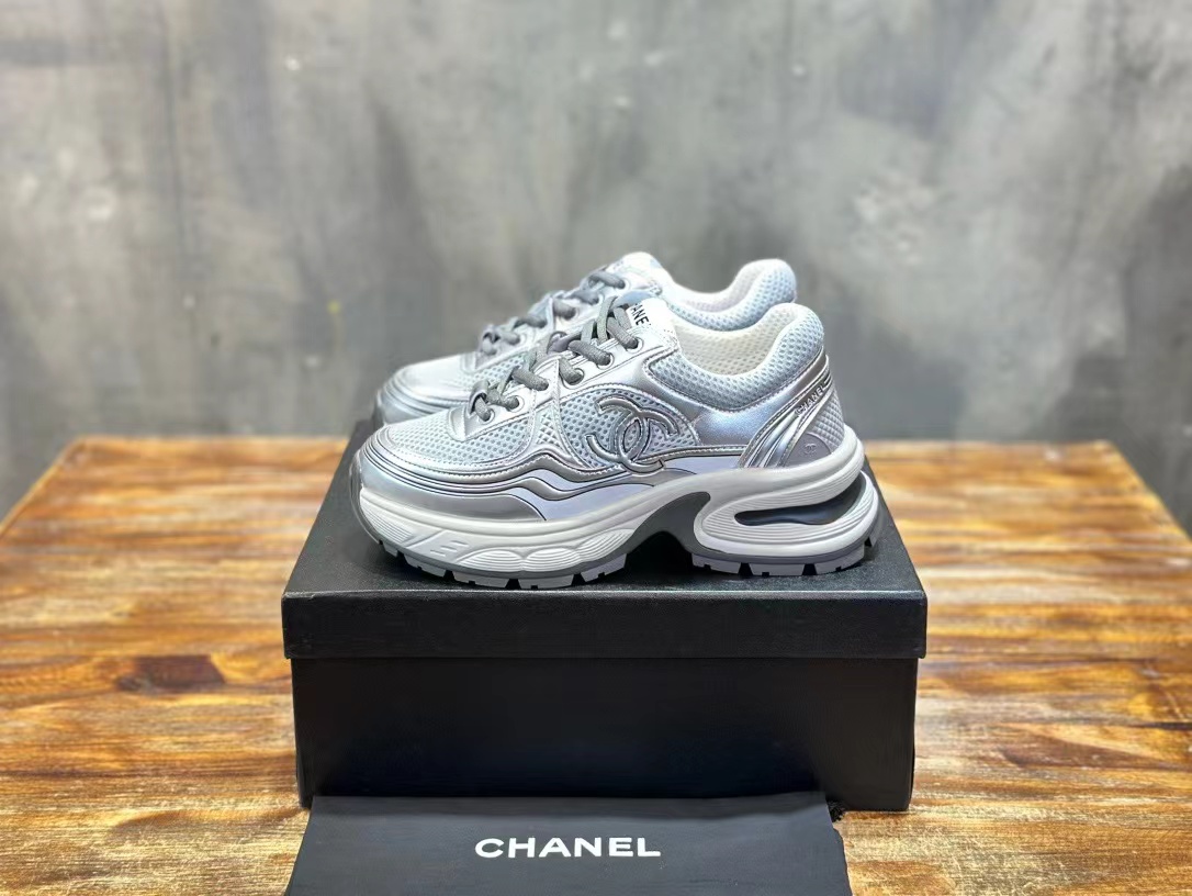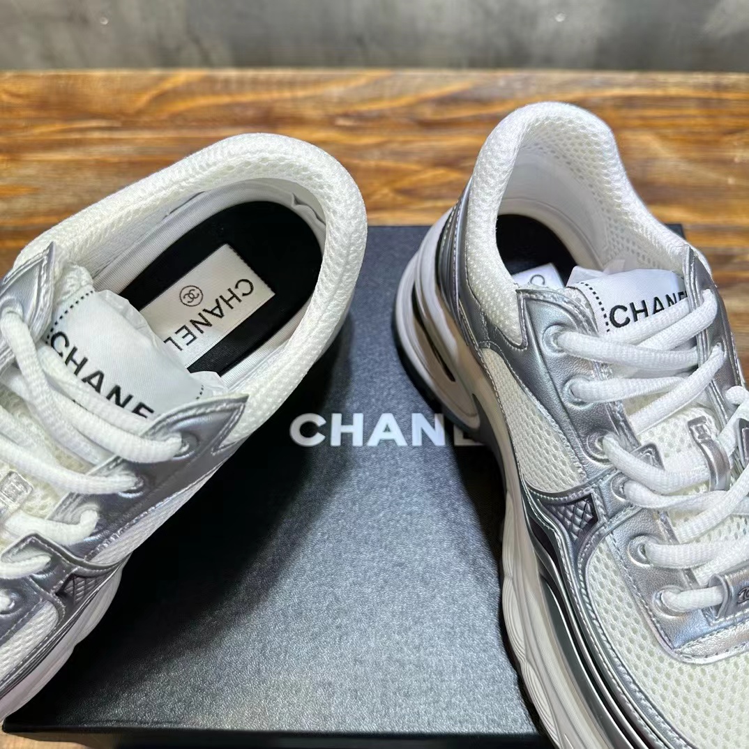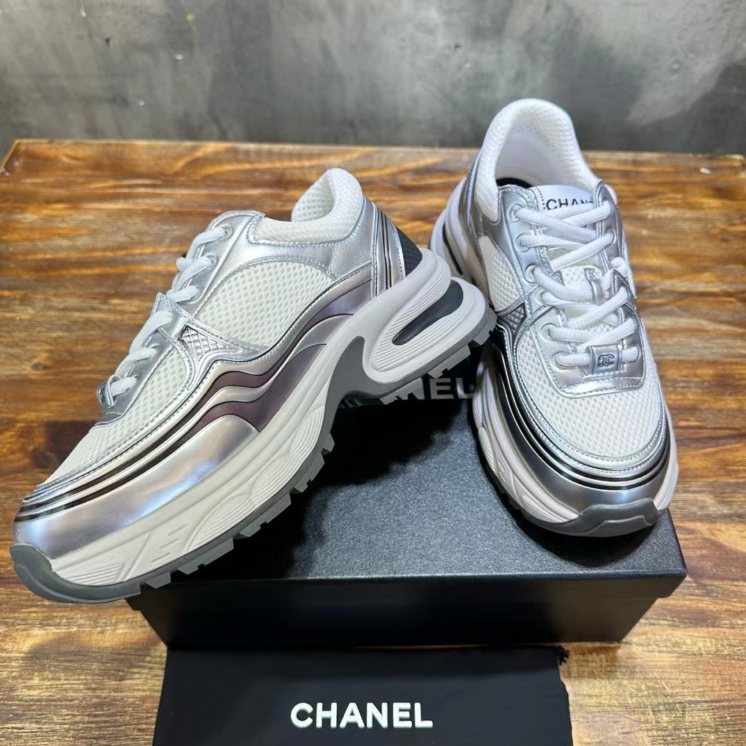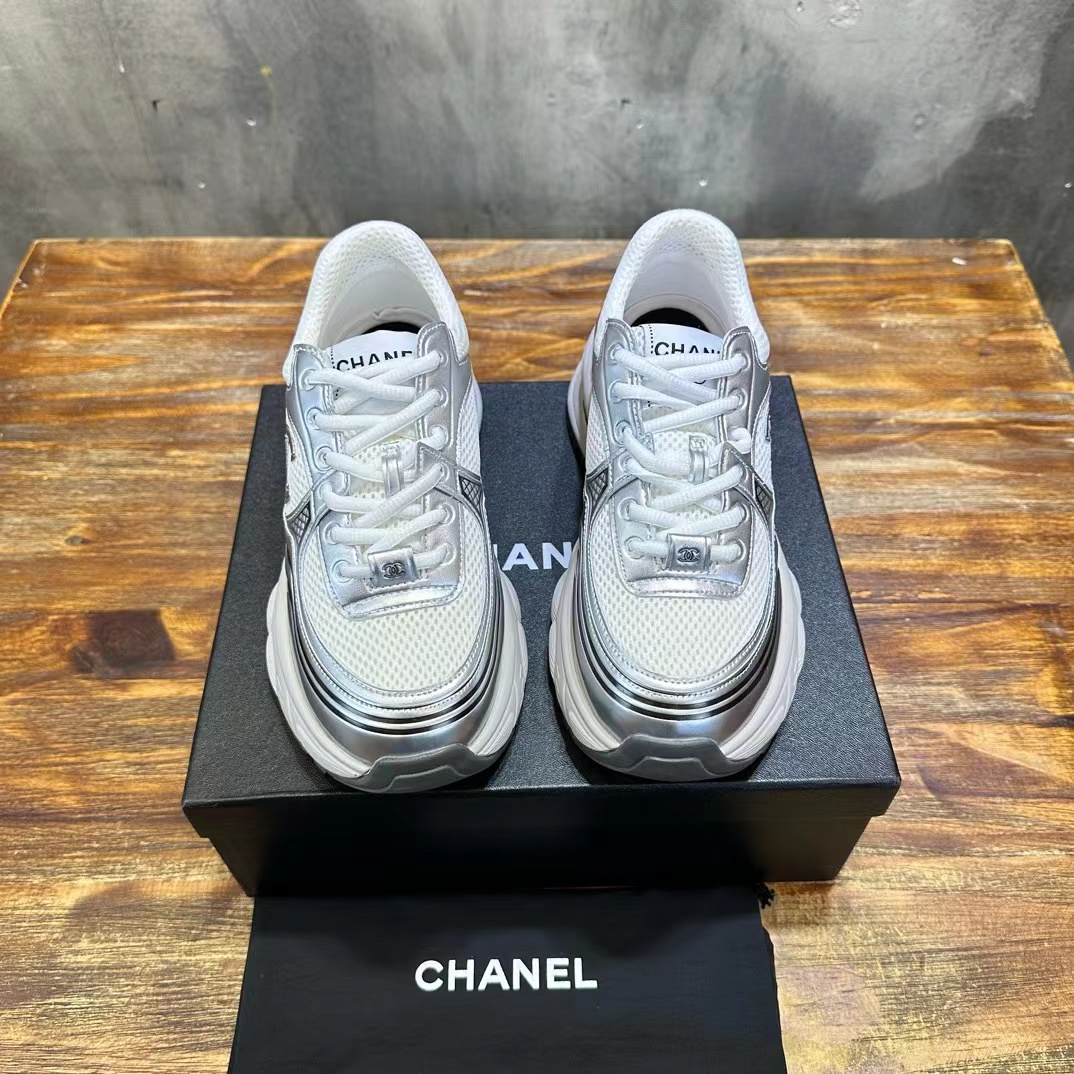 香奈兒 小香2024早春度假系列 最新款休閑運動鞋 銀白,